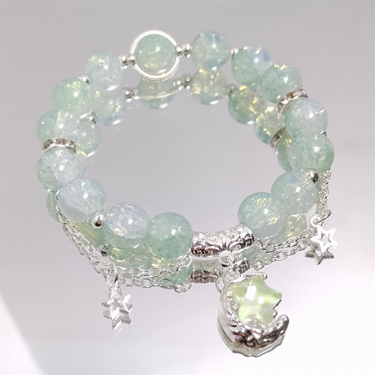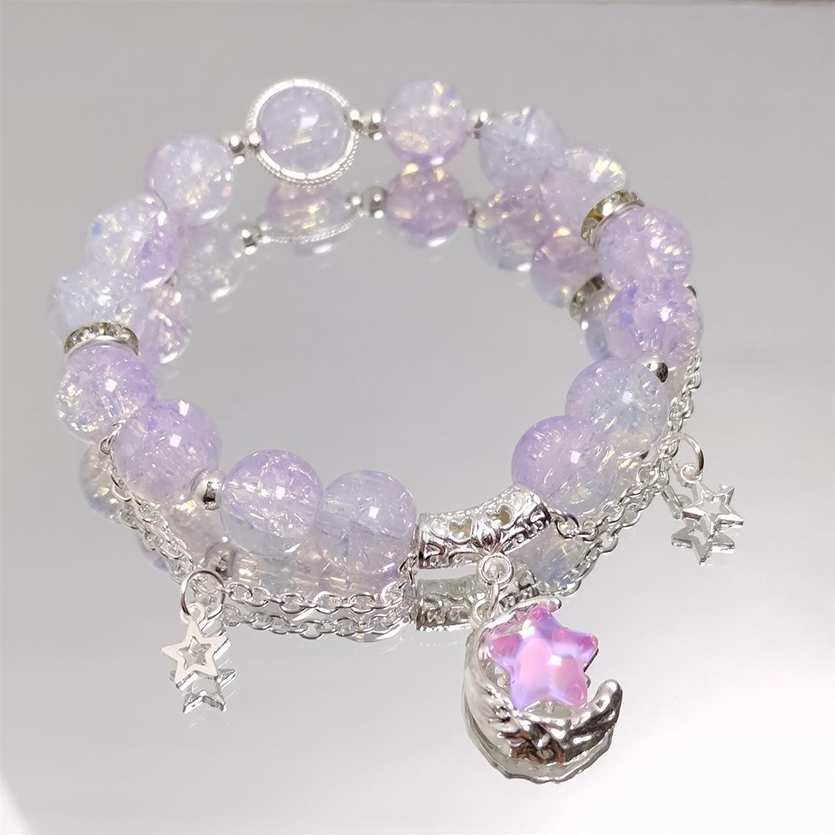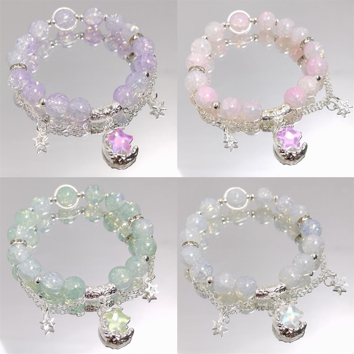 Pulsera de luna y estrella dulce para mujer, pulsera con cuentas de cristal de hadas, ideal para estudiantes, parejas y mejores amigas.