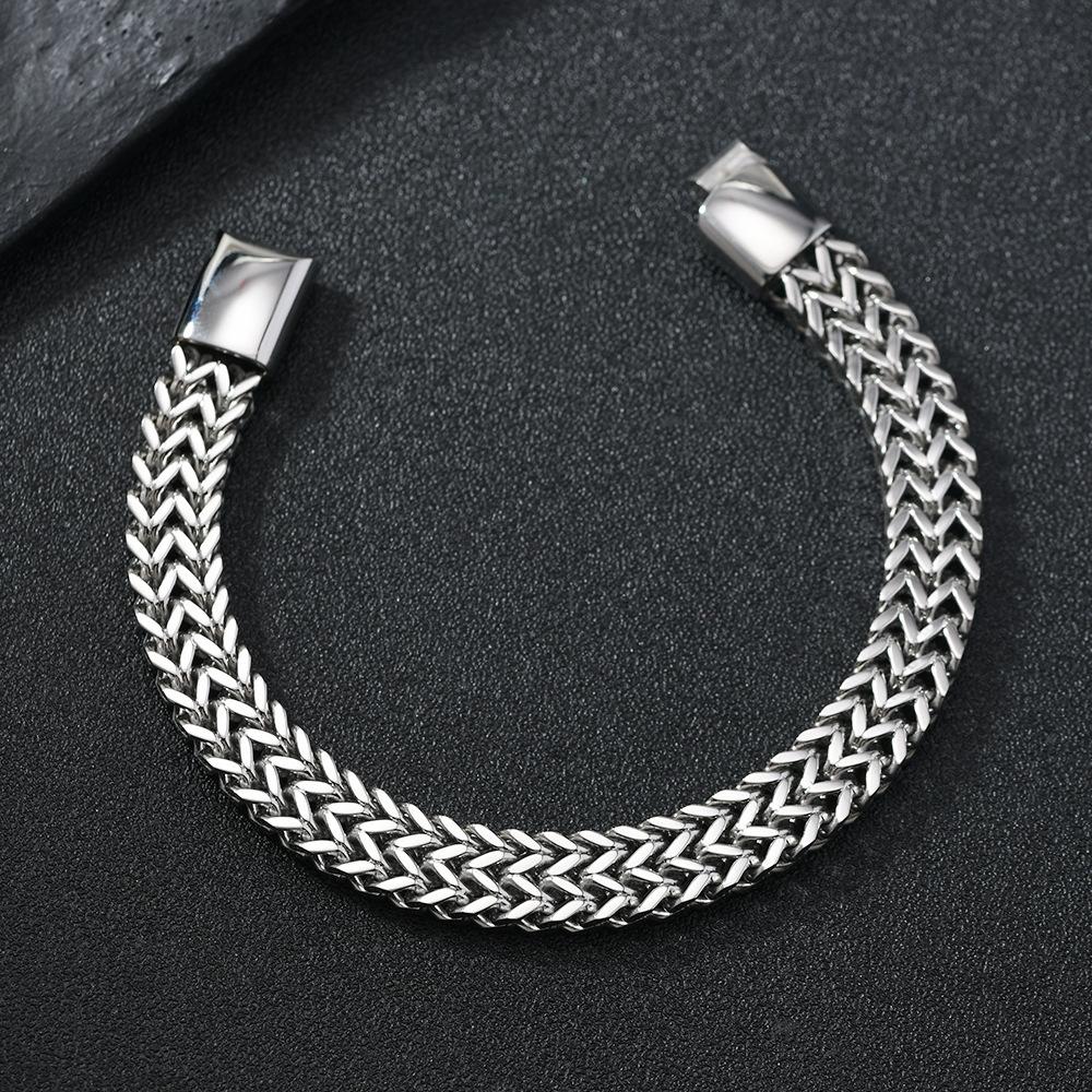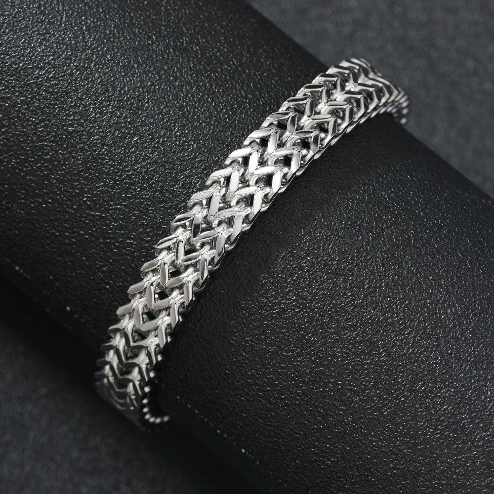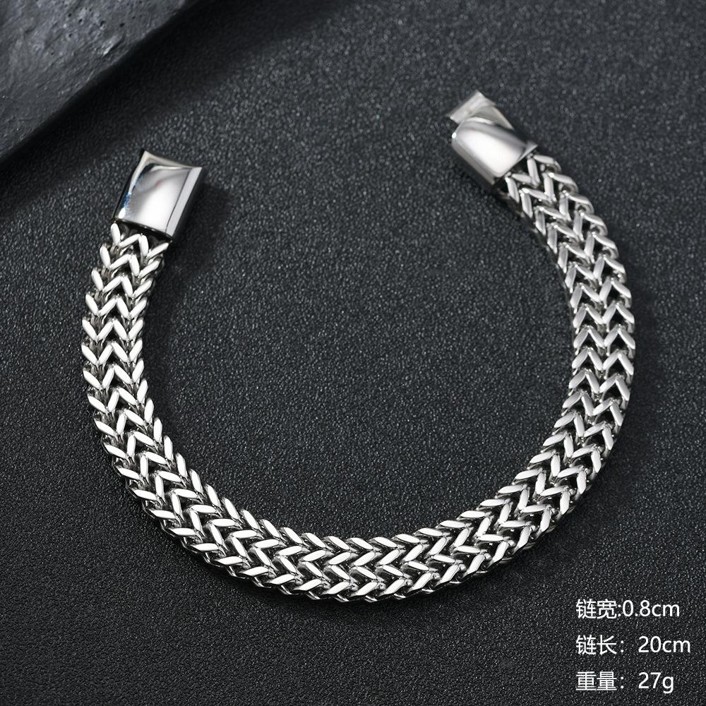 Pulseira de aço inoxidável transfronteiriça europeia e americana, hip-hop, punk, pulseira quadrada de duas fileiras, pulseira masculina personalizada de aço de titânio da moda