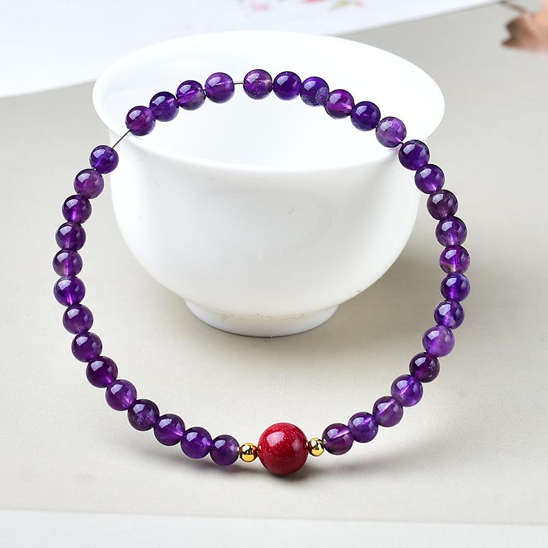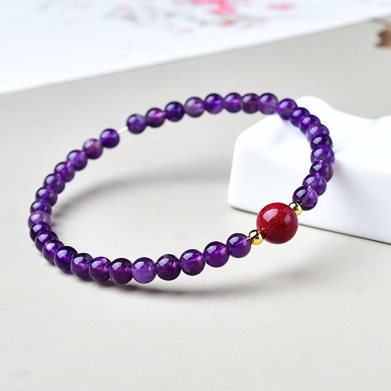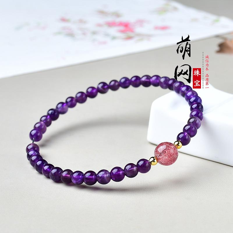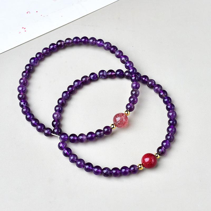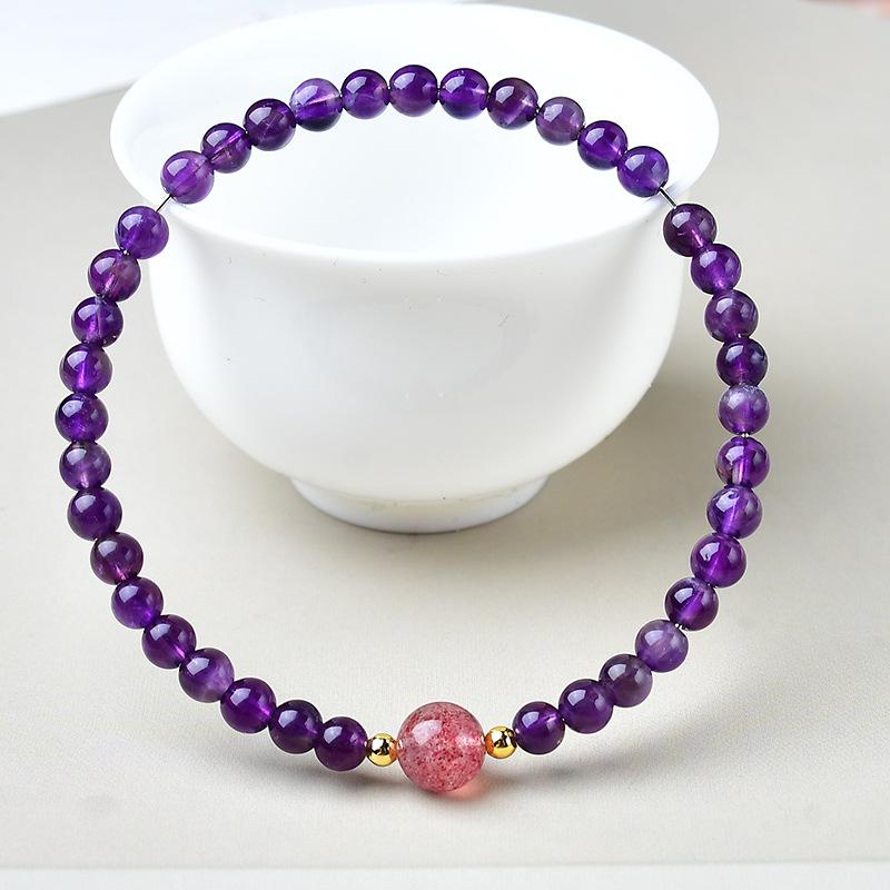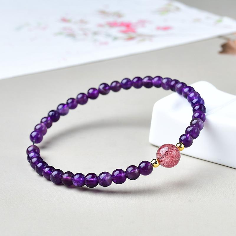 Nueva Pulsera de Amatista Natural, Pulsera de Flujo de Energía Púrpura, Pequeñas Cuentas de Cristal, Cristal de Fresa de un Círculo, Cuentas de Oración para Mujer