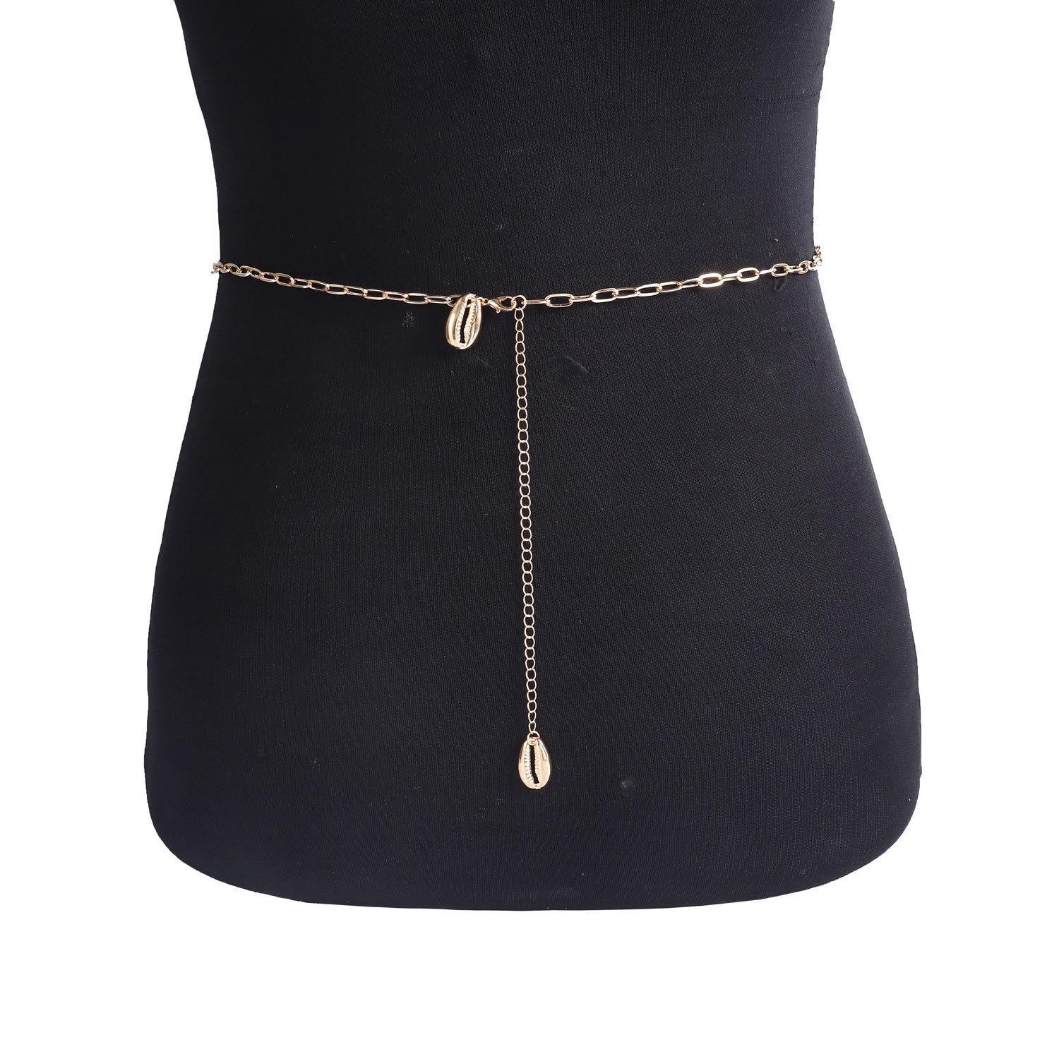 Cadena con borlas y colgante de concha personalizada, joyería transfronteriza europea y americana, cadena para la cintura, sencilla y de una sola capa, para mujer.