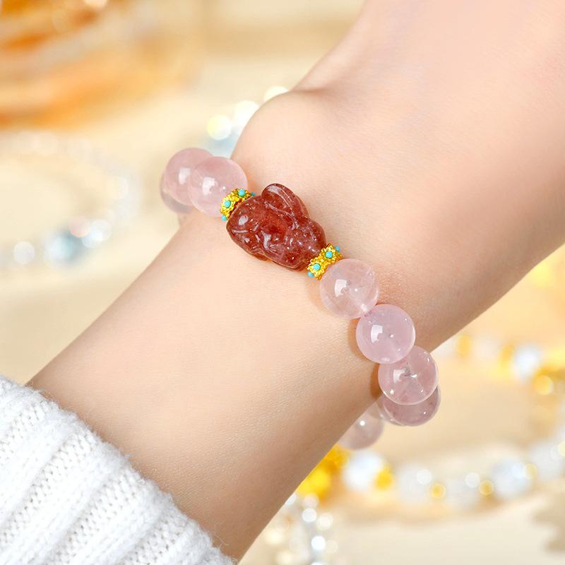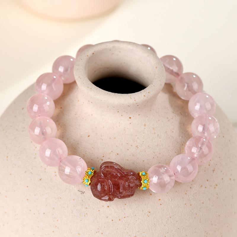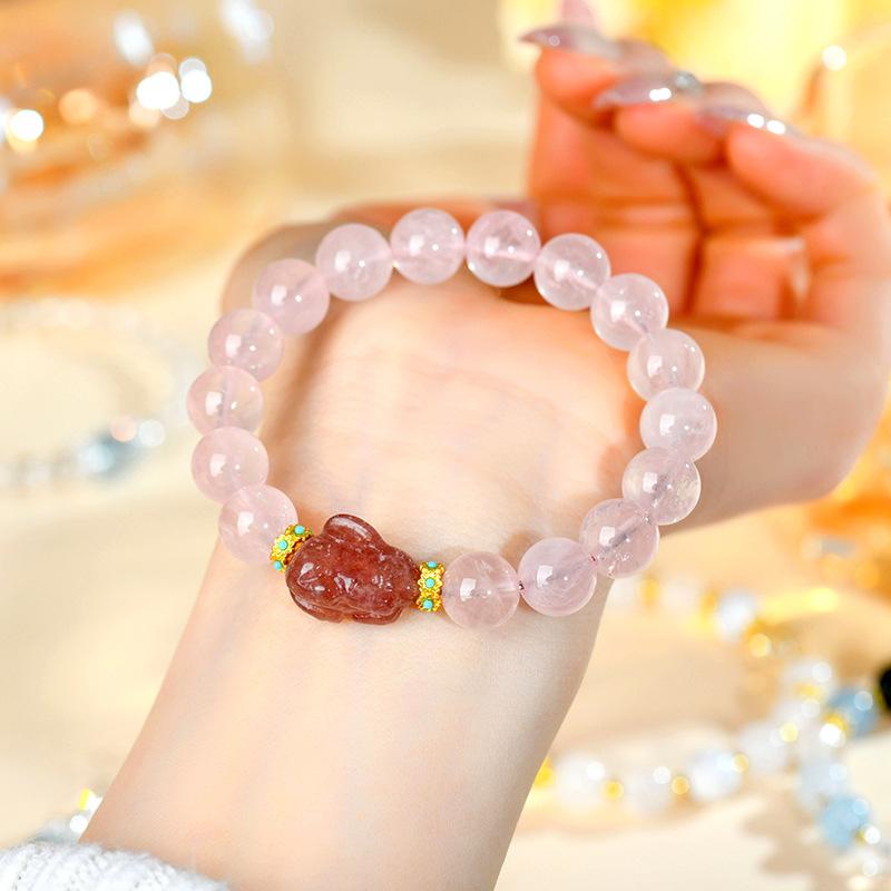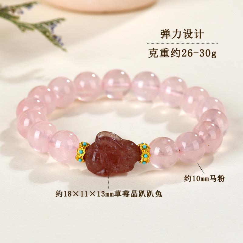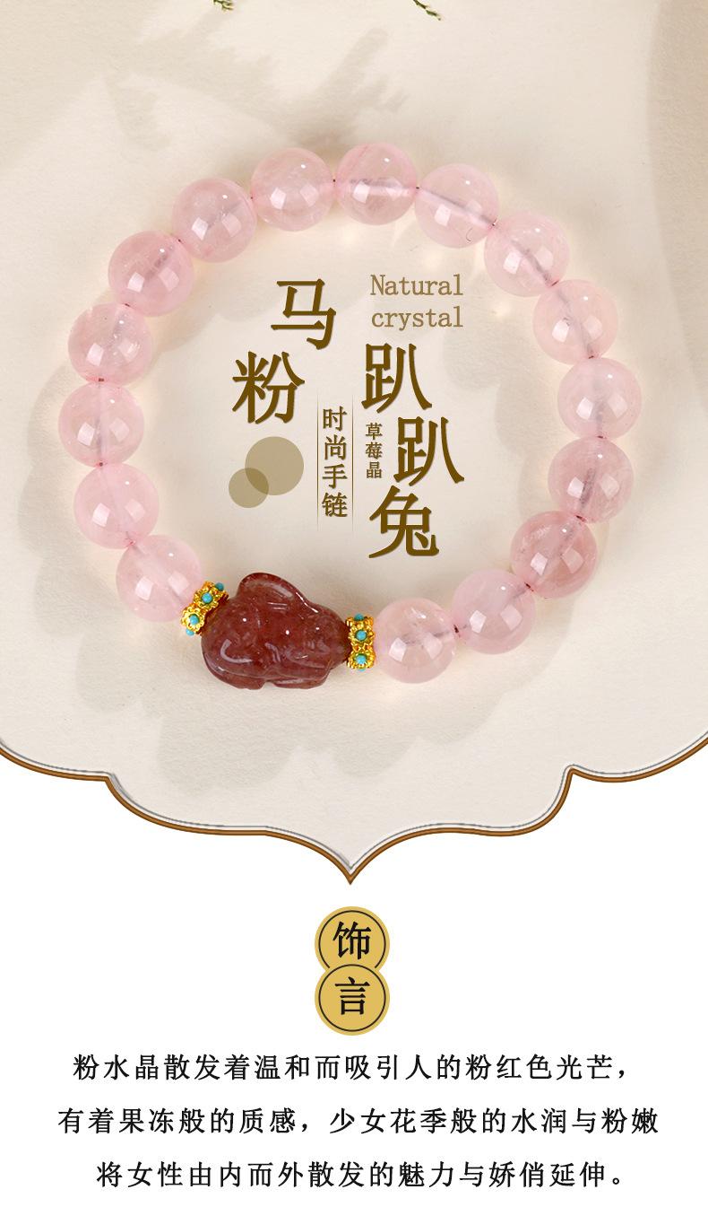 [Nombre del producto]: Pulsera de conejo papá de cristal de fresa rosa caballo