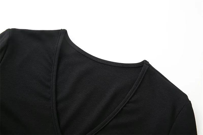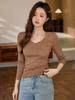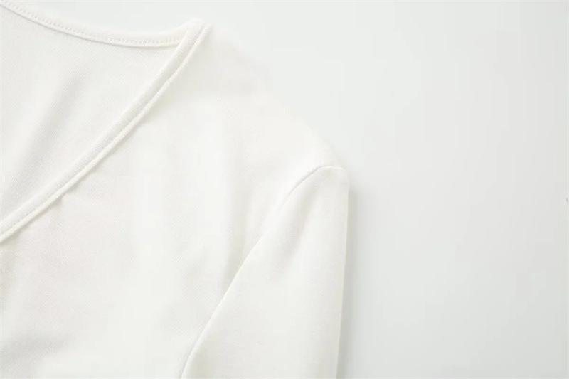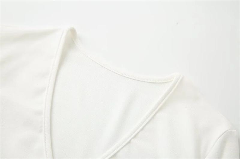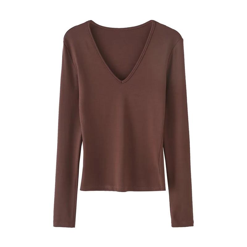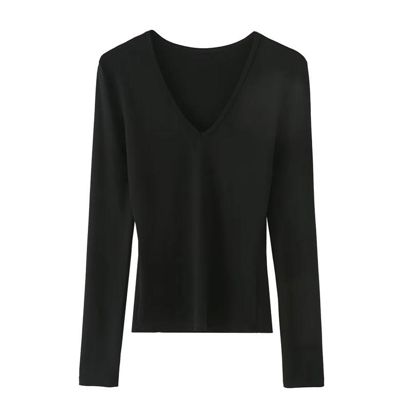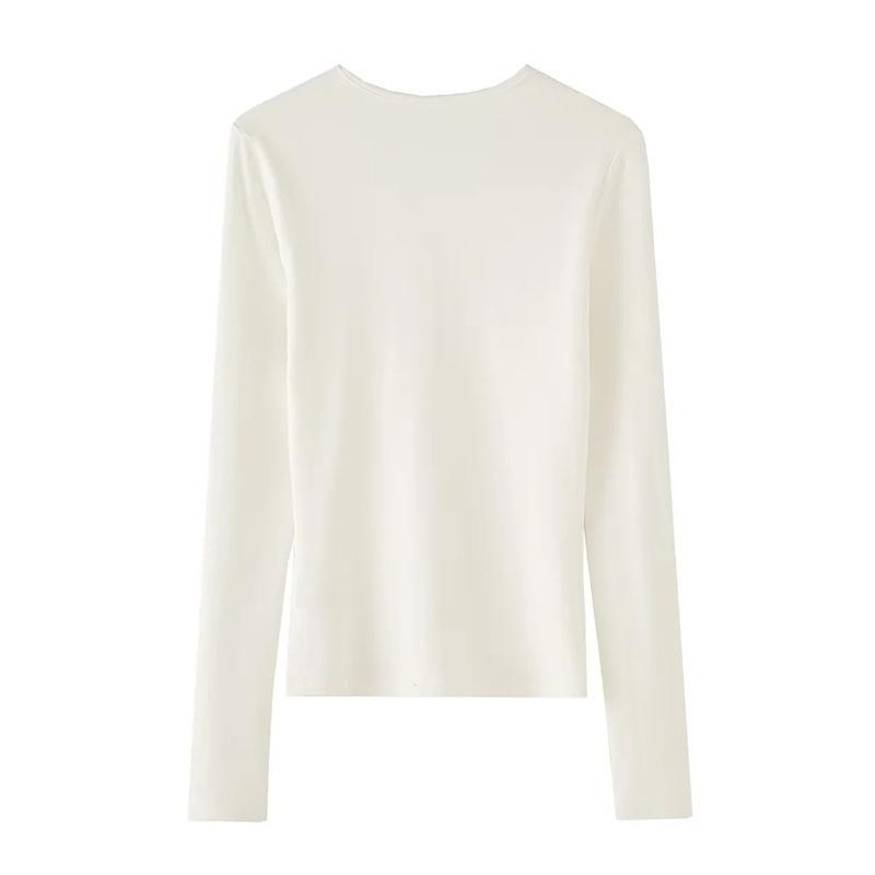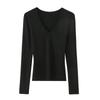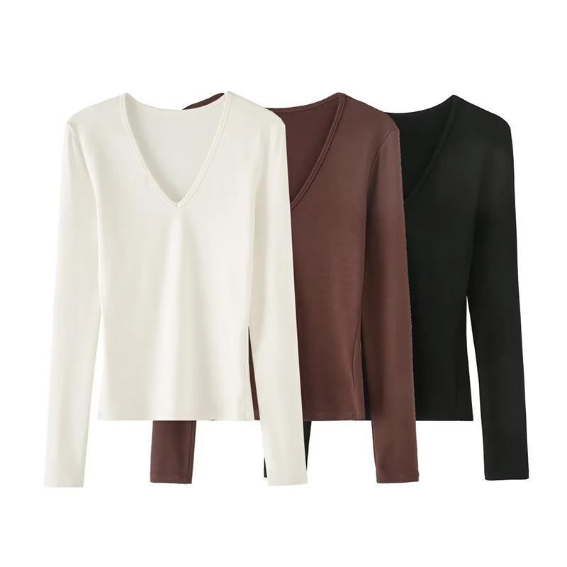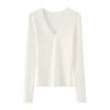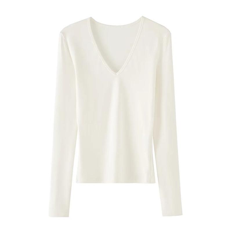 Camisa blanca con cuello en V para mujer, otoño e invierno 2025, nuevo diseño de camiseta de manga larga, top ajustado de cuello bajo