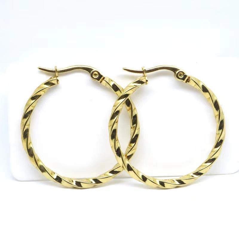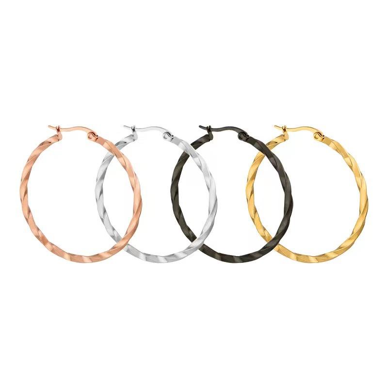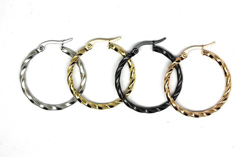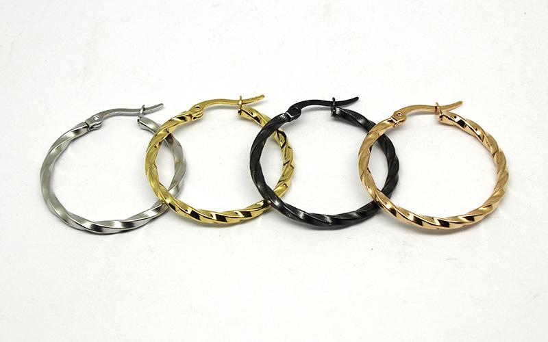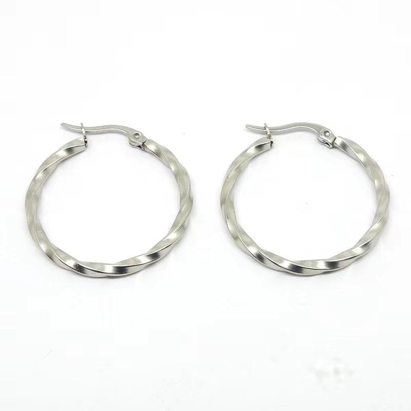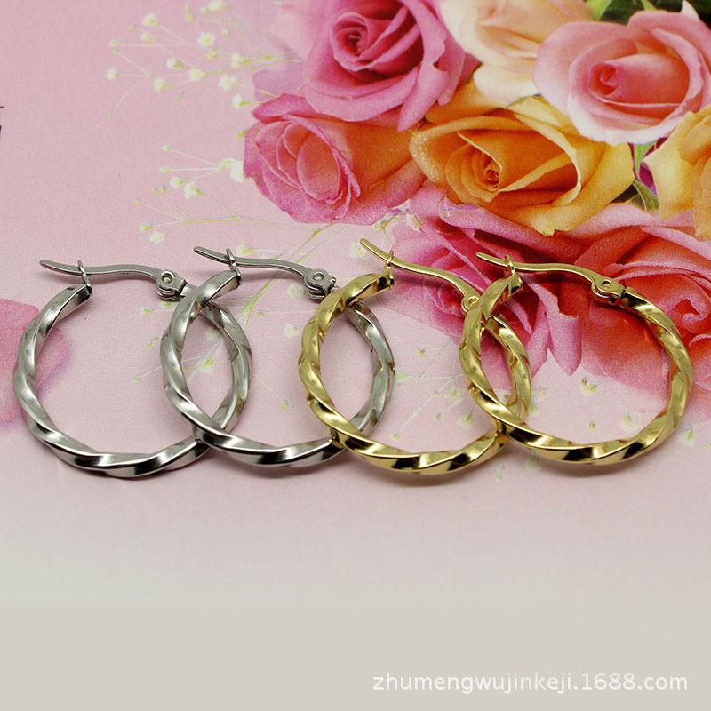 Pendientes grandes de torsión de acero de titanio de moda europea y americana transfronteriza, hebilla para la oreja de acero inoxidable, exquisitos, grandes, para la oreja, anillo para la oreja, joyería, ventas directas de fabricantes