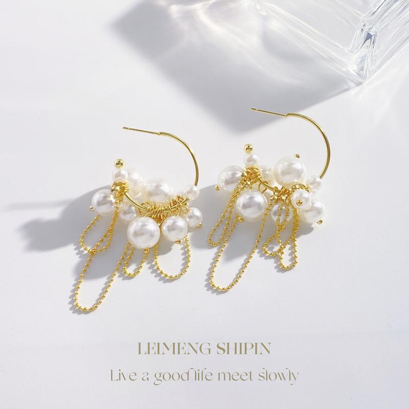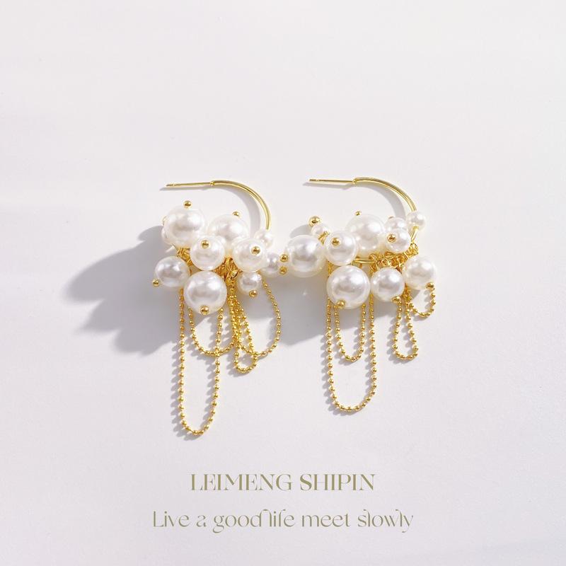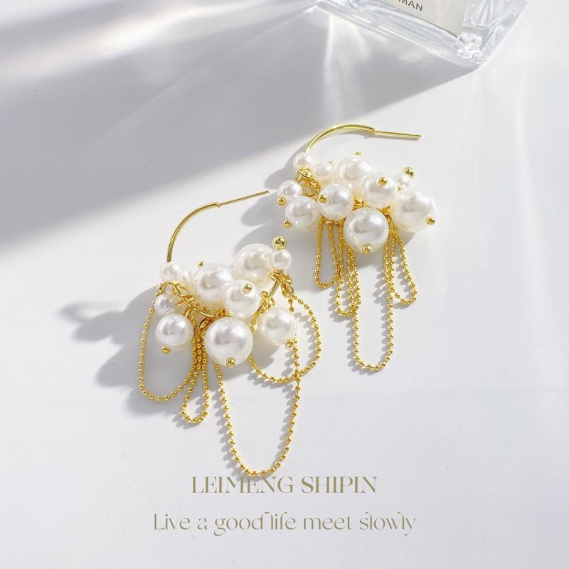Gold pearl tassel earrings