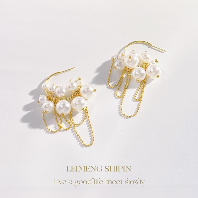 Pendientes de perla en forma de C estilo retro francés de Corea del Sur, elegantes y exagerados, con diseño de nicho de moda para mujer.