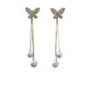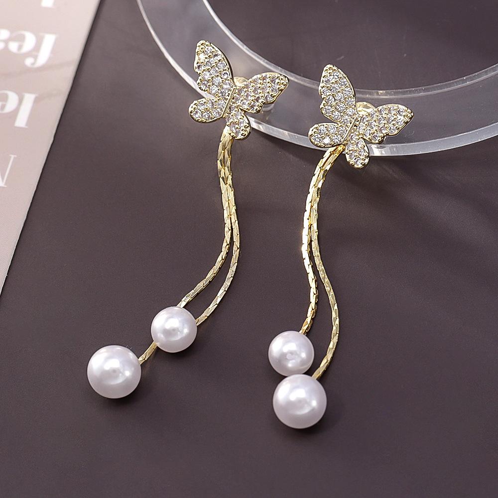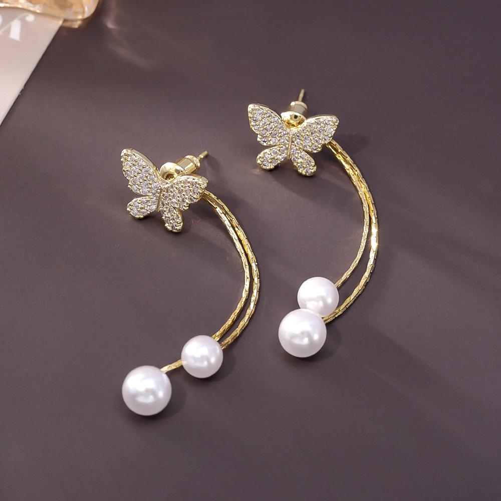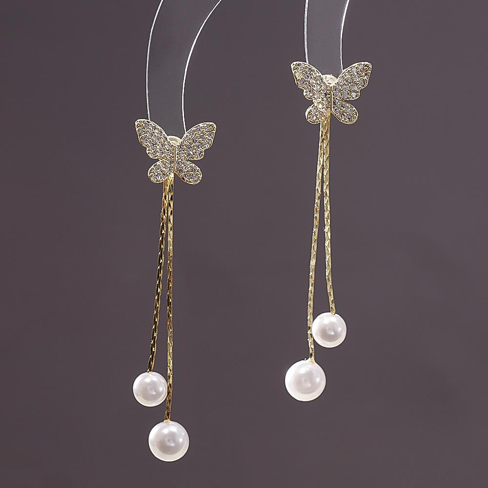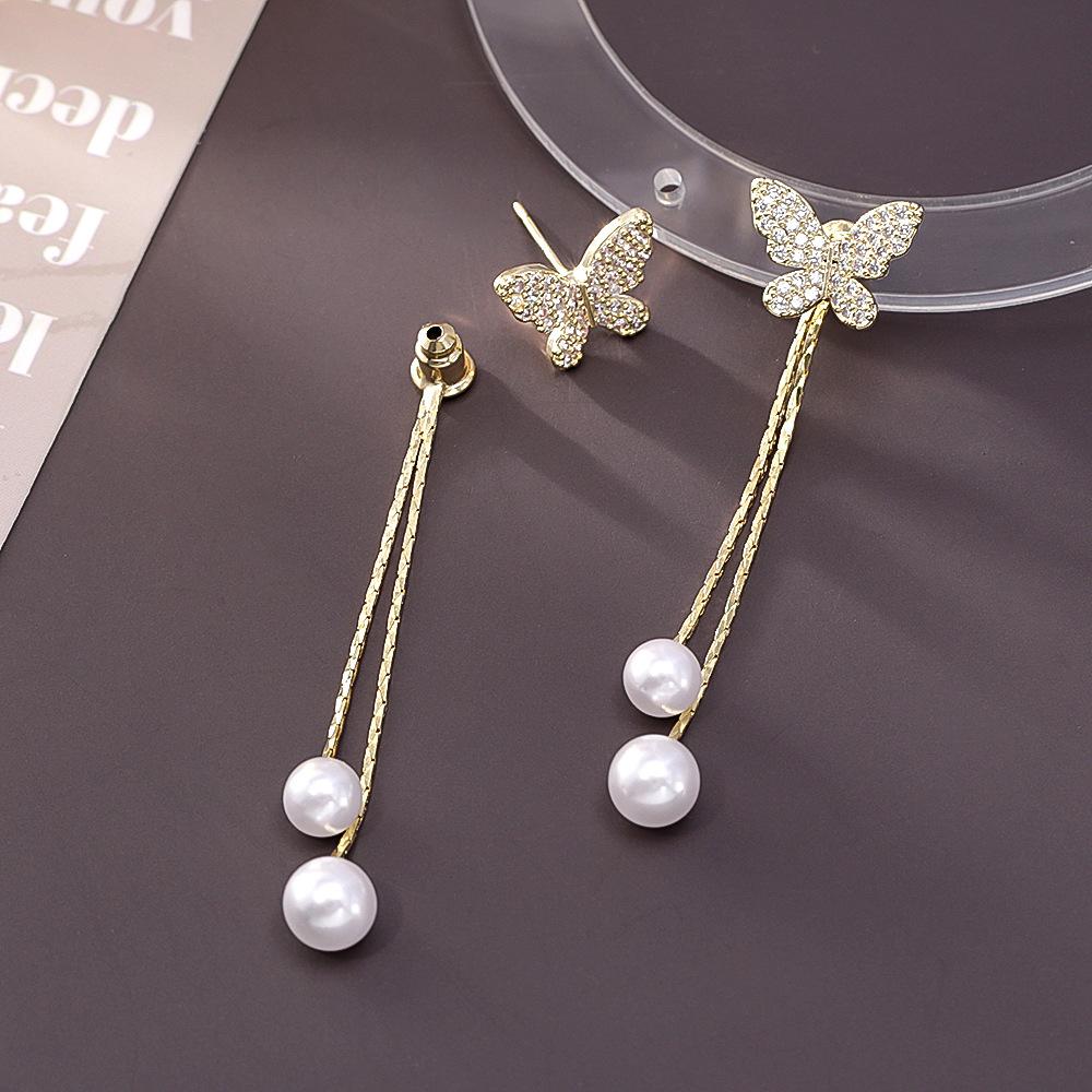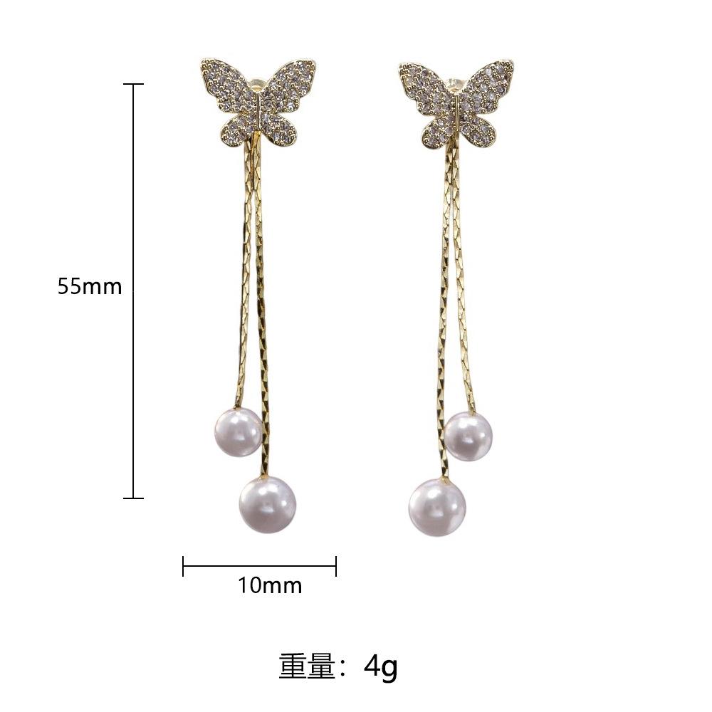 Aretes Largos de Mariposa de Zirconia, Diseño Nicho, Aretes de Borla de Perlas de Dos Usos, Aretes Modernos y Versátiles