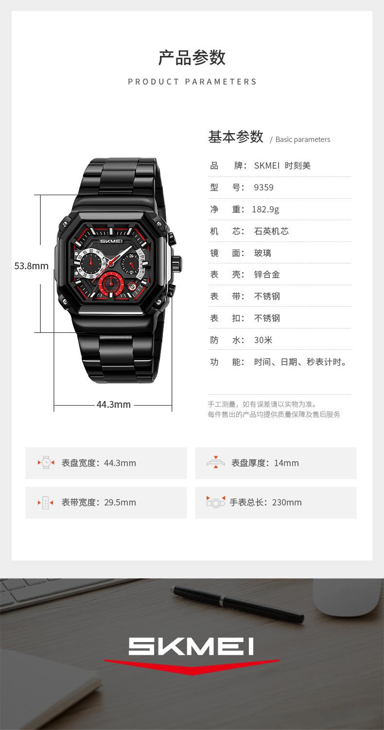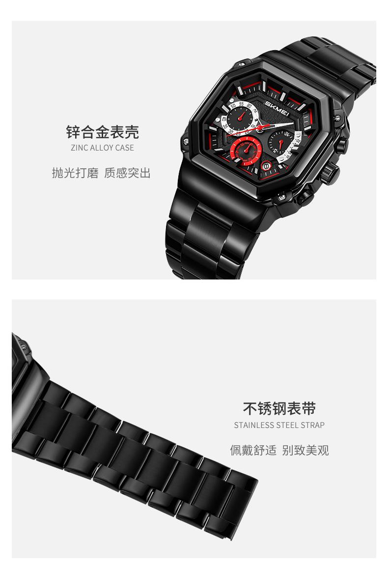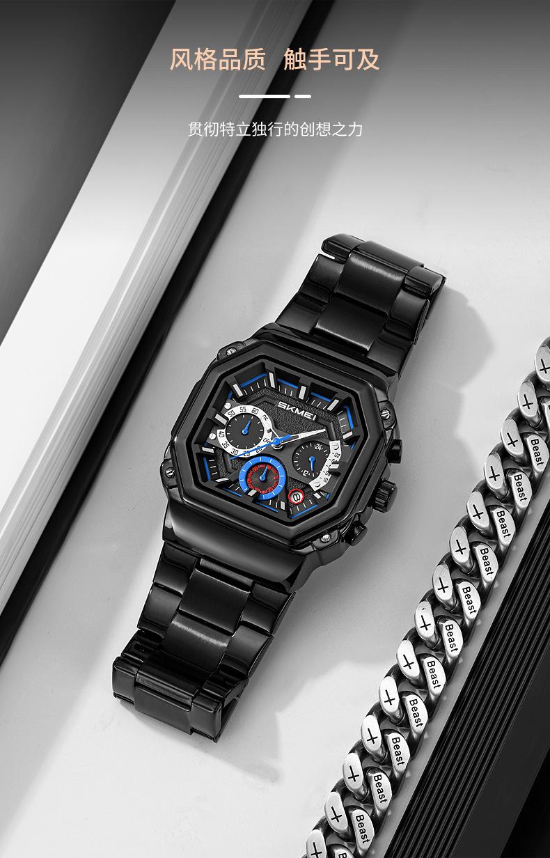Reloj de negocios para hombres, de comercio exterior transfronterizo, de tres esferas y seis agujas, para estudiantes, multifuncional, pequeño, de cuarzo, de tres agujas.
