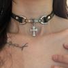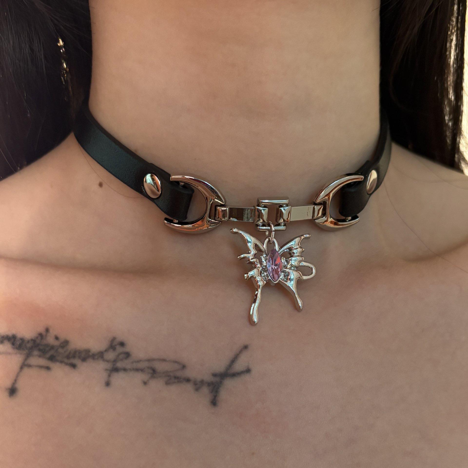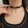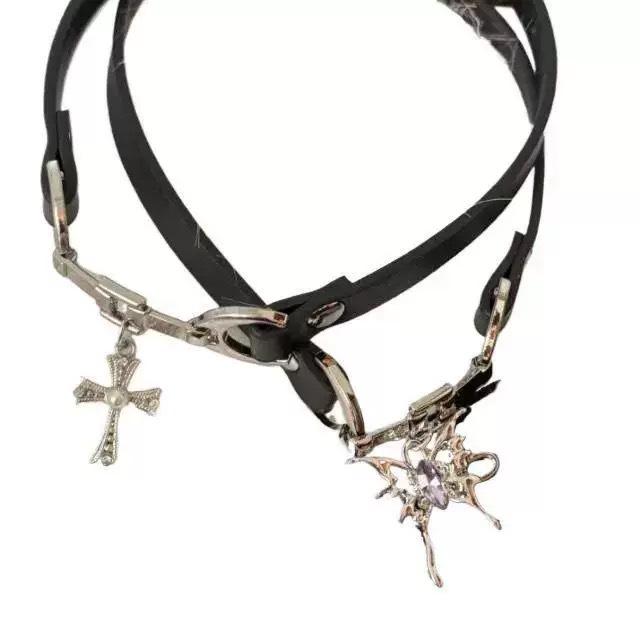 Collar de Cuero Mariposa de Metal Oscuro Nicho Sentido del Diseño de Alto Nivel Colgante de Cruz Gargantilla Joyería para Mujer