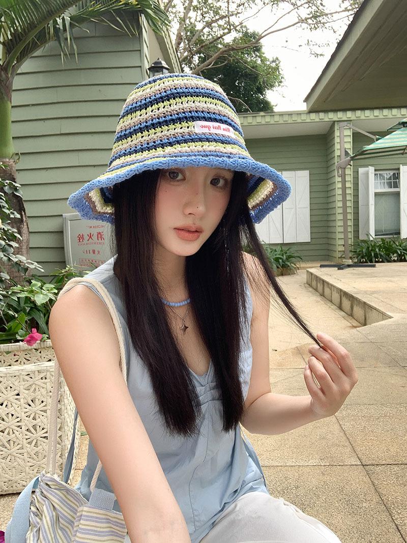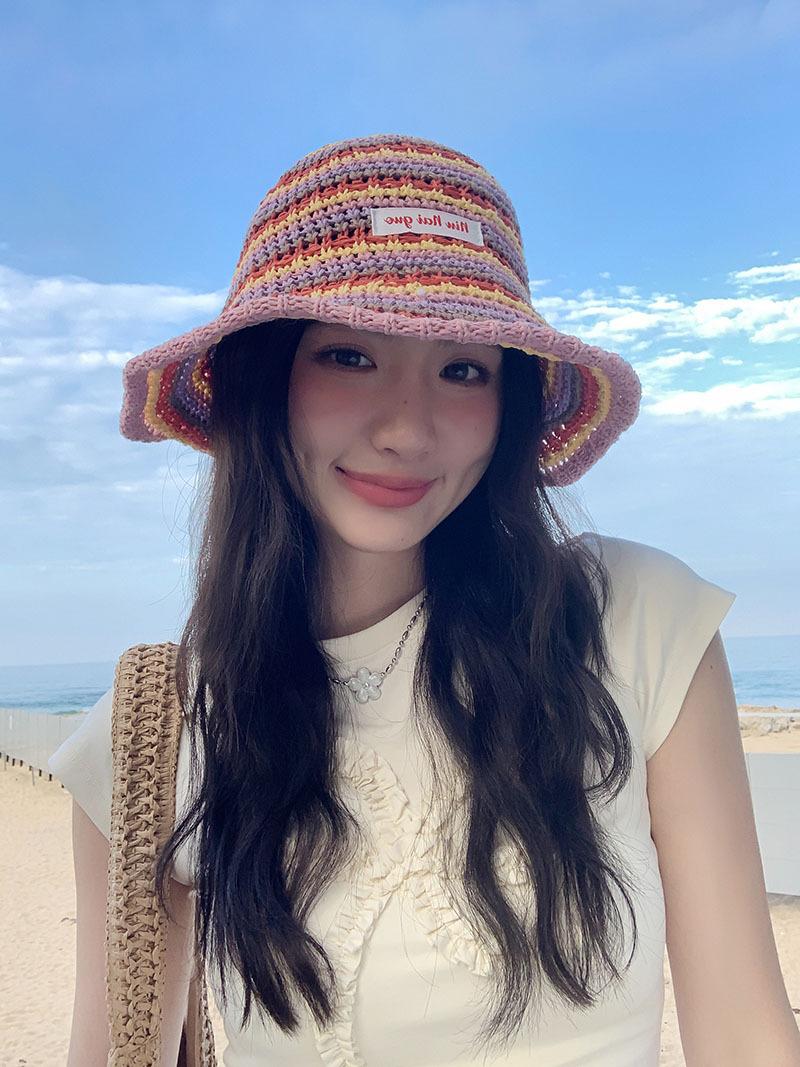 Compra Verano Nuevo Color Raya Sombrero de Cubo de Pescador Vacaciones de Primavera para Niños Playa Marítima Sombrilla Sombrero para el Sol al por mayor en Joom.pro