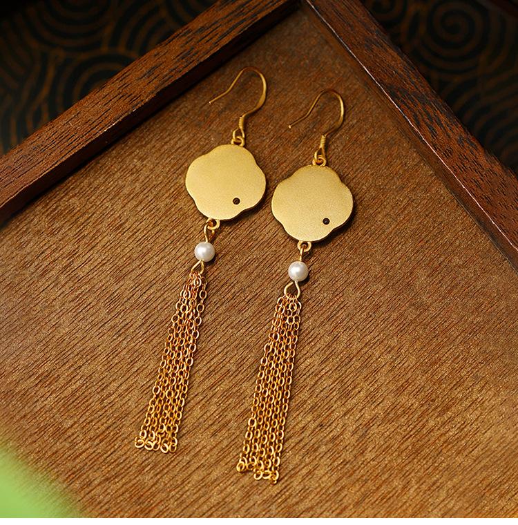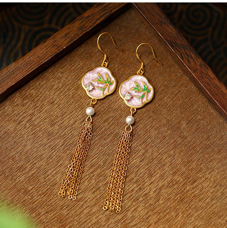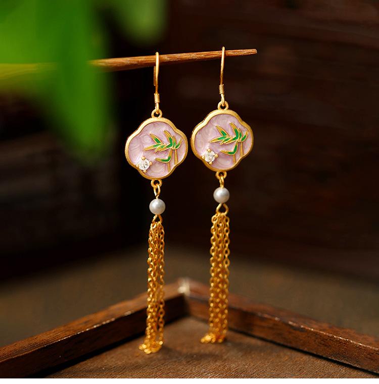 Nuevos pendientes de borlas de bambú de estilo chino, ligeros y de lujo, combinables con todo, estilo nacional, pendientes de alfiler de plata, elegantes pendientes de perlas combinables de alta gama.