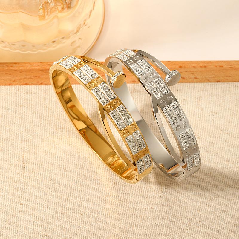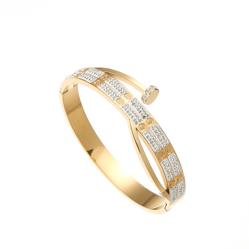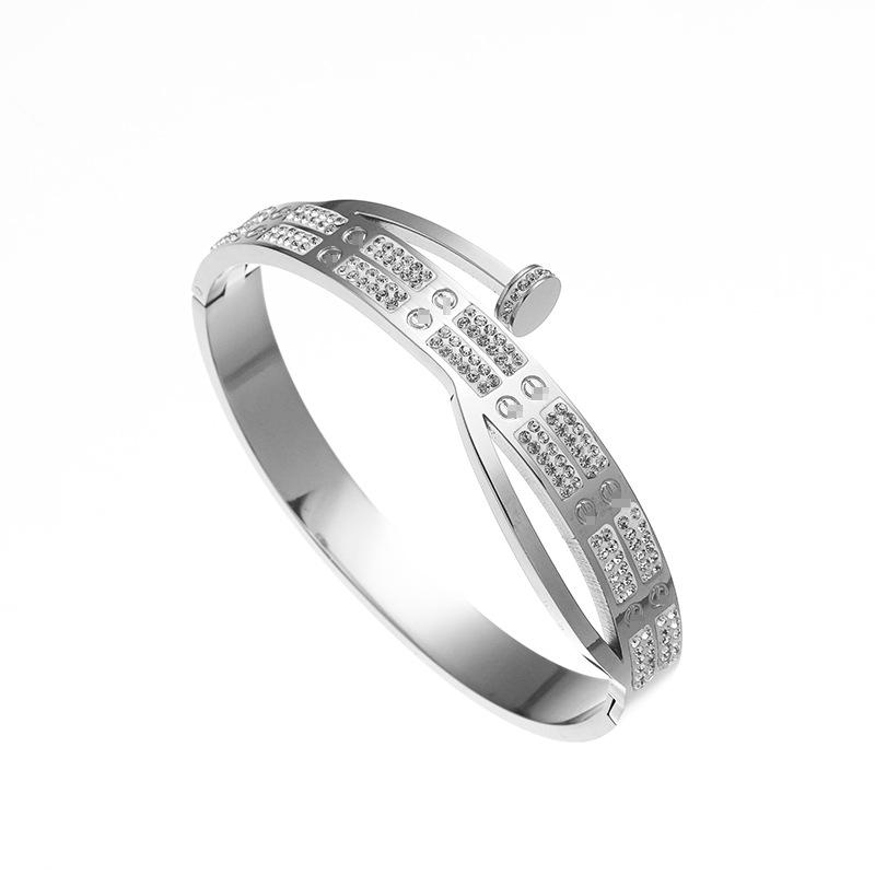 Pulsera sencilla de titanio transfronteriza europea y americana para mujer, destornillador con diamante, pulsera de acero inoxidable de alta calidad, pulida de alto brillo
