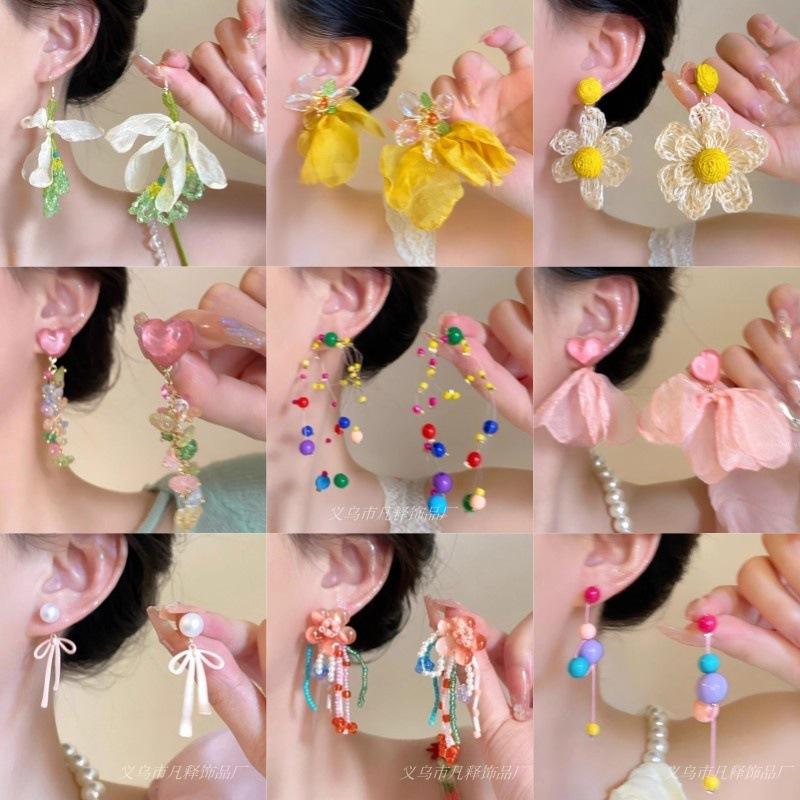 Compra Pendientes de tela con flores amarillas estilo festivo para mujer, aretes pequeños con cara de color costero, joyería para las orejas con personalidad exagerada al por mayor en Joom.pro