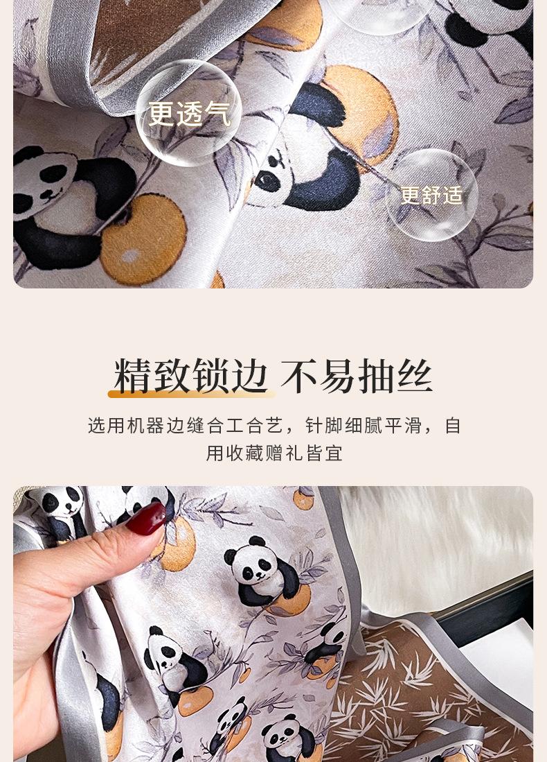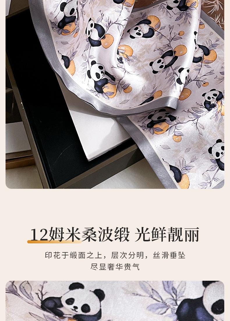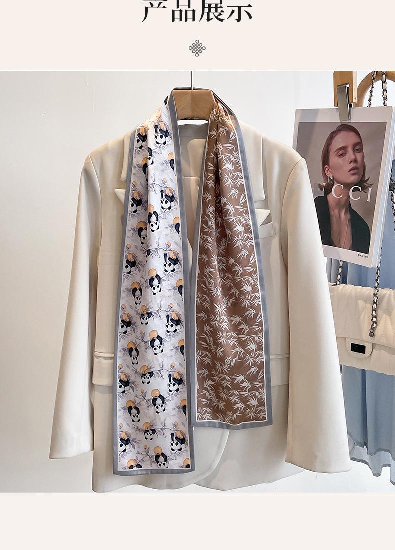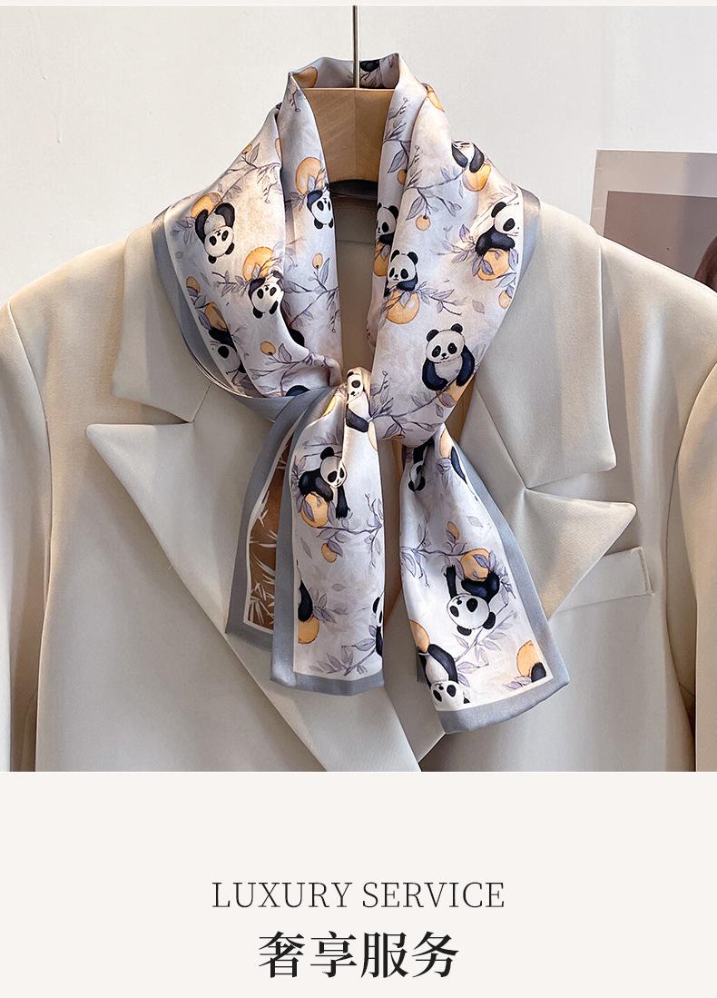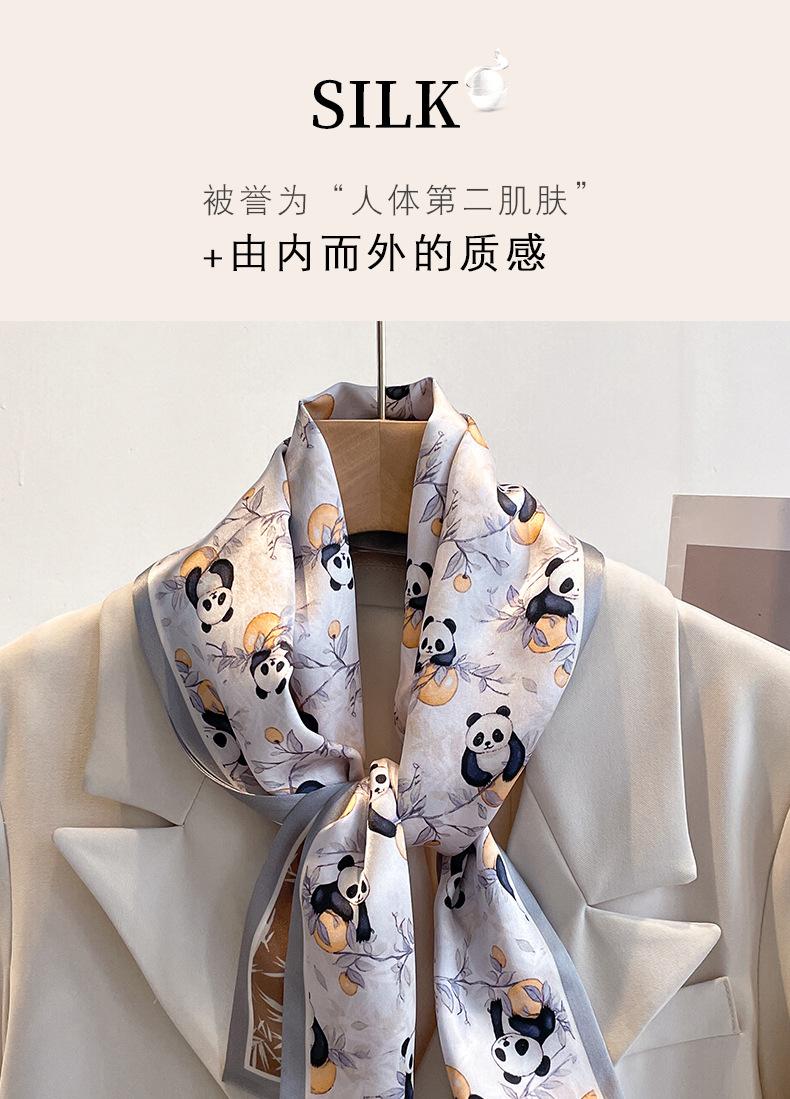 Bufanda Larga de Seda Panda Cuello Mujer 2025 Nuevo Estilo Occidental de Alta Gama Moda Cinta Estrecha Bufanda de Primavera y Otoño
