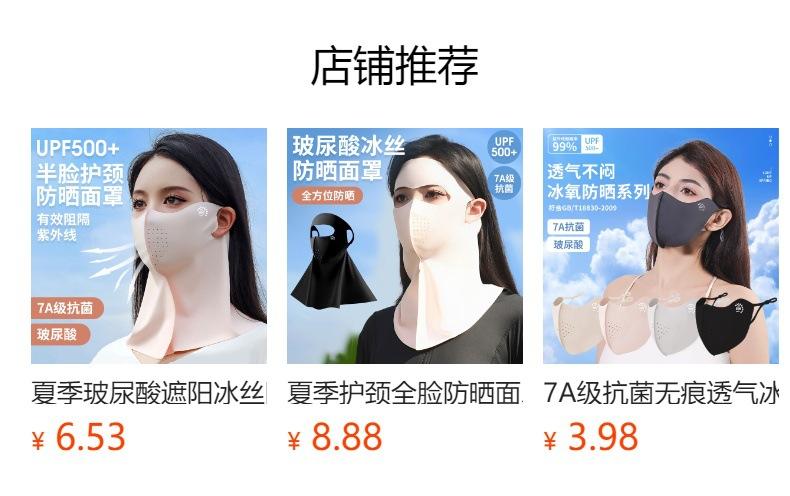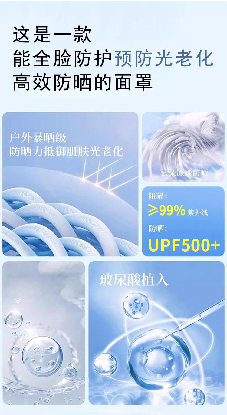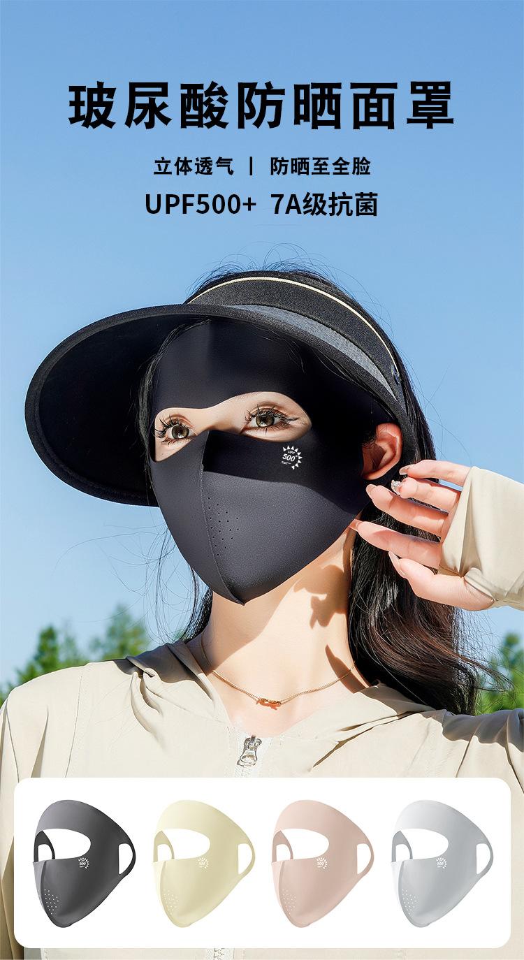 Mascarilla Protector Solar Antibacteriana de Ácido Hialurónico 7A Cubre Rostro Completo Sombrilla para Mujer Seda de Hielo Transpirable Anti-UV Verano Ciclismo Cara Gini