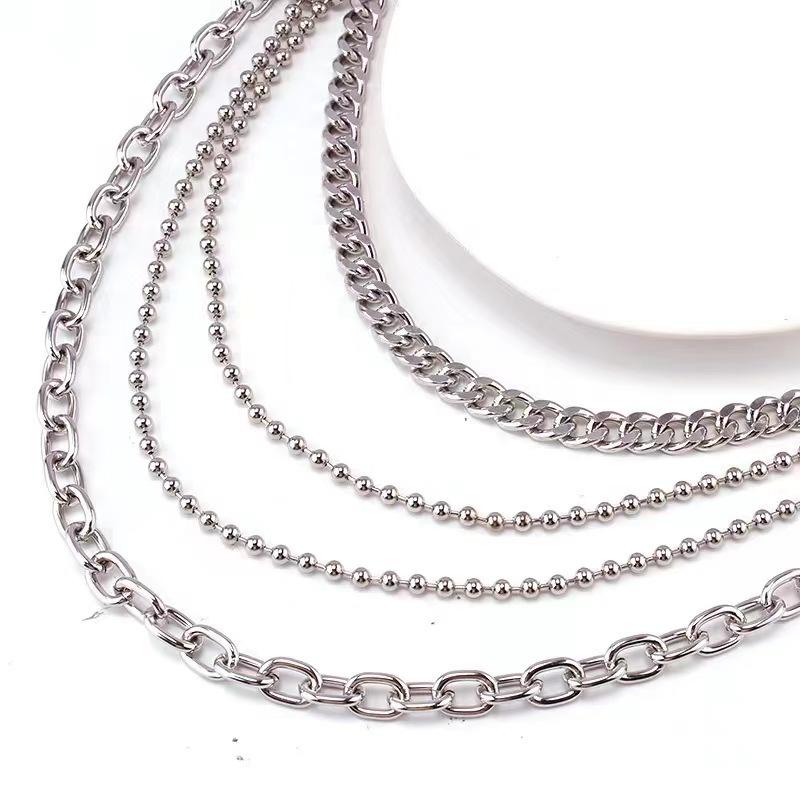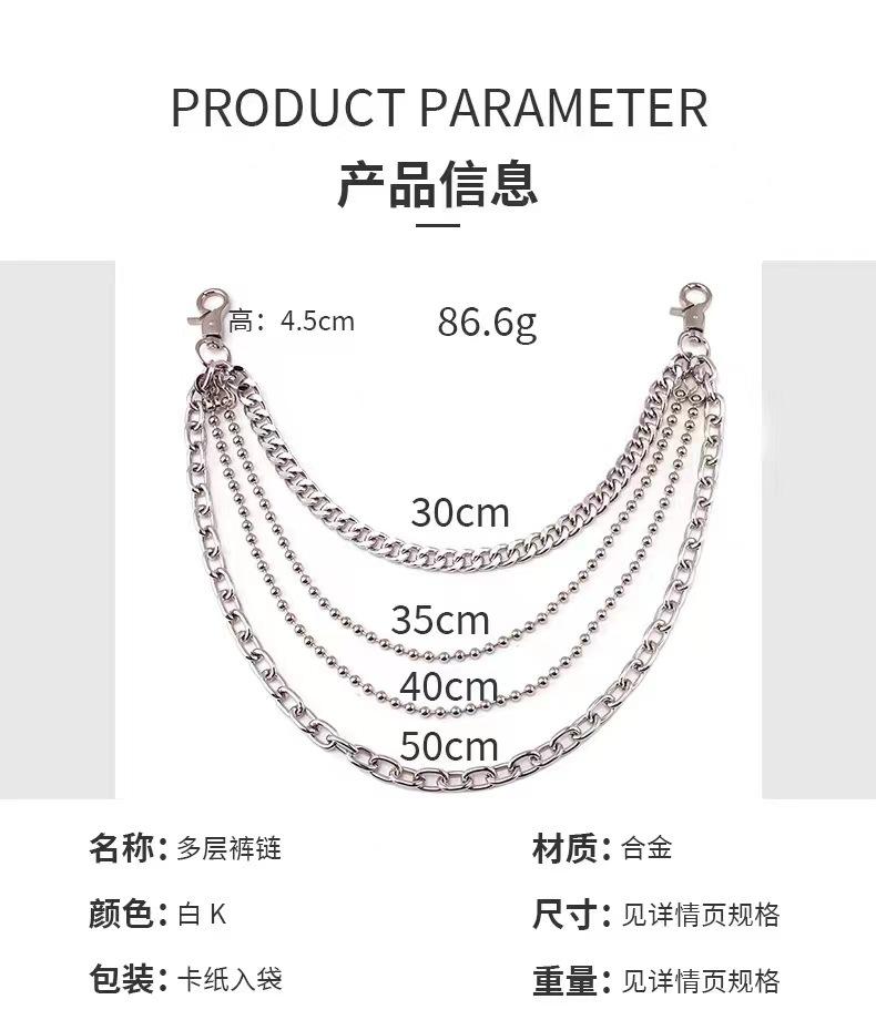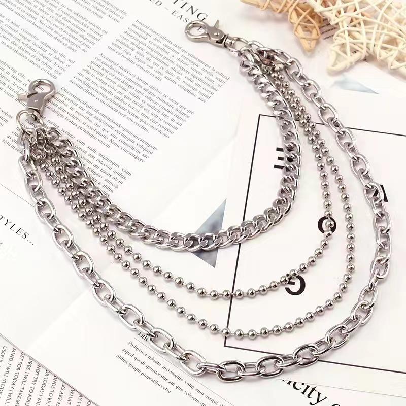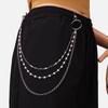 Cadena para pantalones de combinación multicapa con cuentas redondas, joyería transfronteriza europea y americana, cadena para pantalones tejida, cadena para pantalones de metal de nicho de moda.