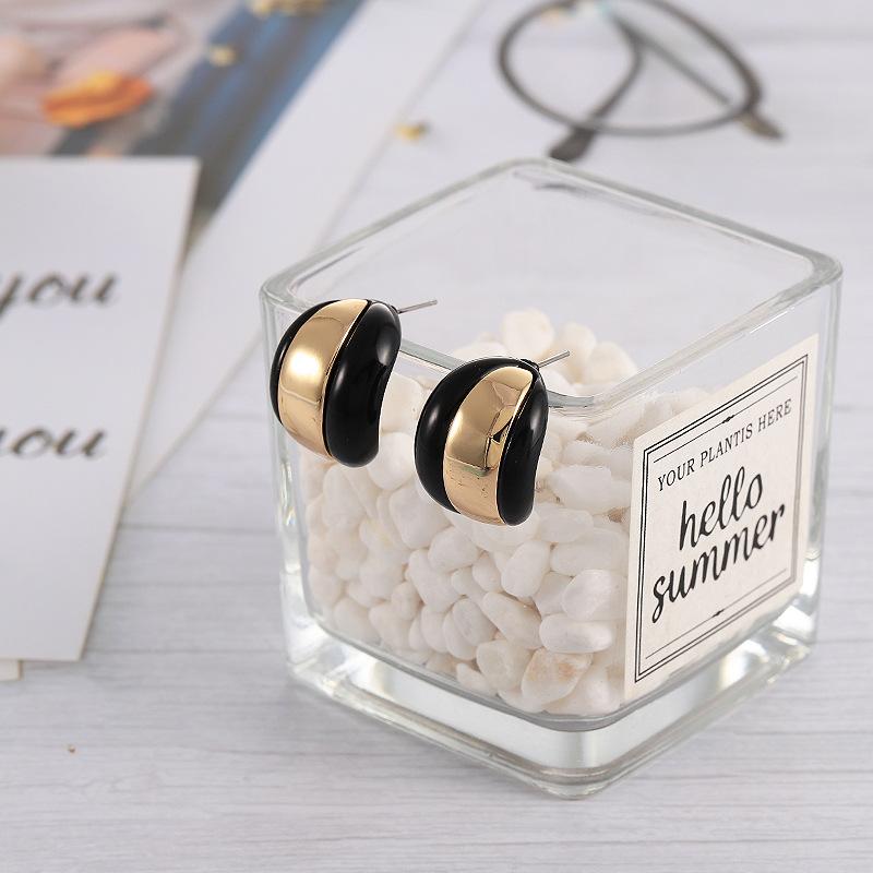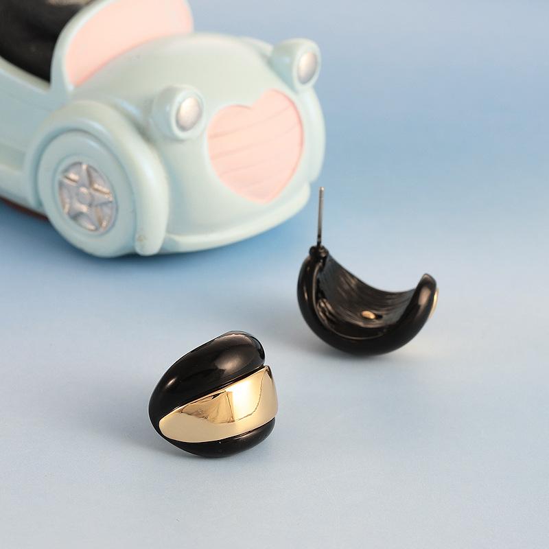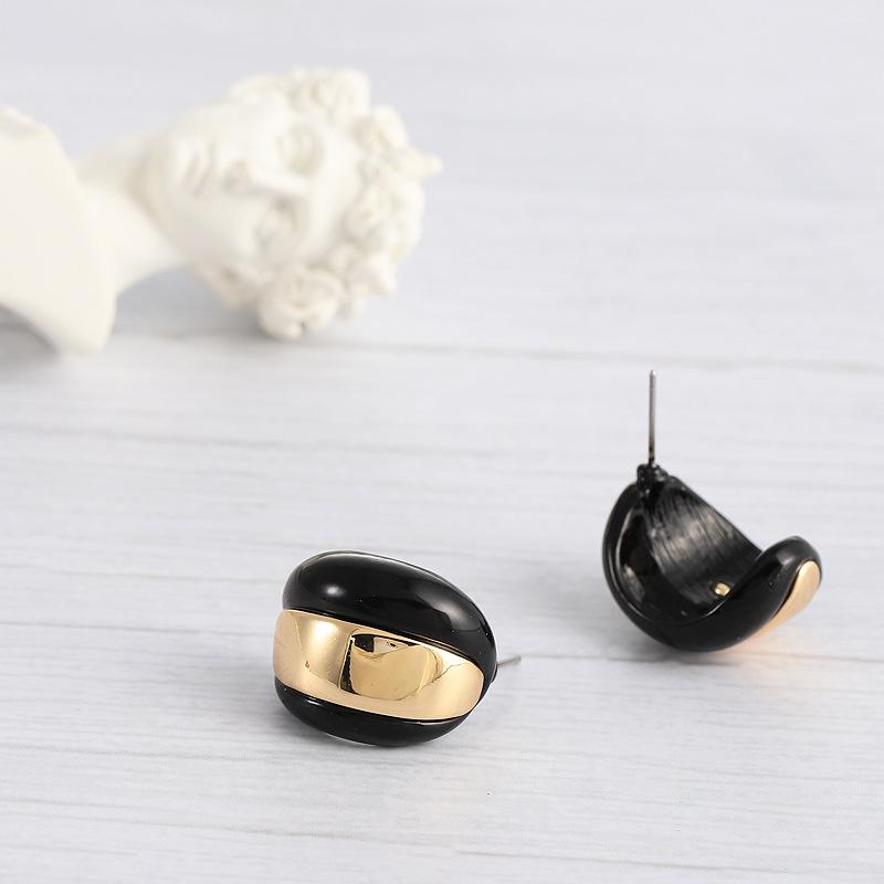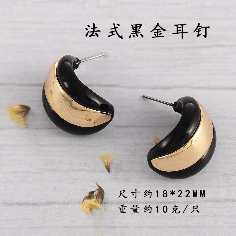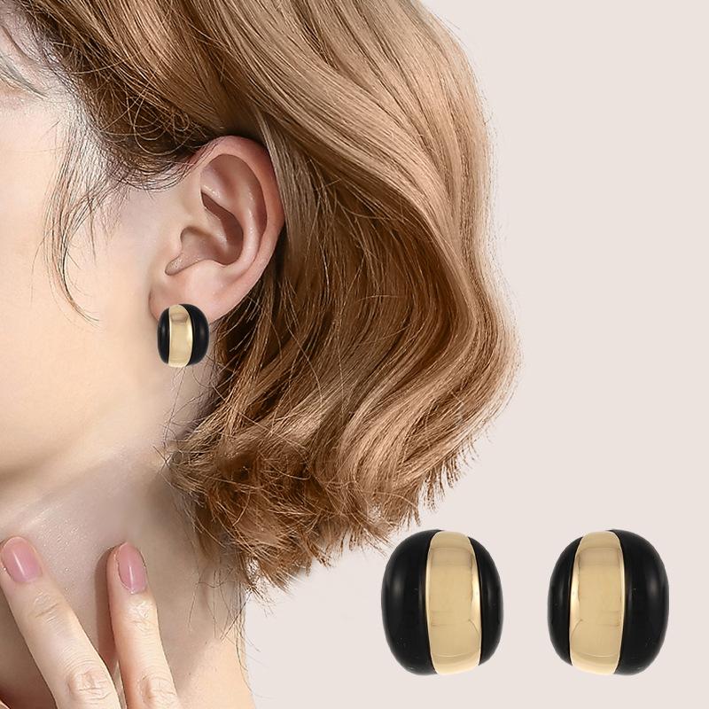 Aretes Redondos Retro Franceses Negro Oro para Mujer Aretes de Acero Titanio Chapado en Oro Real Aretes de Lujo Ligero de Alta Gama Personalizados para Combinar con Todo Venta al por Mayor