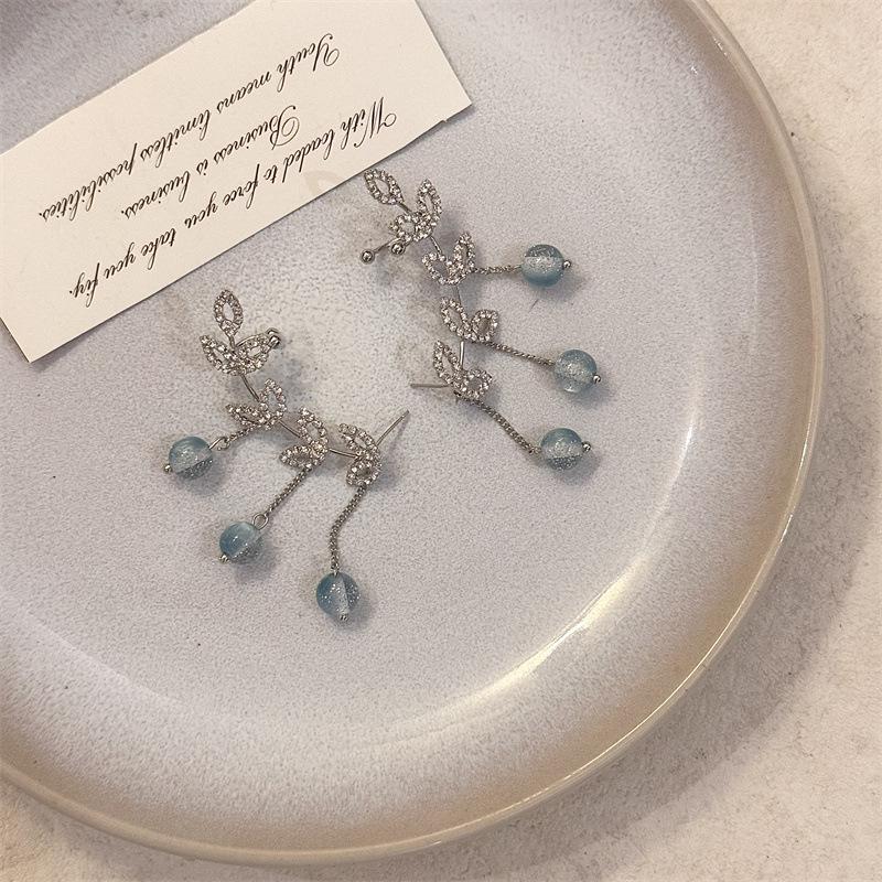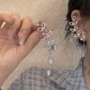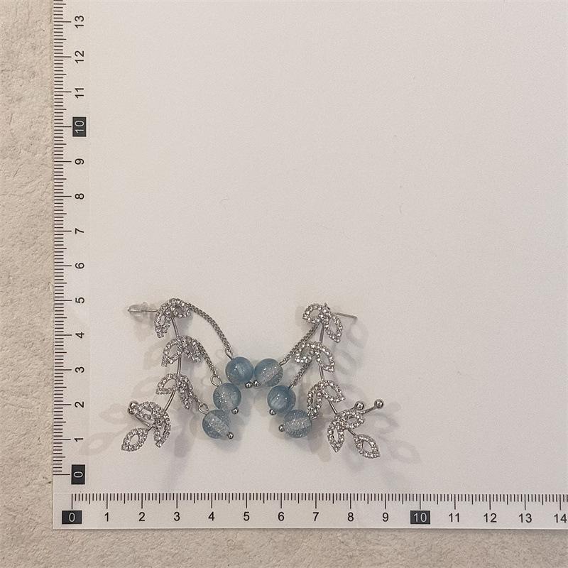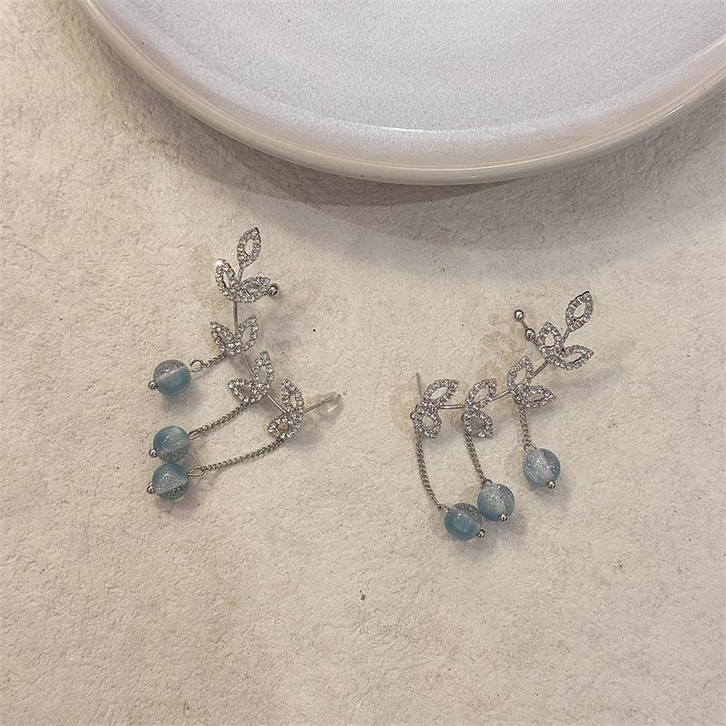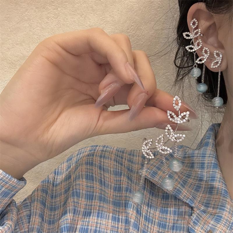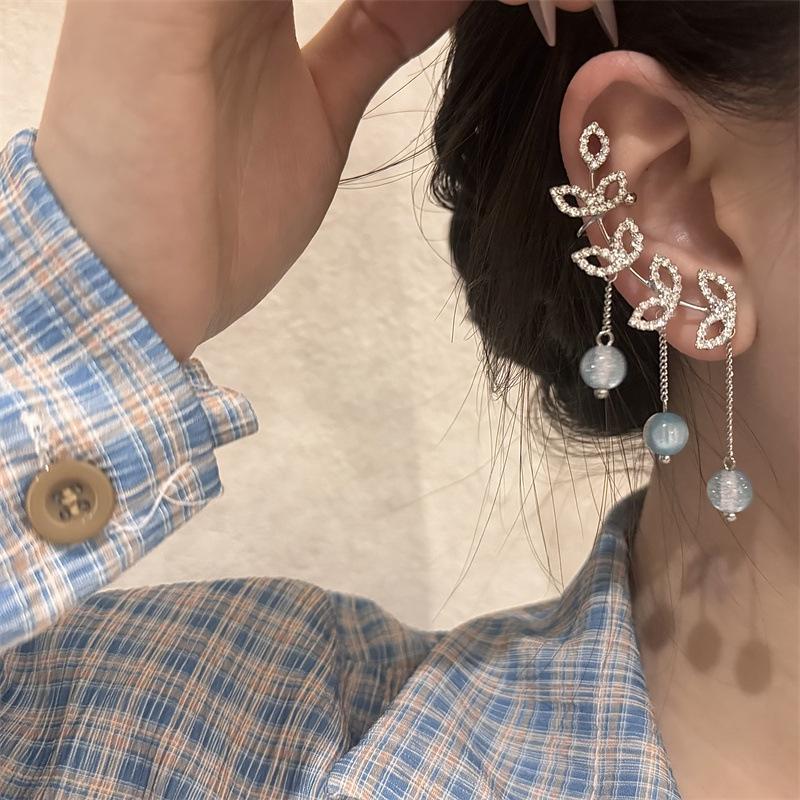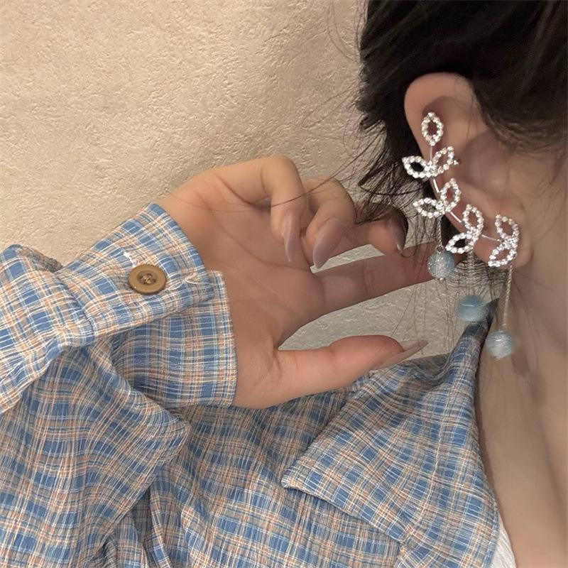 Pendientes de borlas con hojas de diamantes de estilo festivo exagerado, pendientes de clip de una sola pieza, ligeros, de lujo, de moda.