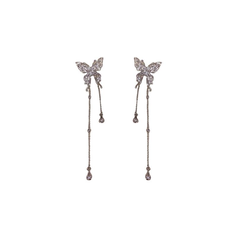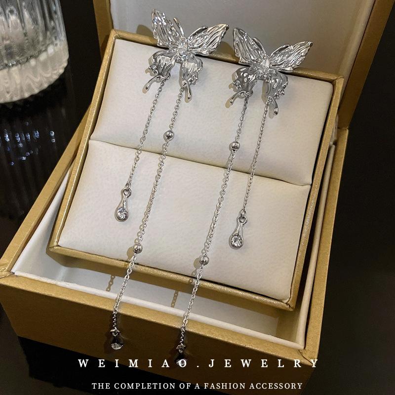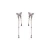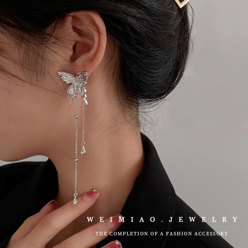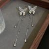Pendientes de mariposa plisados con incrustaciones de diamantes y aguja de plata, estilo frío, largos con borlas, modernos pendientes metálicos con líquido para mujer.