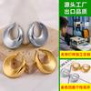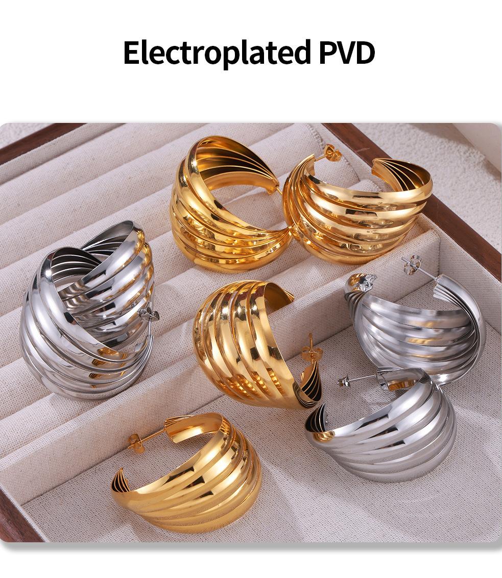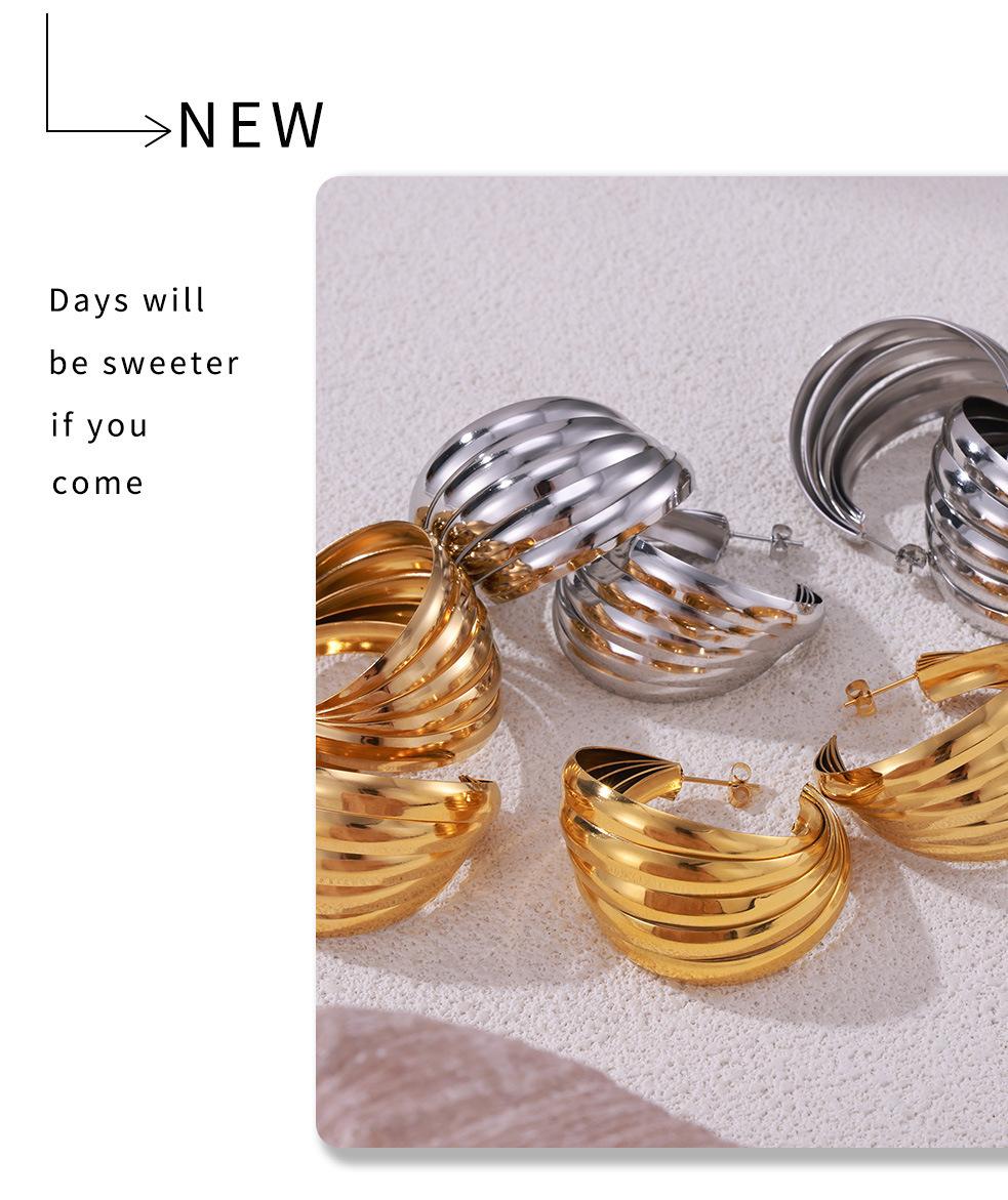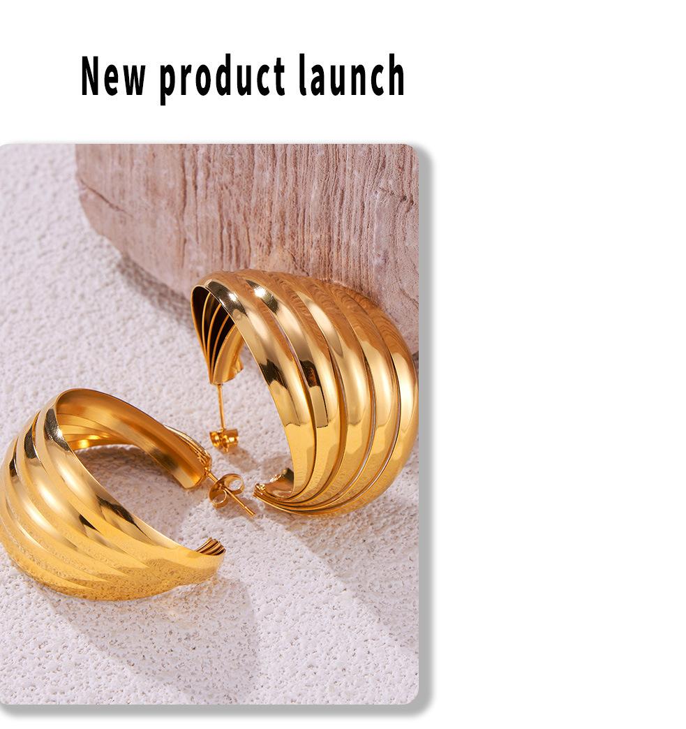 Pendientes de medio aro trenzados de acero de titanio, sencillos y exagerados, de estilo europeo y americano, con un diseño de lujo, ligeros y creativos, que combinan con todo para mujer.