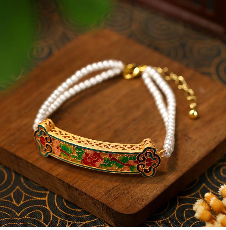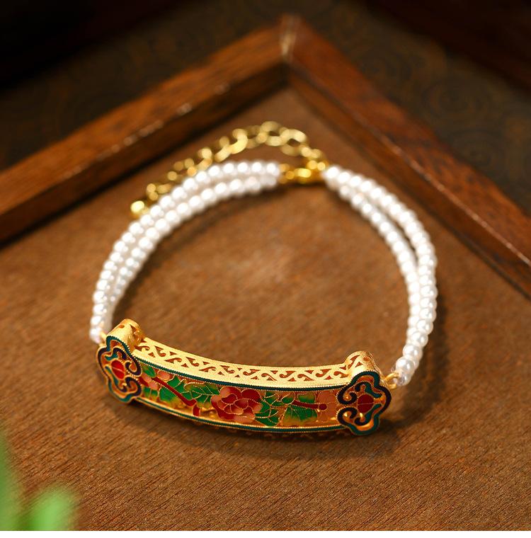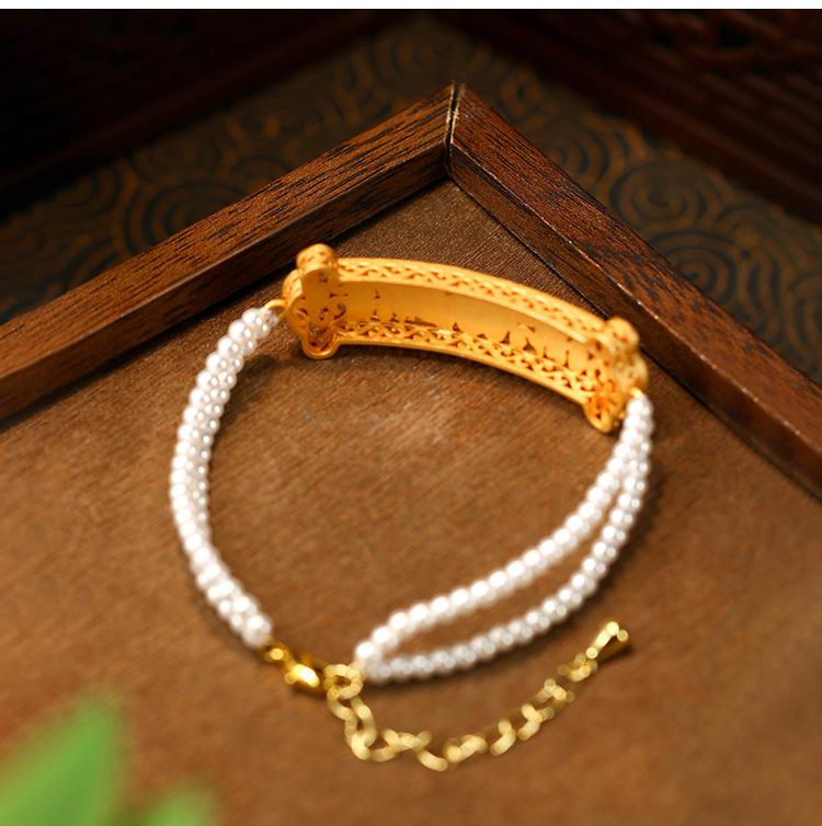 Pulsera de Mano de Seda Ruyi Azul Chapada en Oro con Retención de Color de Estilo Chino Nuevo Moda Nacional para Mujer Sensación de Alta Gama Pulsera de Cuentas de Transferencia