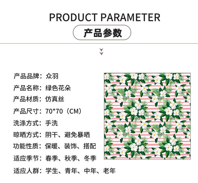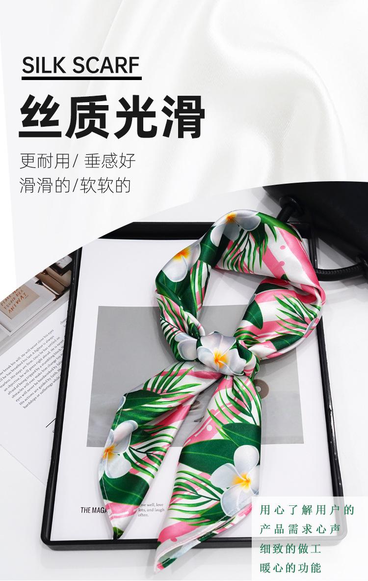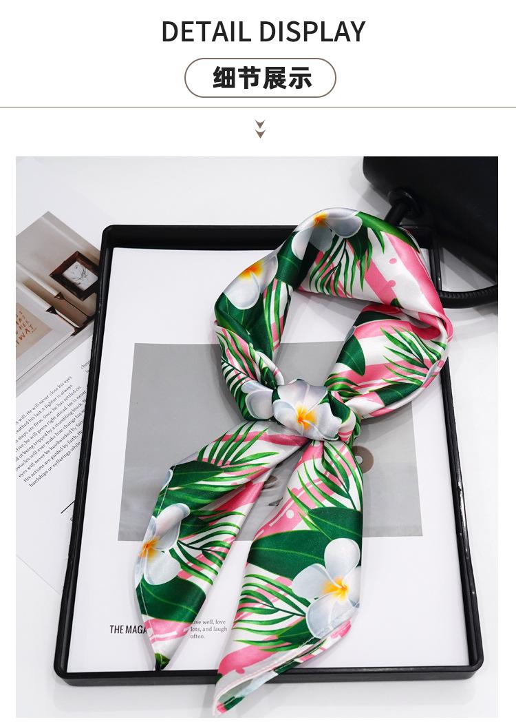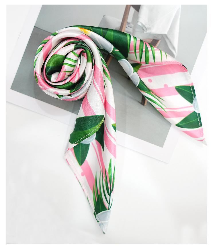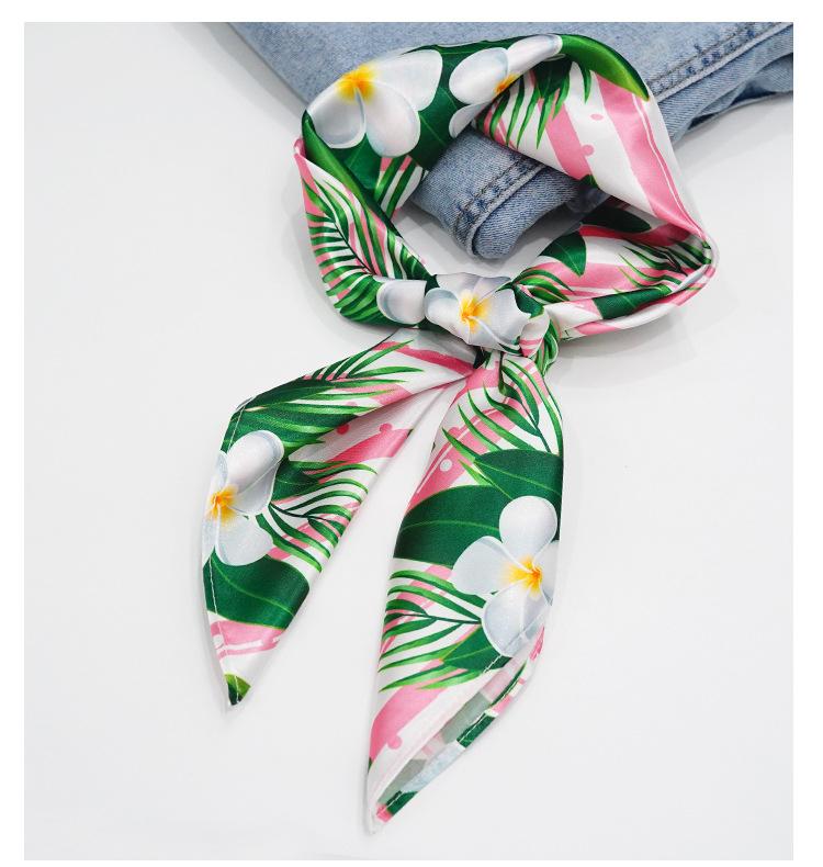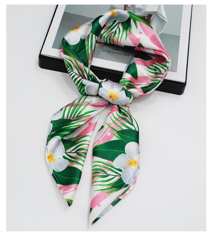 Nueva bufanda de seda con flores verdes que combina con todo el verano para mujer, bufanda larga con lazo para bolso, bufanda fina y estrecha.