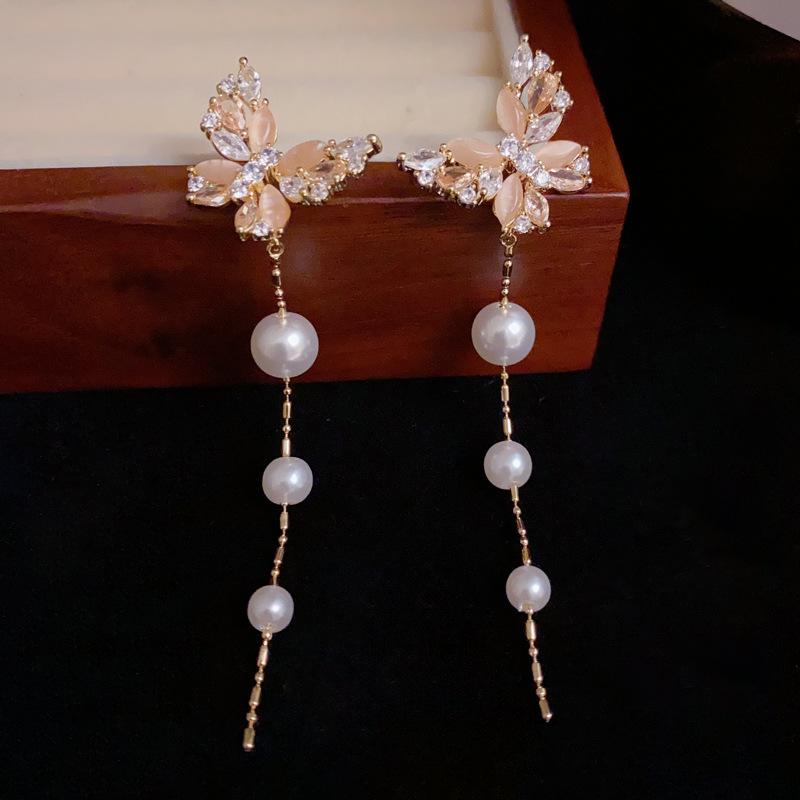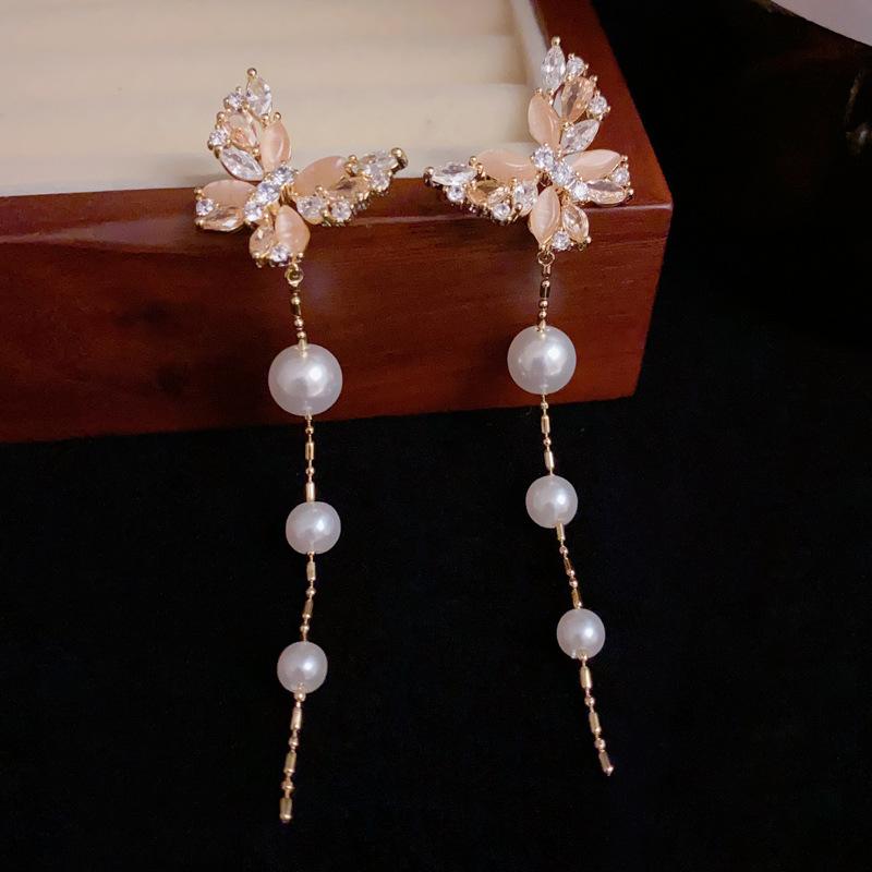 Compra Pendientes de borla de perla de mariposa de circonita de alta gama de lujo de moda exquisita de estilo coreano, pendientes de Joker con personalidad, venta al por mayor al por mayor en Joom.pro