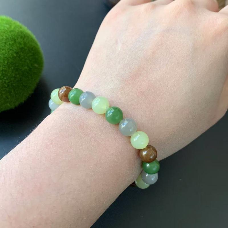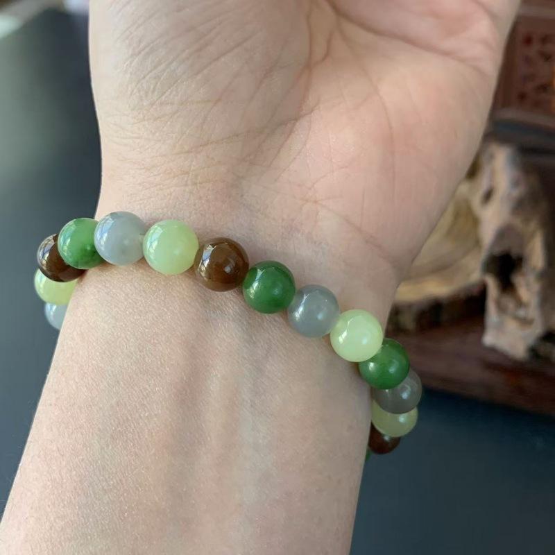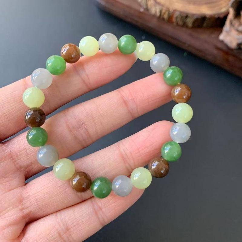Jade Hetian Natural Material de Xinjiang Boutique Duobao Pulsera de Cuentas Redondas de 8 mm para Mujer Sentido Avanzado con Certificado Regalo