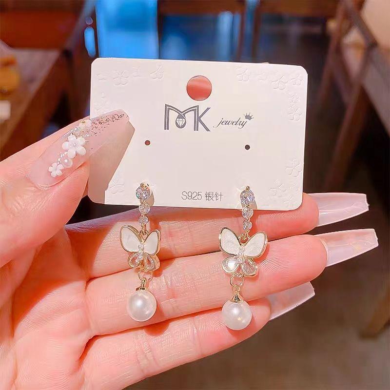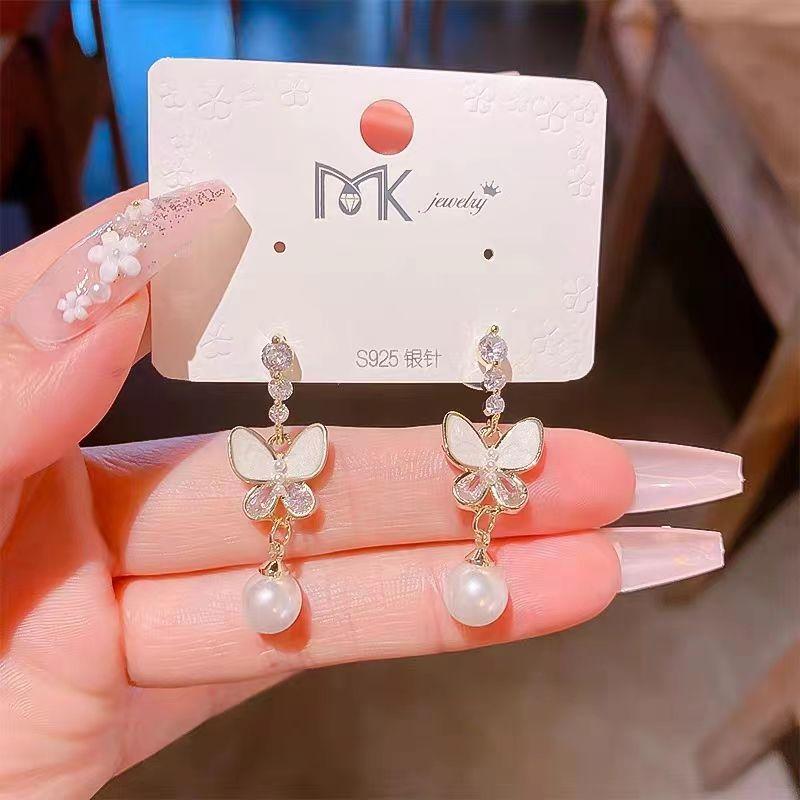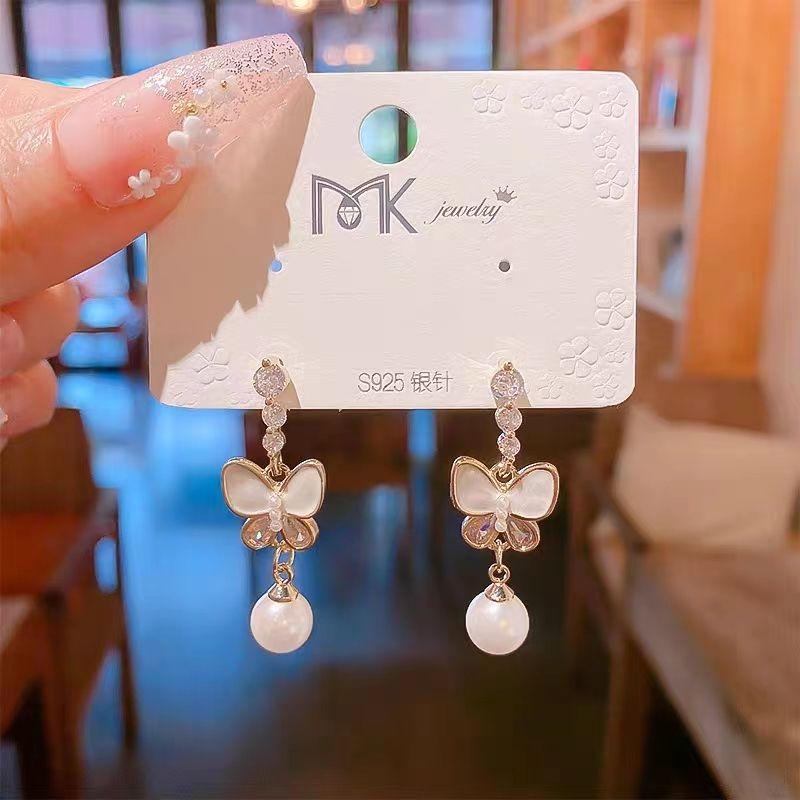 Compra Pendientes de moda elegantes casuales que combinan con todo elegantes pendientes de plata con forma de aguja y flor súper hada ligera de lujo pendientes con diseño de mariposa nicho al por mayor en Joom.pro