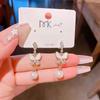 Pendientes de moda elegantes casuales que combinan con todo elegantes pendientes de plata con forma de aguja y flor súper hada ligera de lujo pendientes con diseño de mariposa nicho