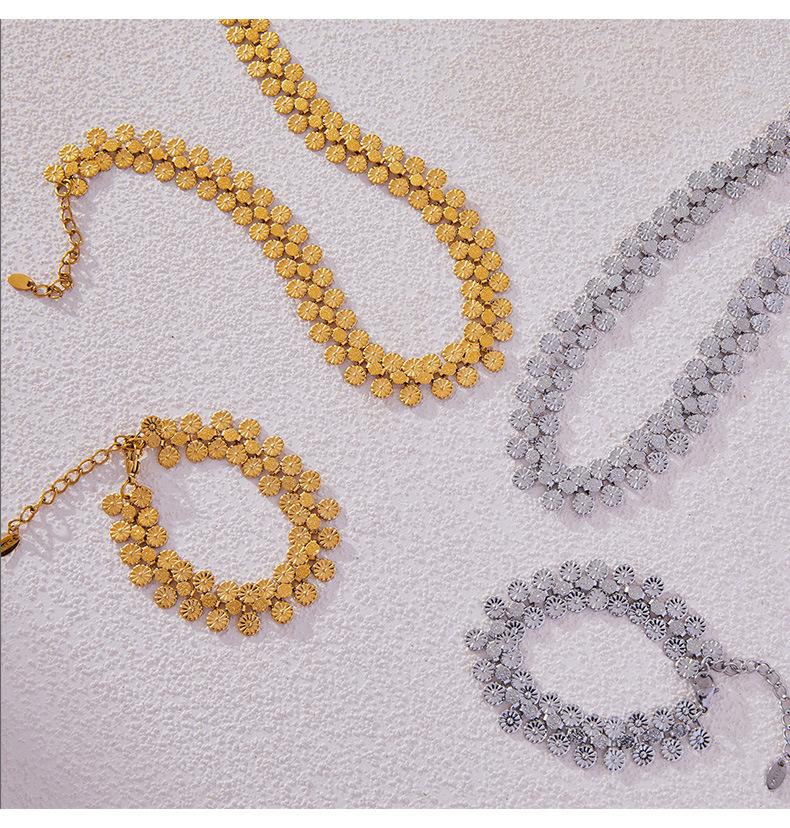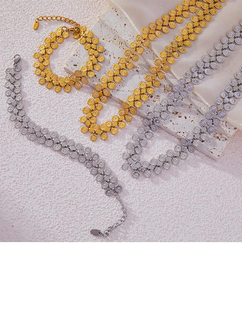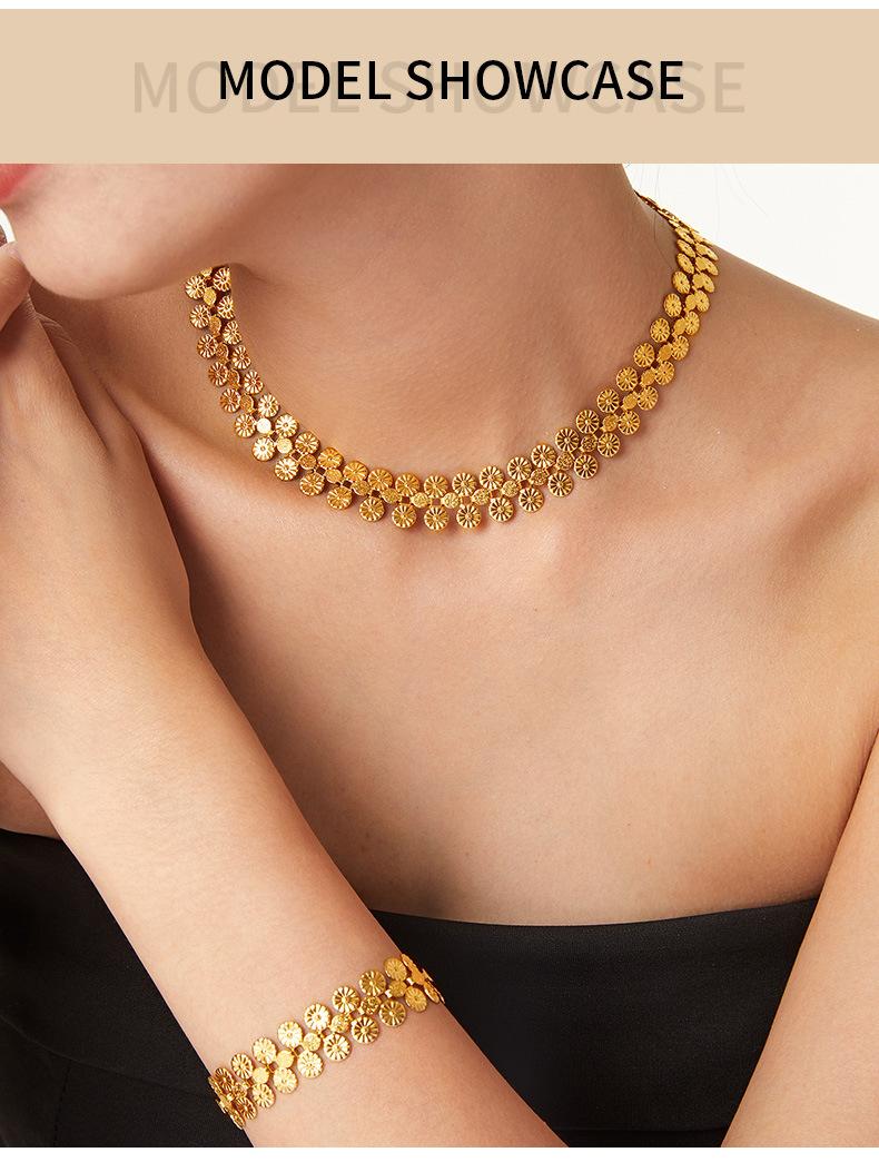Pulsera y collar con diseño personalizado de lujo, ligero, de acero de titanio, con cadena de flores y costuras multiredondas, estilo europeo y americano, disponible en stock.