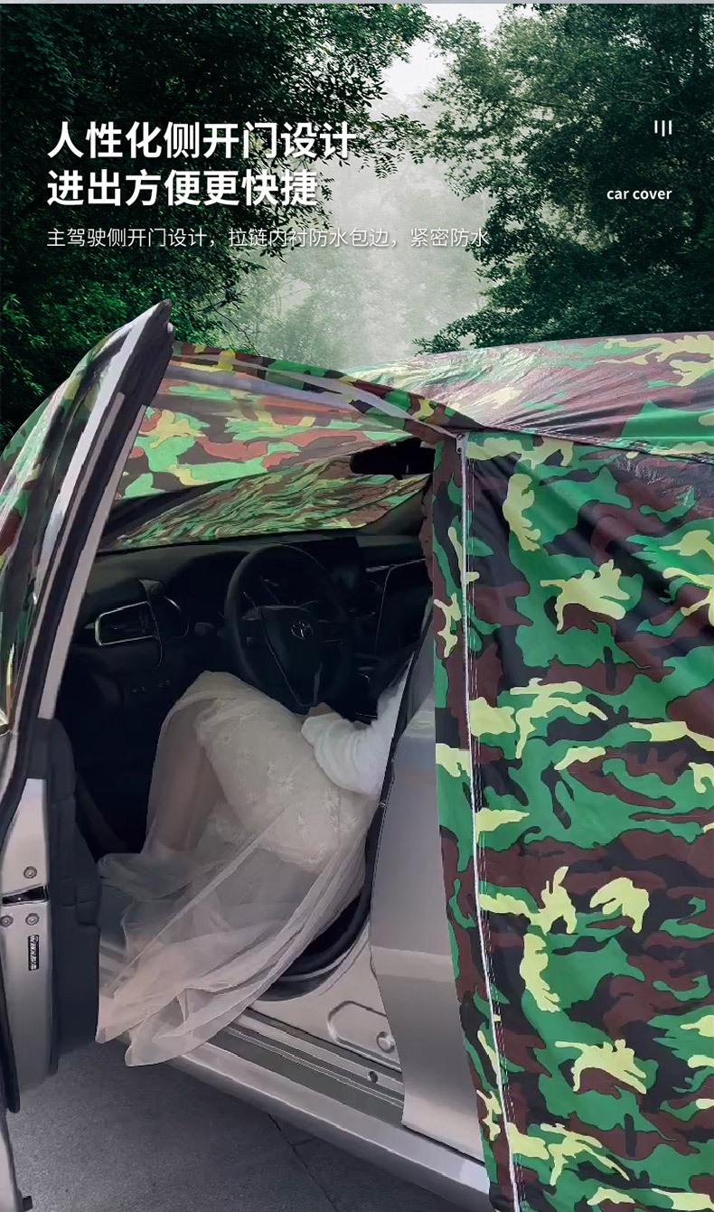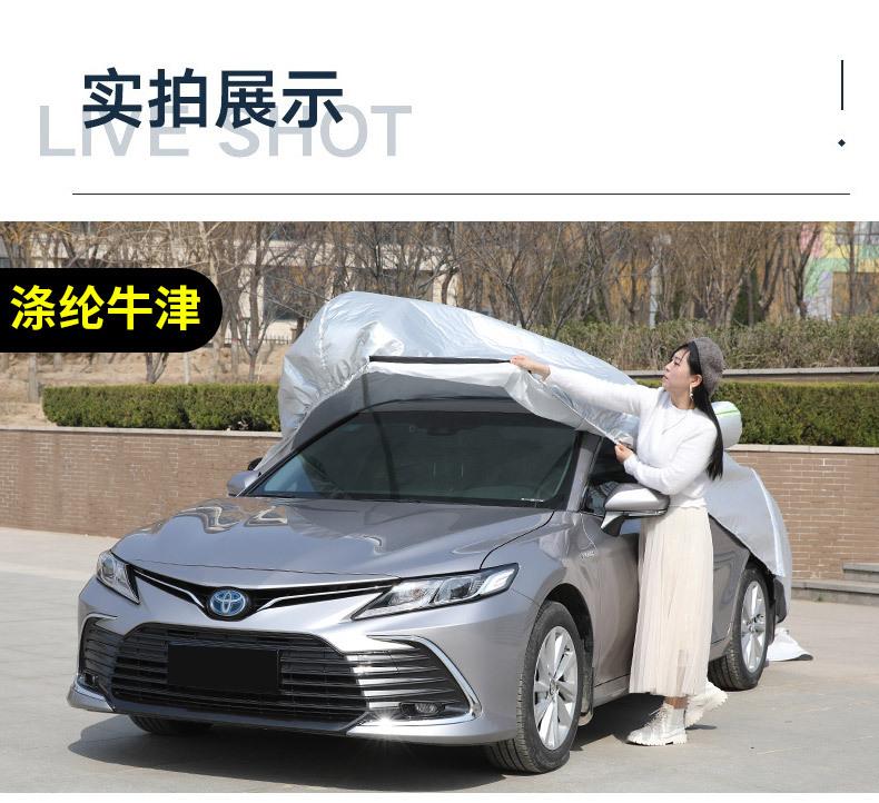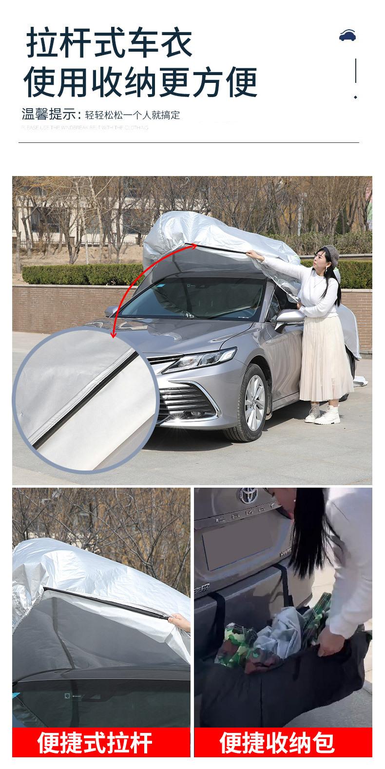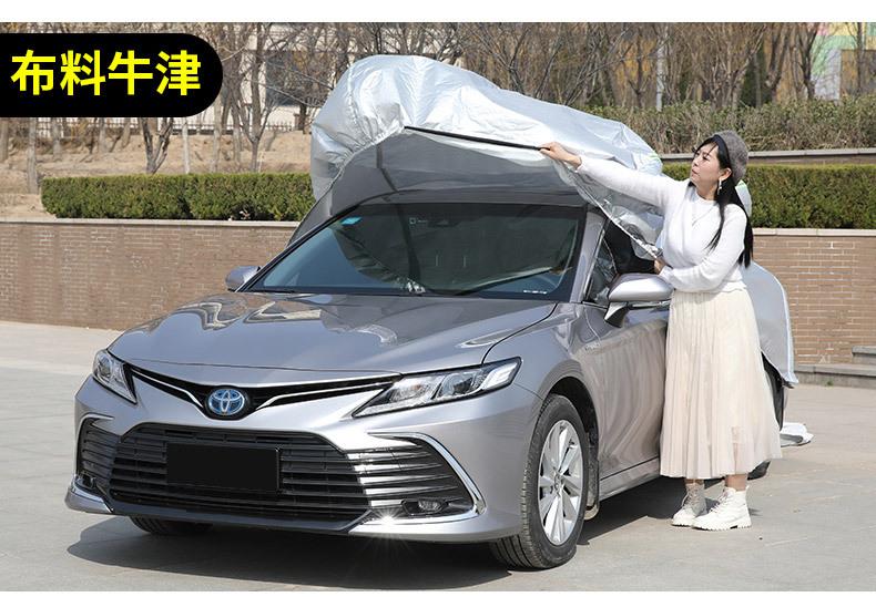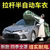 Funda para coche con barra de acoplamiento, tela Oxford, semiautomática, cobertura completa, protección solar y resistente a la lluvia, especial para las cuatro estaciones, universal, práctica y gruesa.