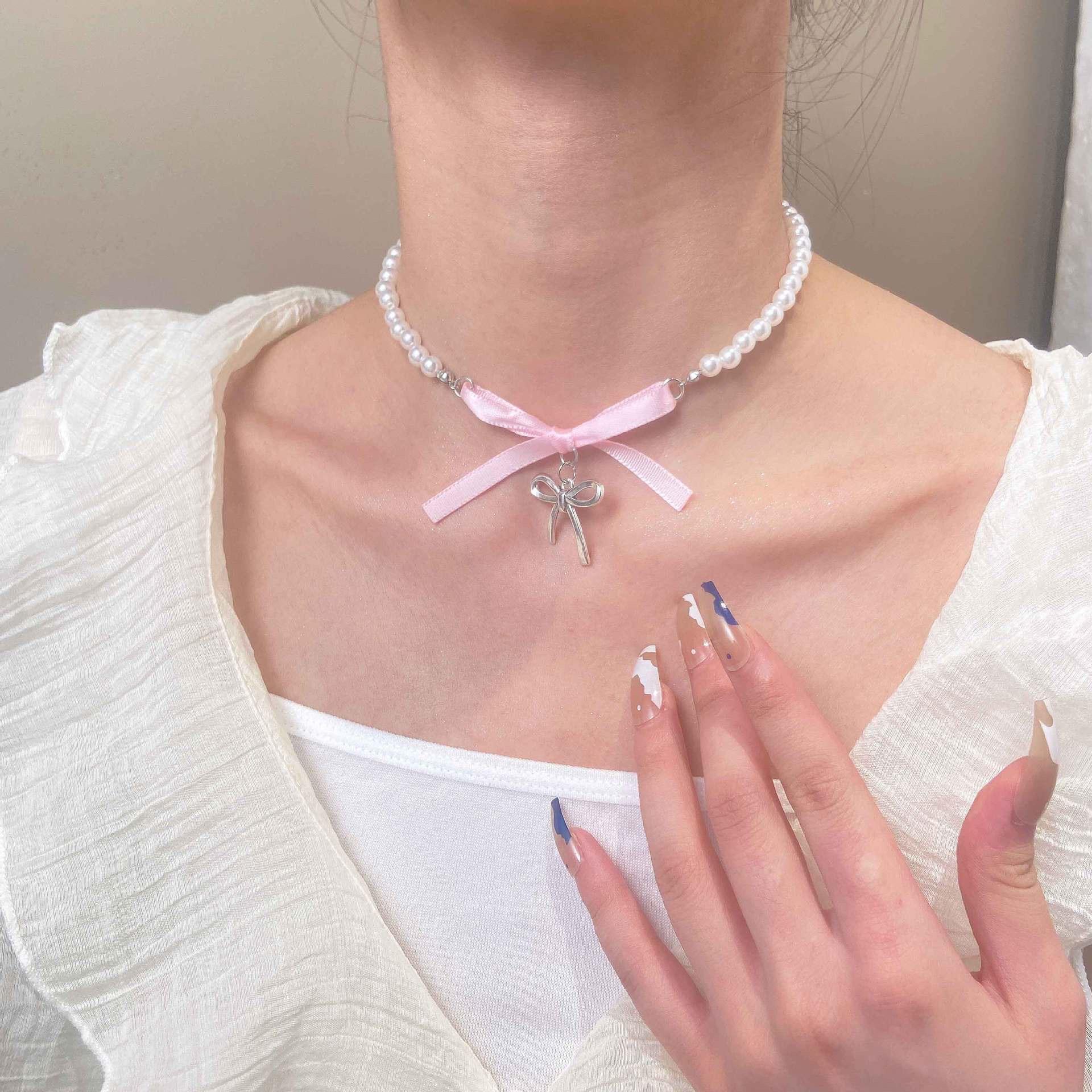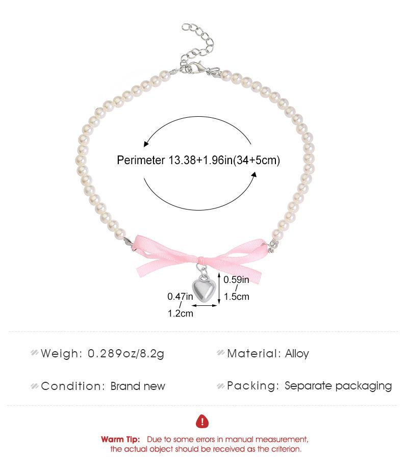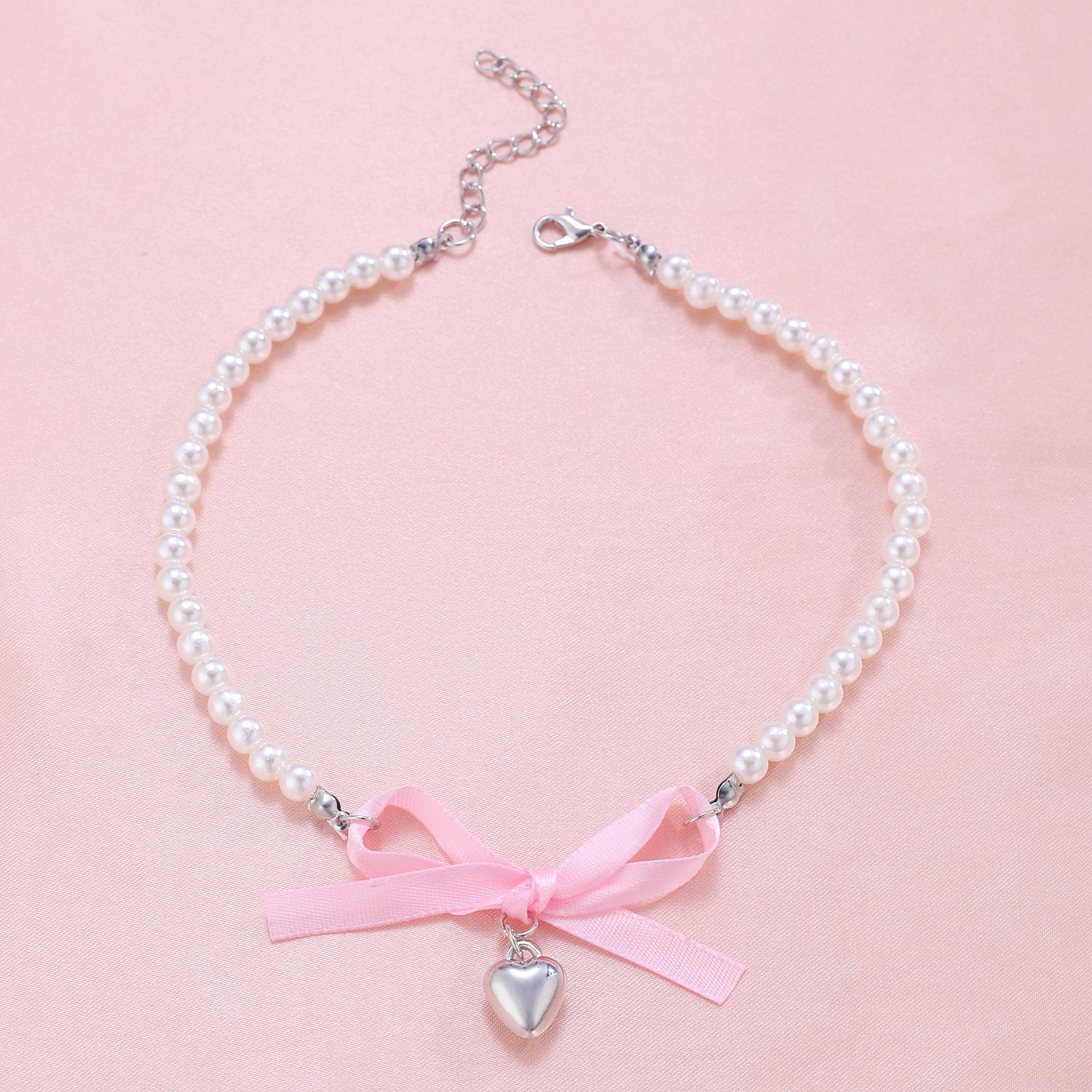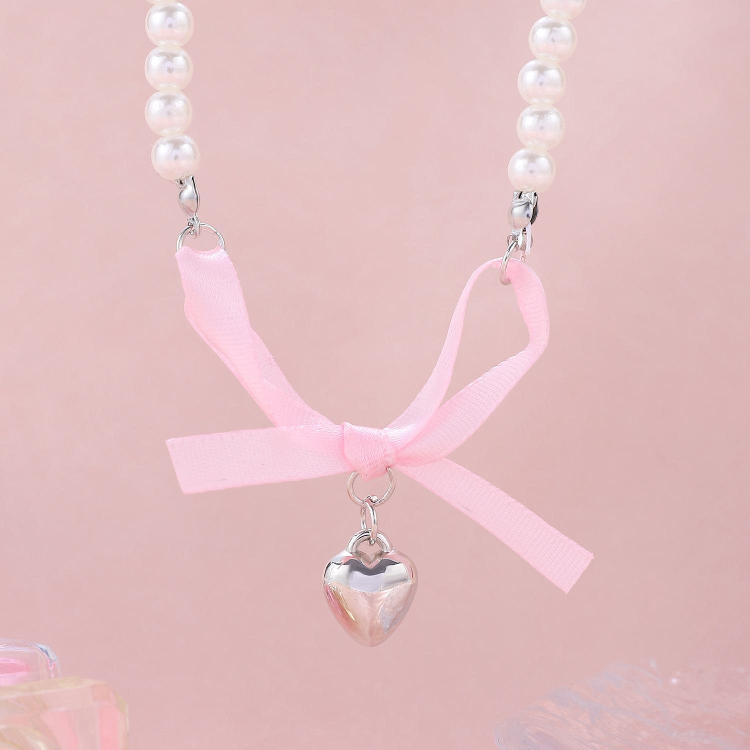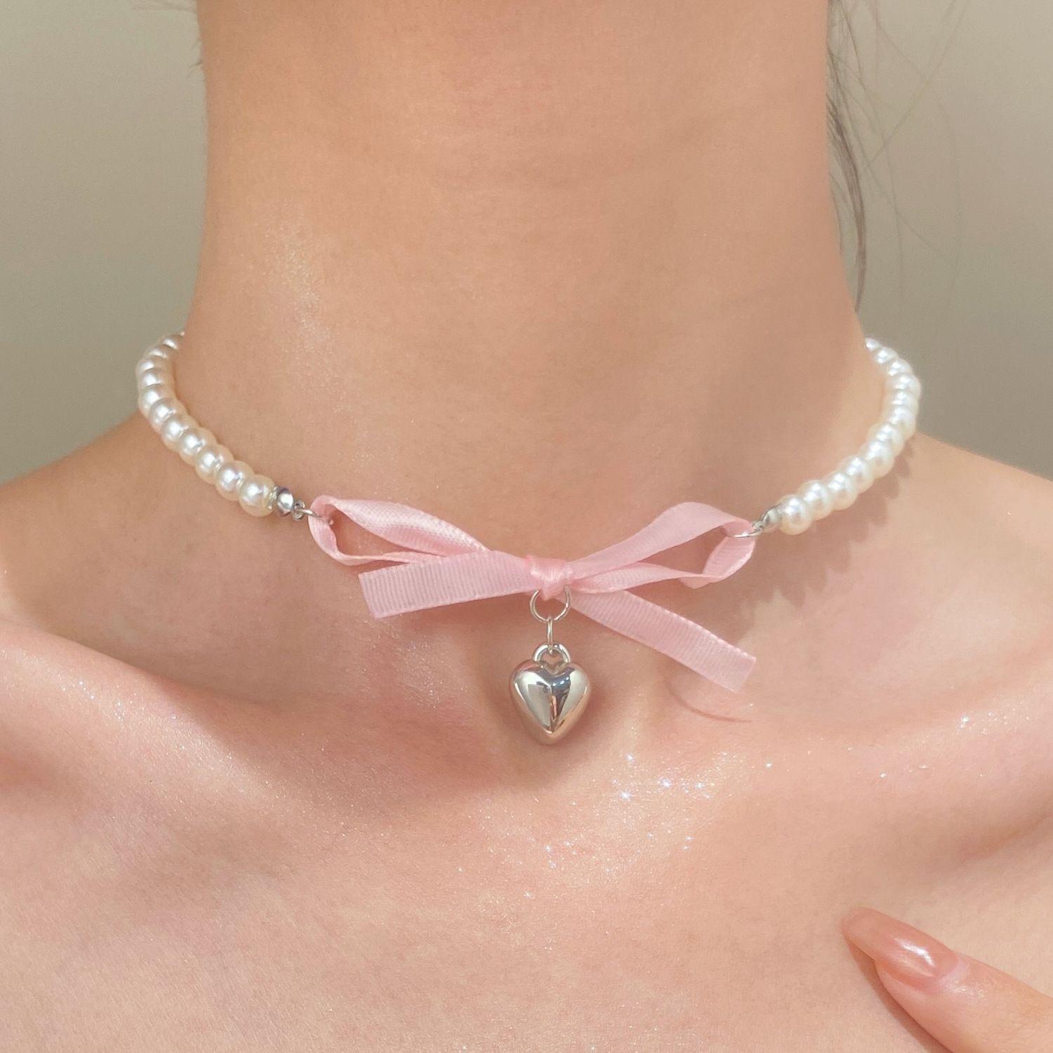 Joyería de Exportación de Venta Caliente Transfronteriza Moda Europea y Americana Versátil Perla Corazón Lazo Rosa Collar Cadena Clavícula