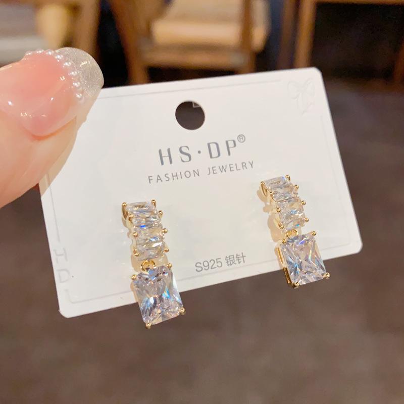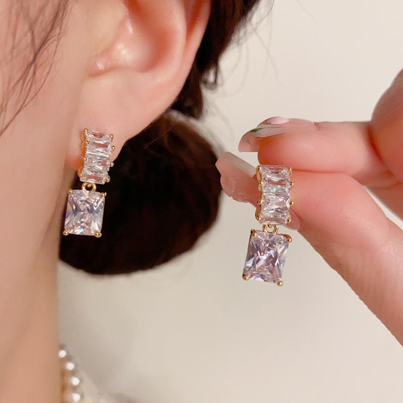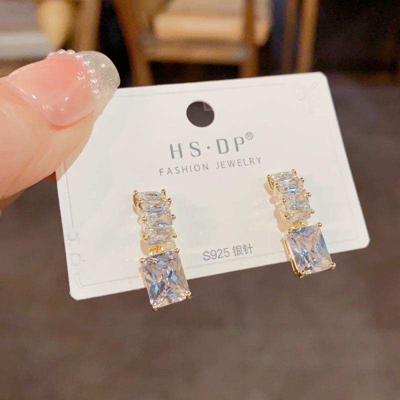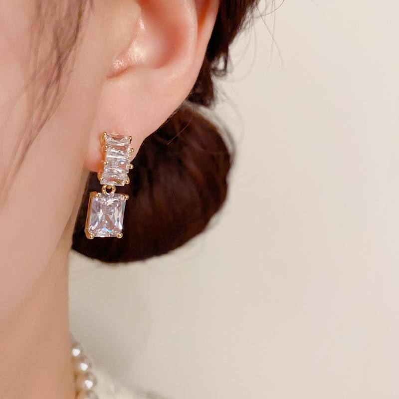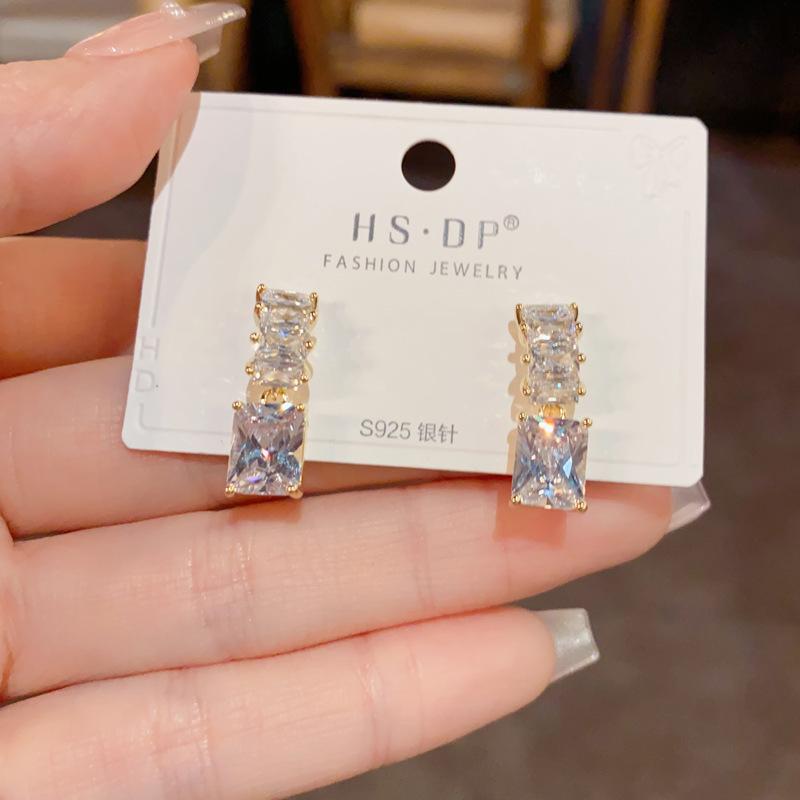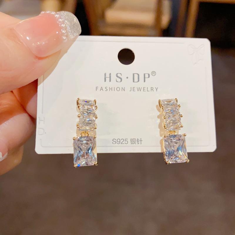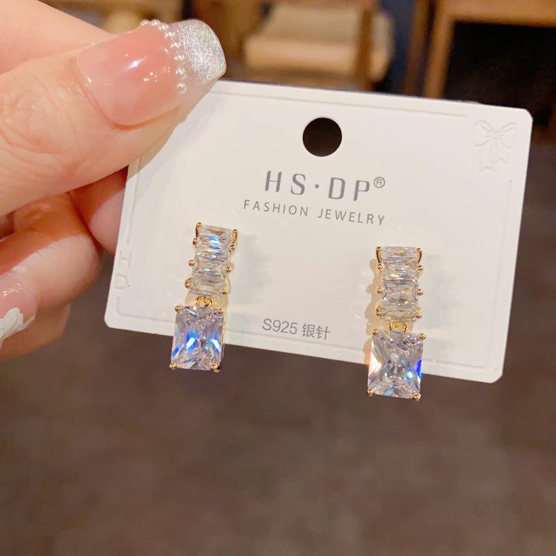 Diseño de moda nicho aretes cuadrados de diamantes para mujer aguja de plata s925 exquisitos de lujo Joker aretes super flash al por mayor