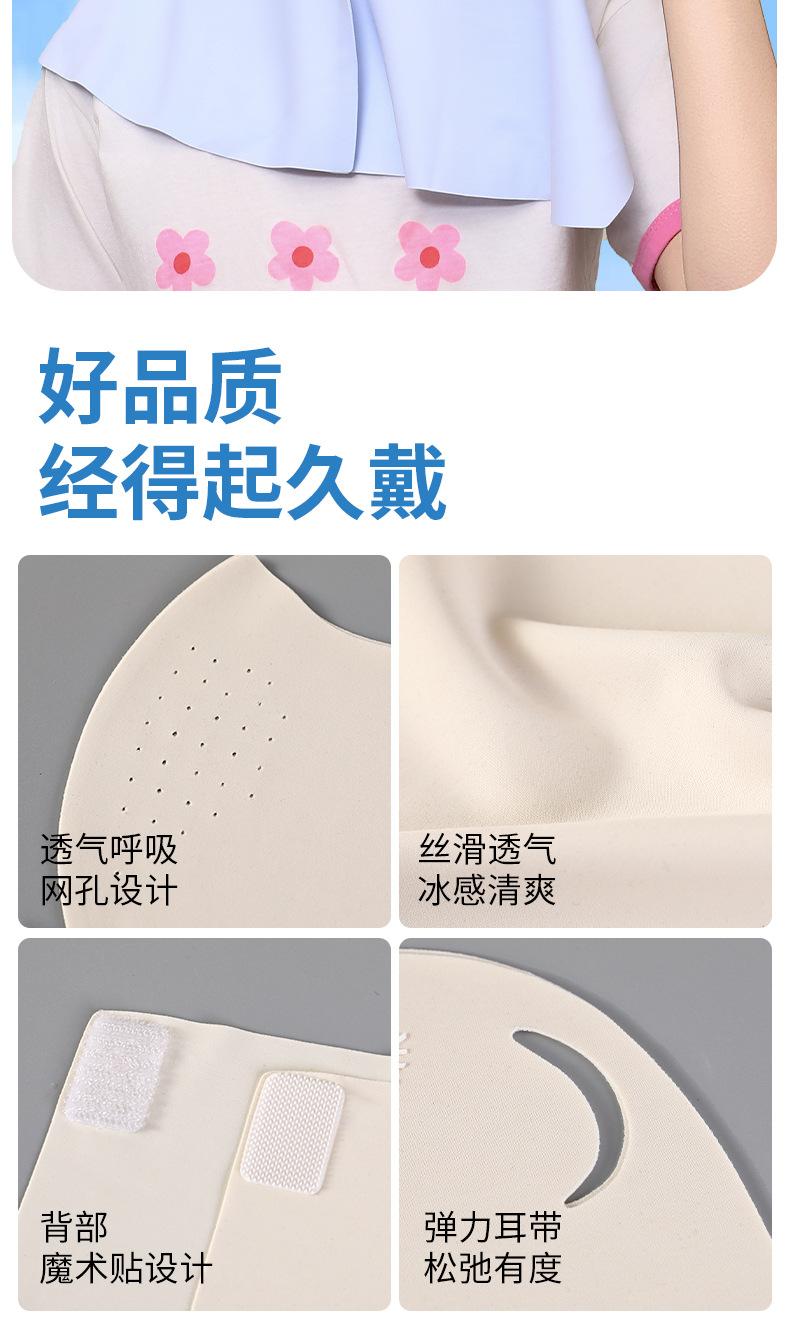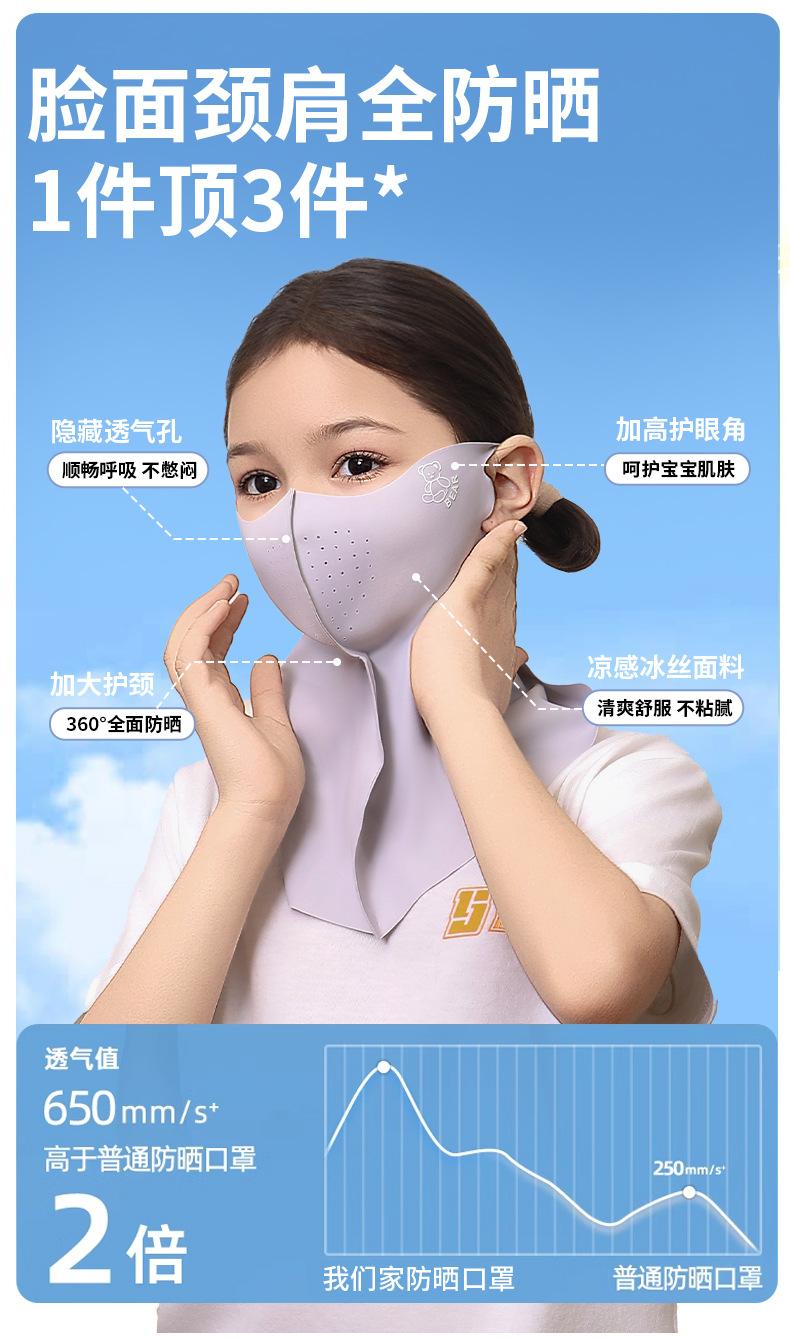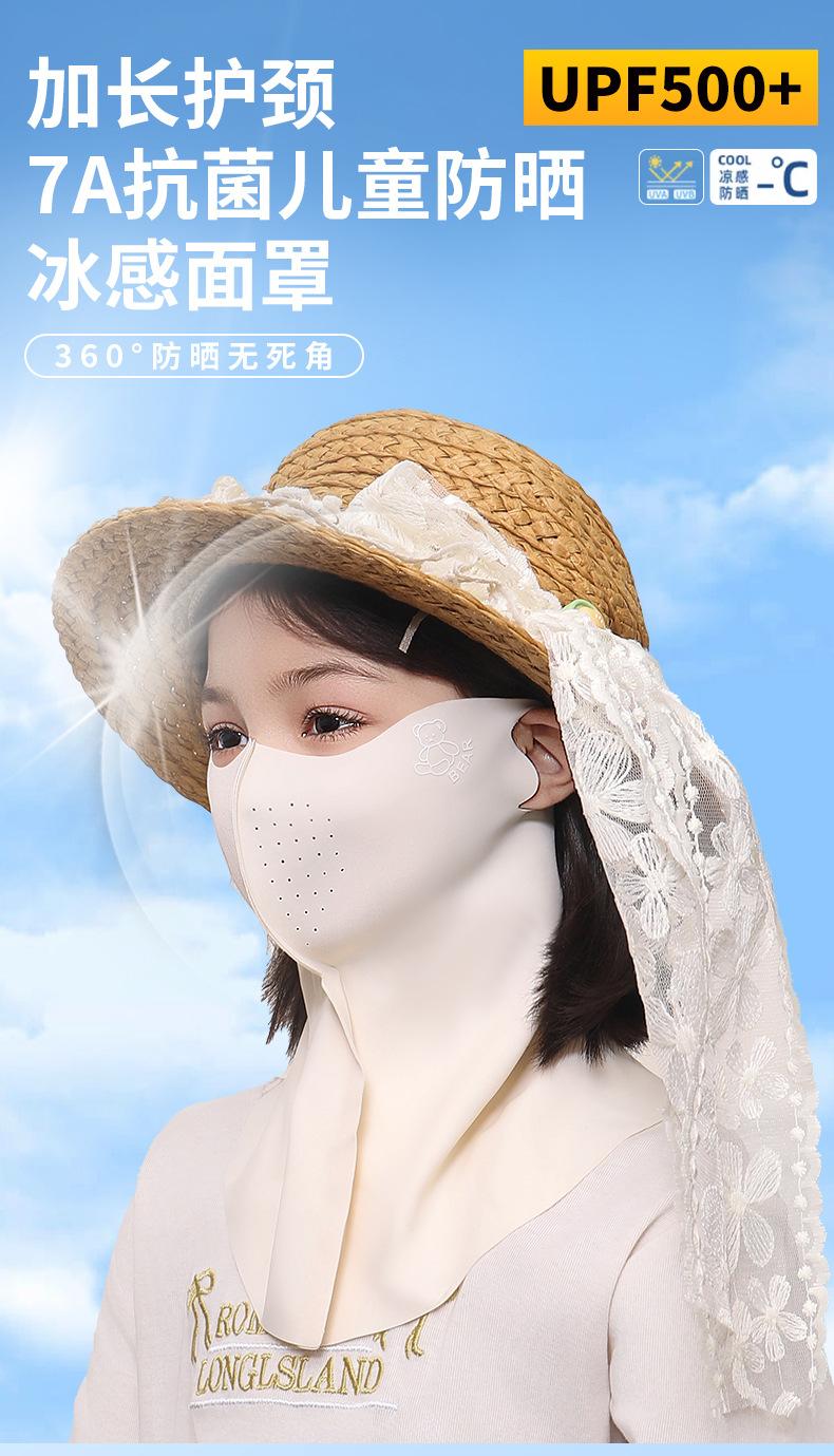 Compra Mascarilla solar infantil con protección facial y cuello UPF500, transpirable, antihuellas, bacteriostática, UV 7A, para mujer al por mayor en Joom.pro