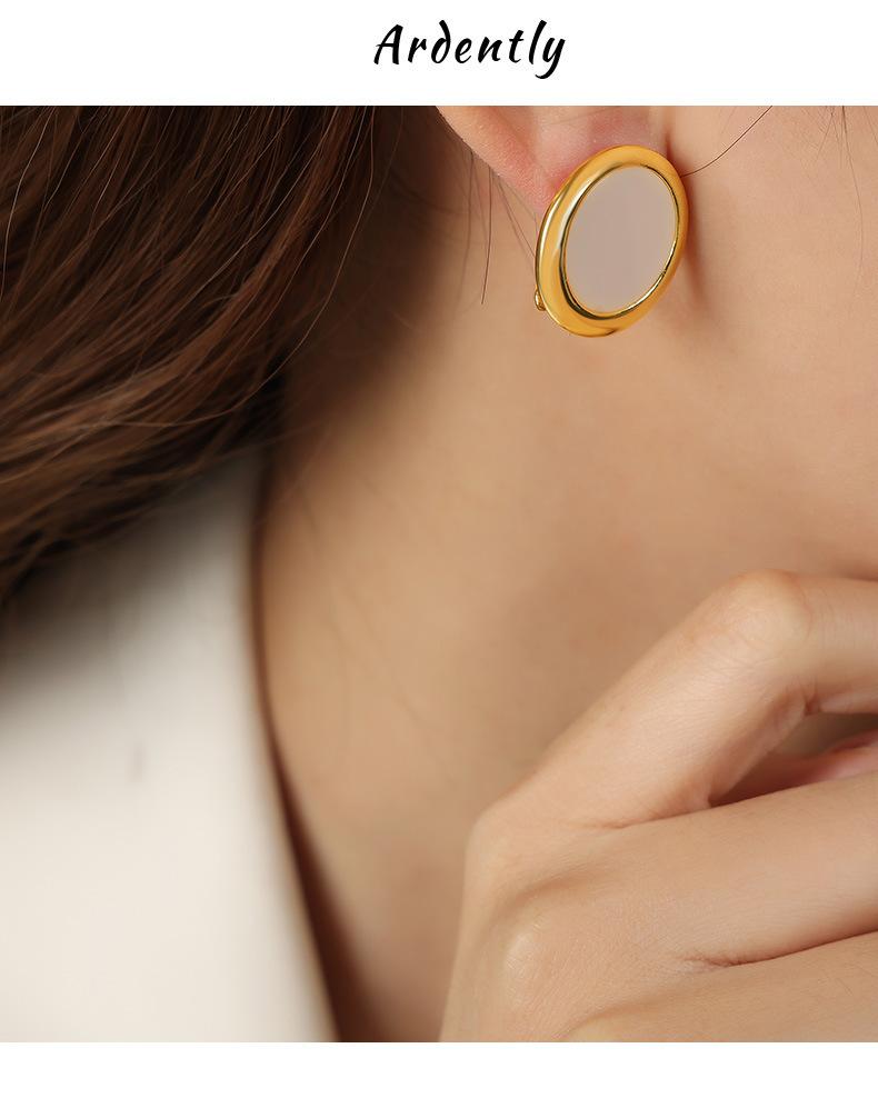 Pendientes de estilo casual francés personalizados con exquisito temperamento, con incrustaciones de disco, imitación de concha de cobre, pendientes de nicho, venta al por mayor