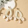 Aretes étnicos europeos y americanos transfronterizos, aretes geométricos de ratán hechos a mano exagerados, aretes tejidos huecos de moda, aretes aretes