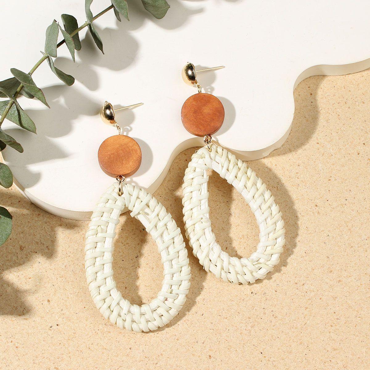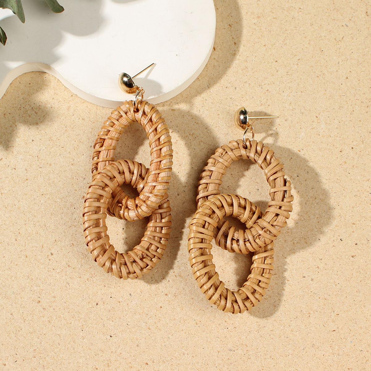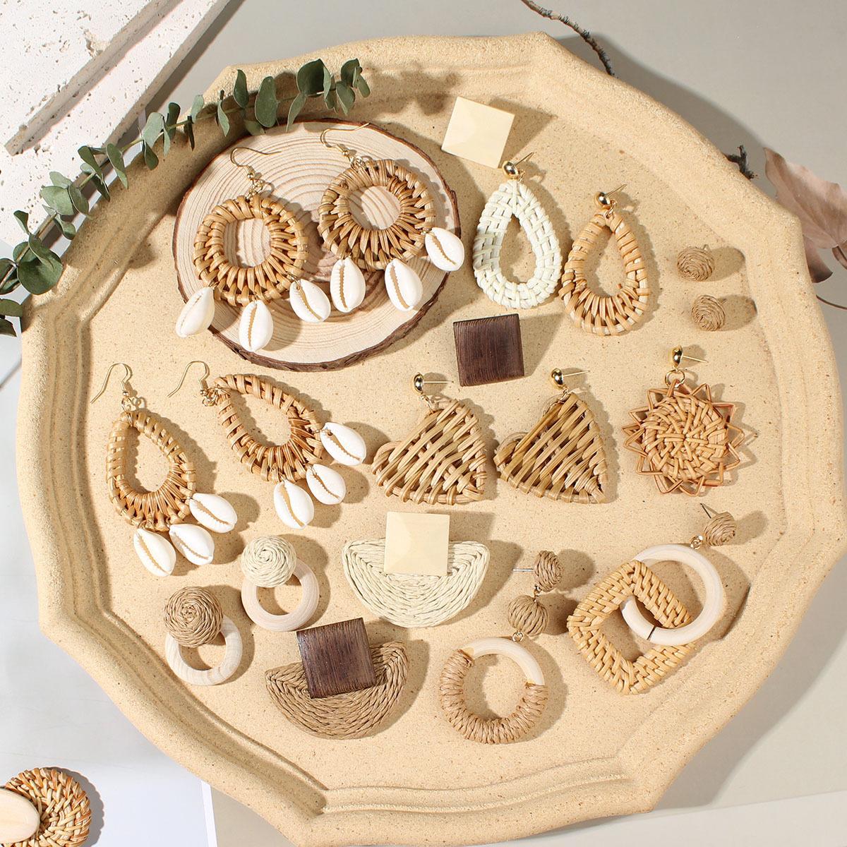 Compra Aretes étnicos europeos y americanos transfronterizos, aretes geométricos de ratán hechos a mano exagerados, aretes tejidos huecos de moda, aretes aretes al por mayor en Joom.pro
