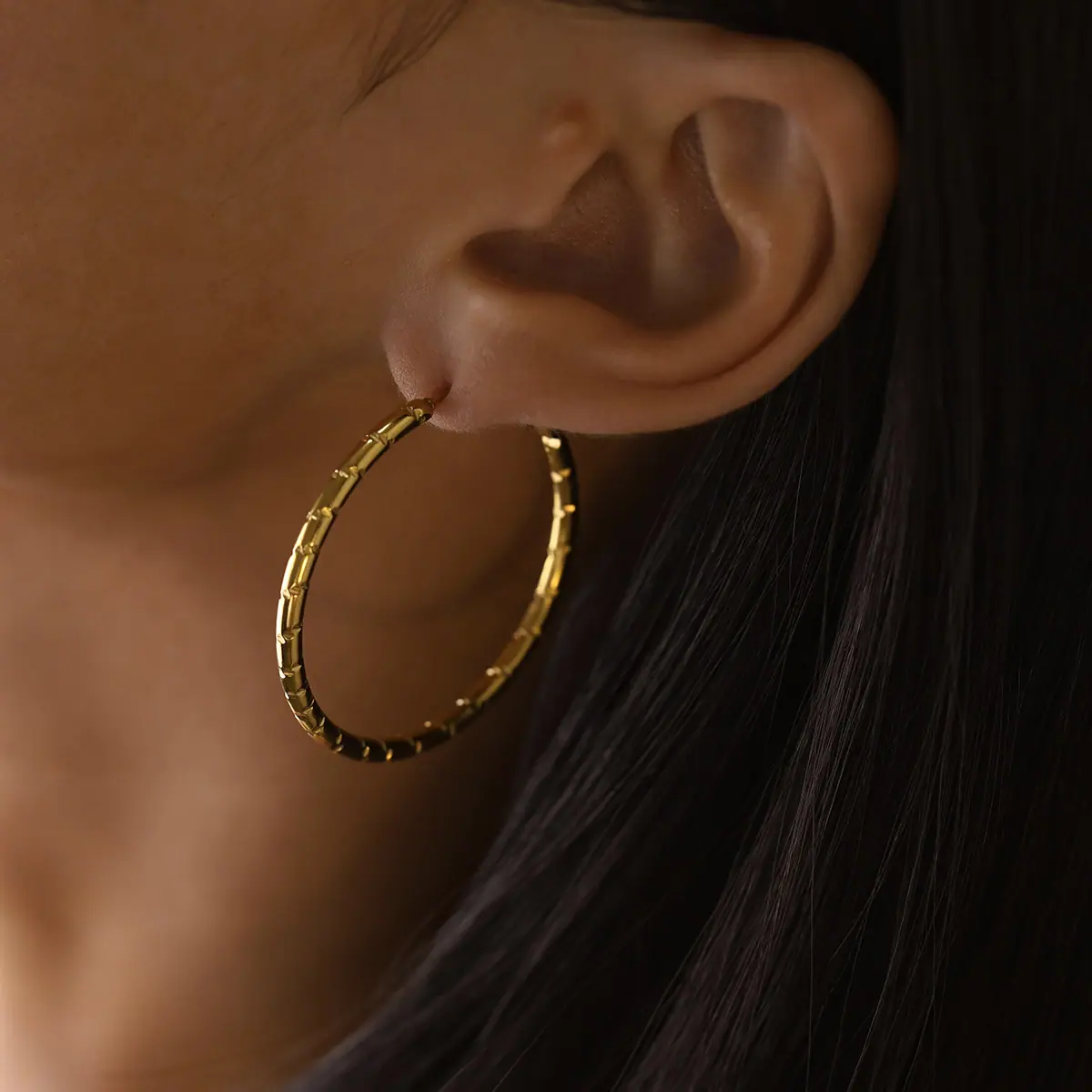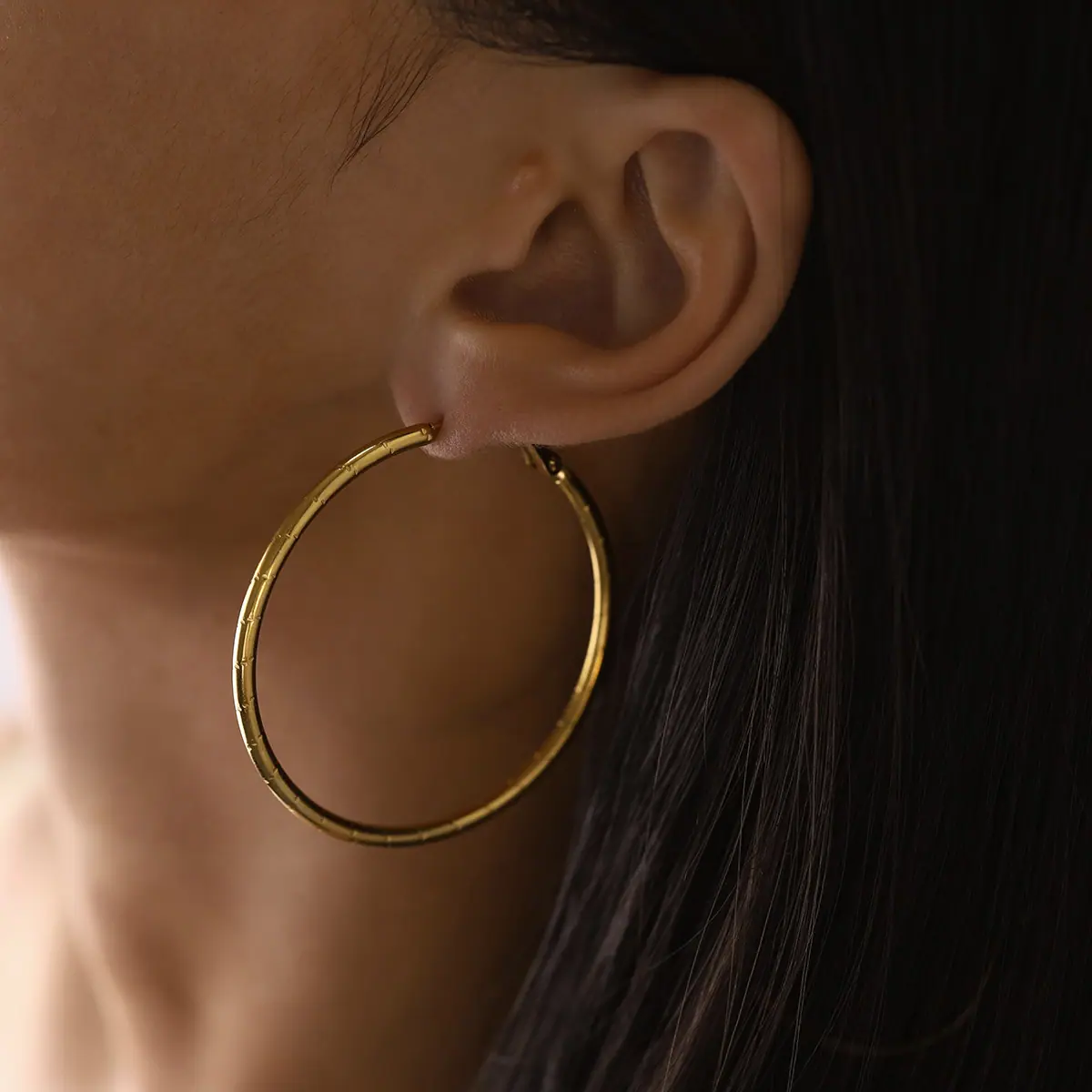 Aretes de Círculo Exagerado Europeo y Americano Avanzados Personalizados de Bambú Metal Aretes de Acero de Titanio de Lujo Ligero Círculo Grande para Mujer en stock Venta al por Mayor