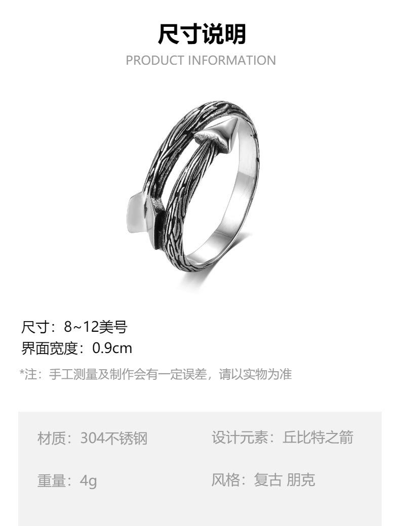 Anillo punk transfronterizo al por mayor Moda europea y americana personalidad Flecha de amor de Cupido hombres y mujeres anillo de acero inoxidable hombres