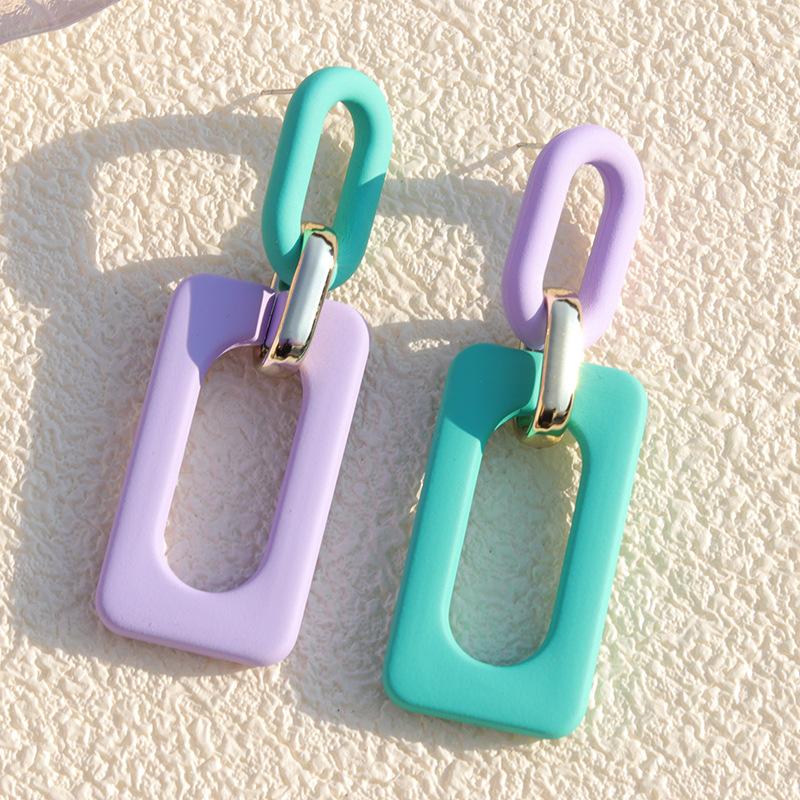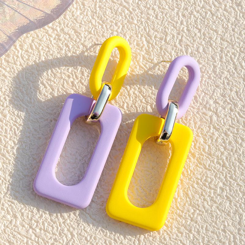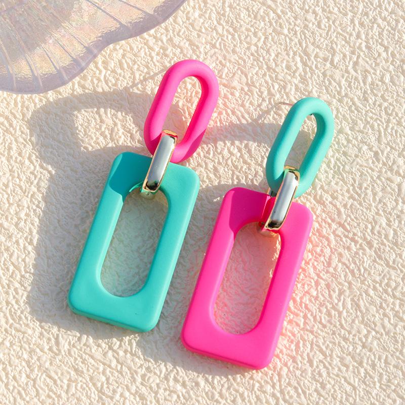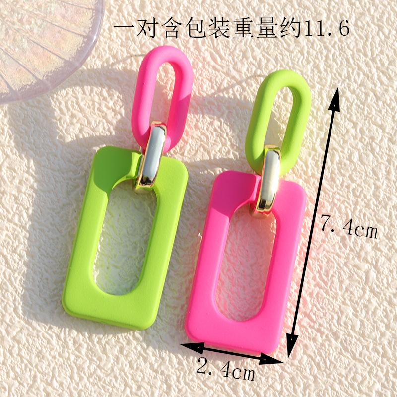 Nuevos Pendientes Rectangulares Acrílicos Europeos y Americanos Color Hueco Contraste Estilo Vintage Vacacional Nicho Gota para la Oreja Joyería para la Oreja para Mujer