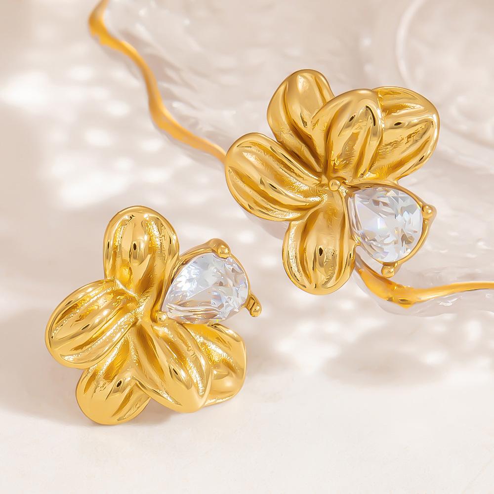 Compra Aretes de Flores Nuevos Aretes Únicos Diseño Nicho Pequeños y Exquisitos de Alta Gama Aretes de Oro de 18K para Mujer al por mayor en Joom.pro
