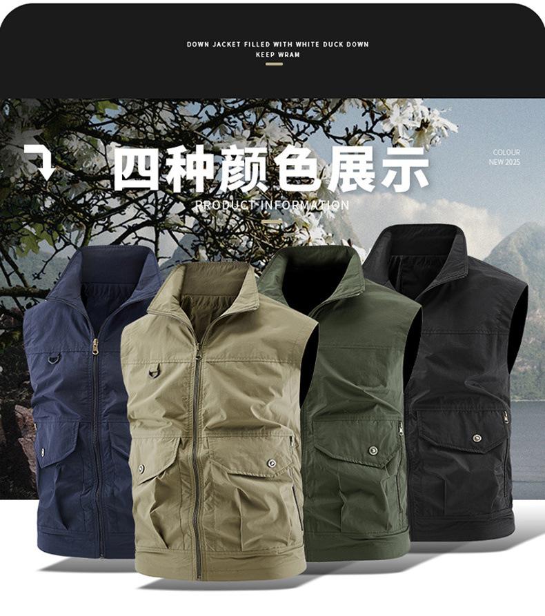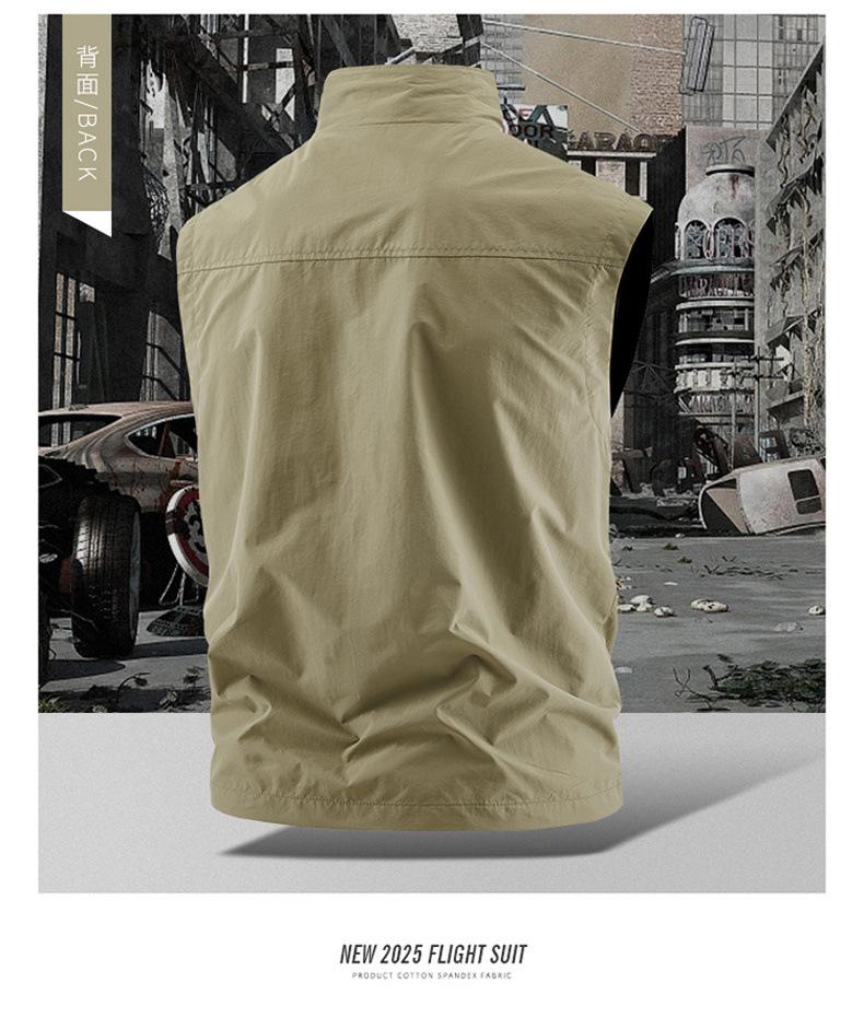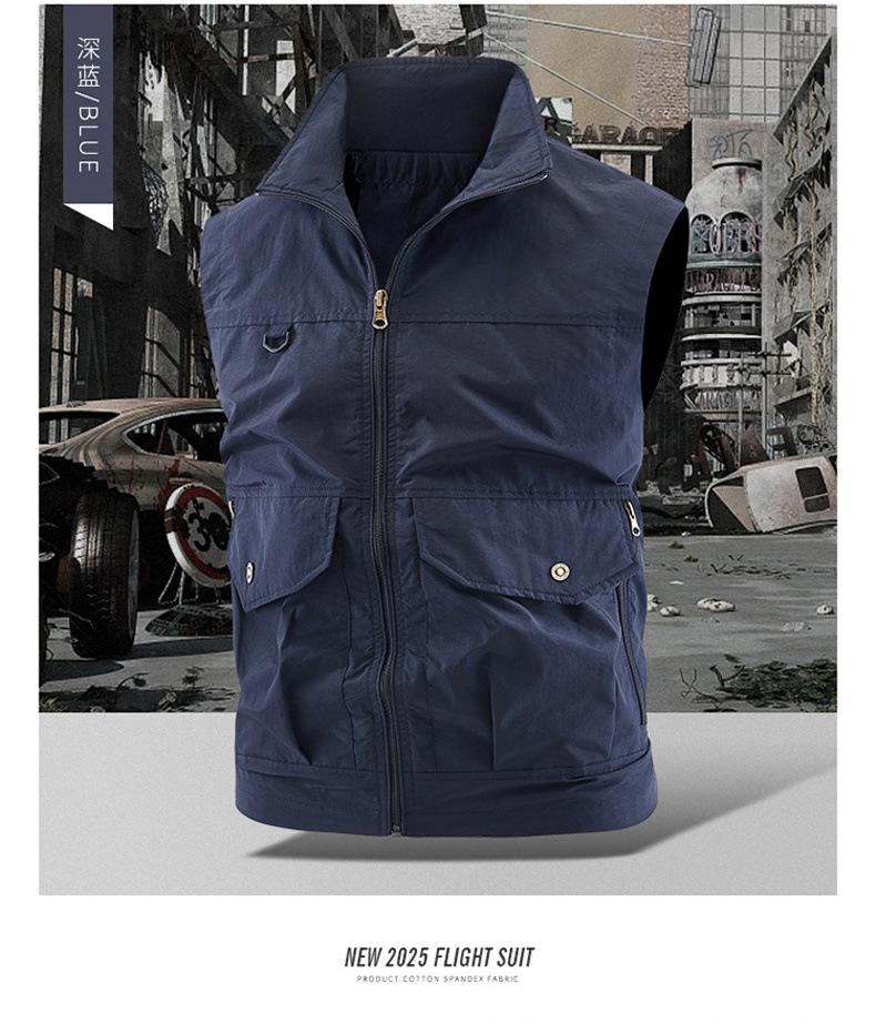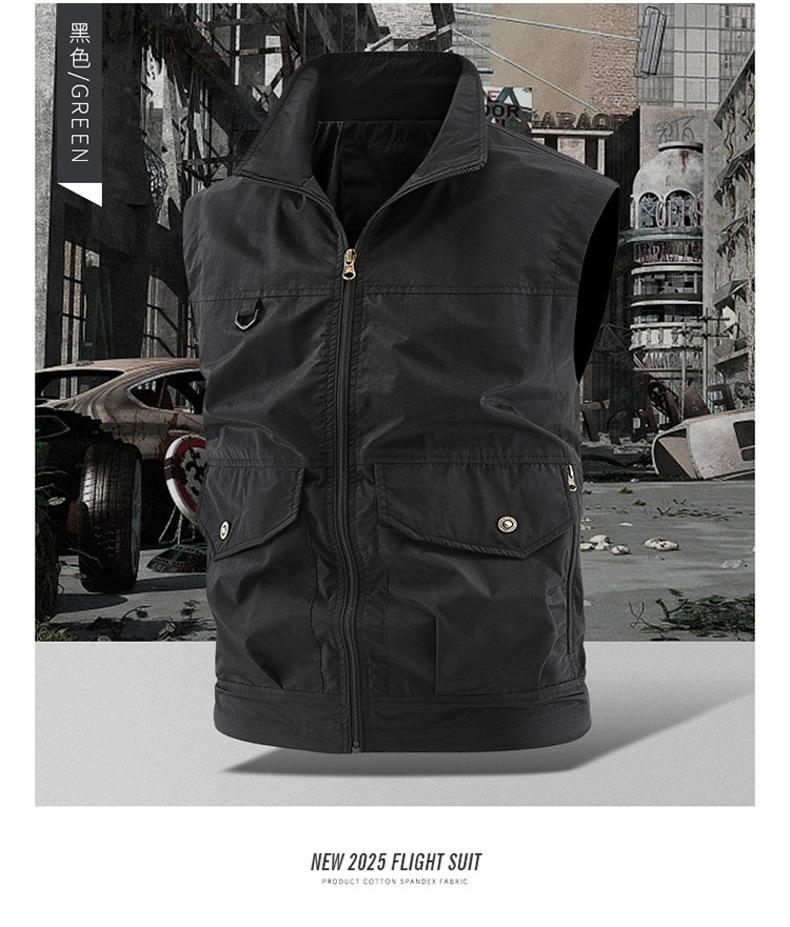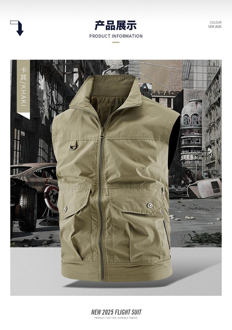 Chaleco multibolsillos para exteriores, nuevo, transfronterizo, para hombres jóvenes y de mediana edad, holgado, informal, para trabajo, 2025