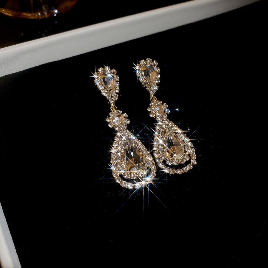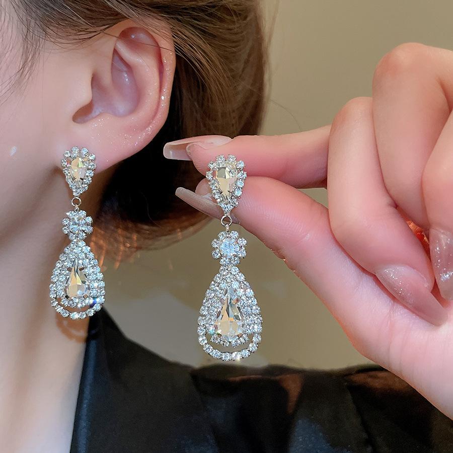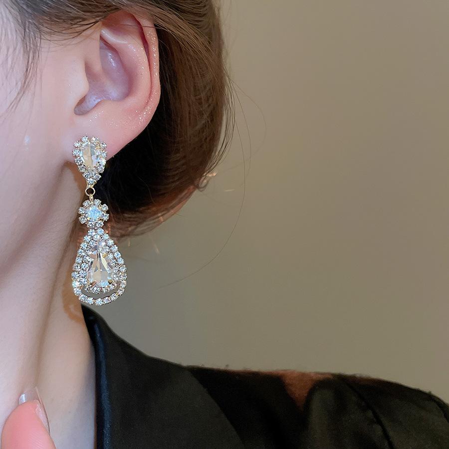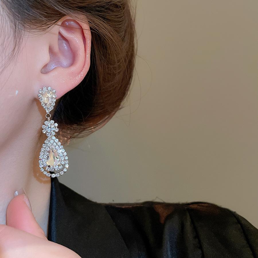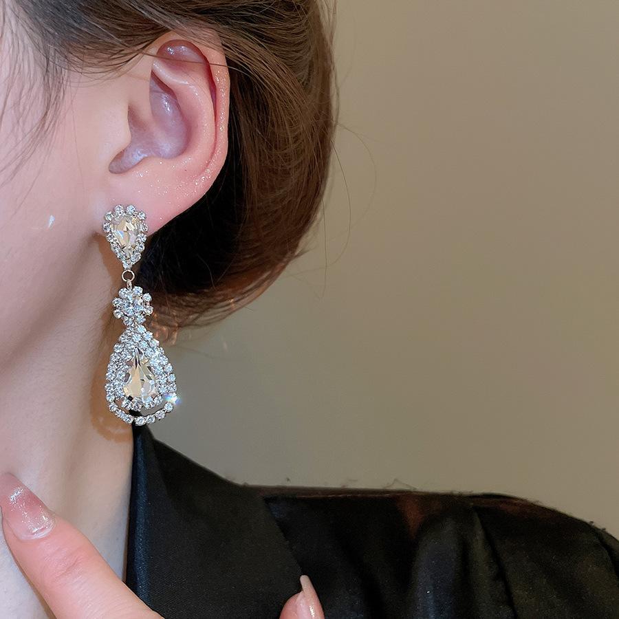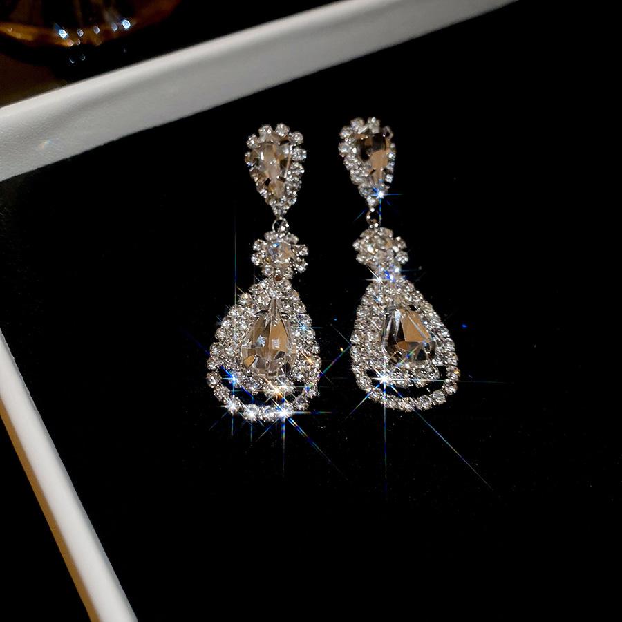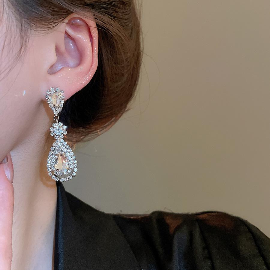Pendientes de borla con forma de gota de agua y diamante con aguja de plata, estilo retro, de lujo, ligeros, elegantes y de alta gama, con diseño de nicho.