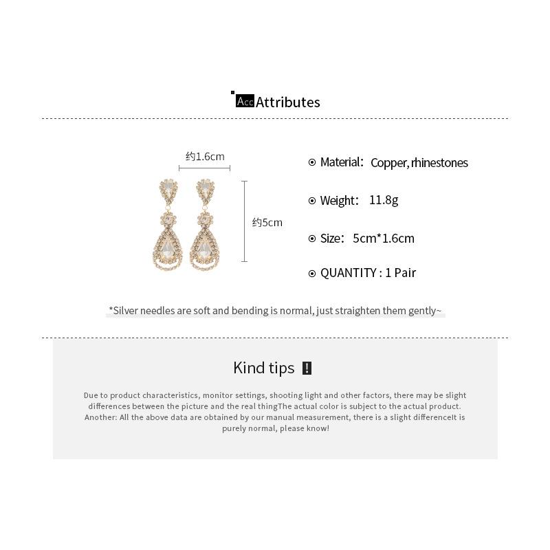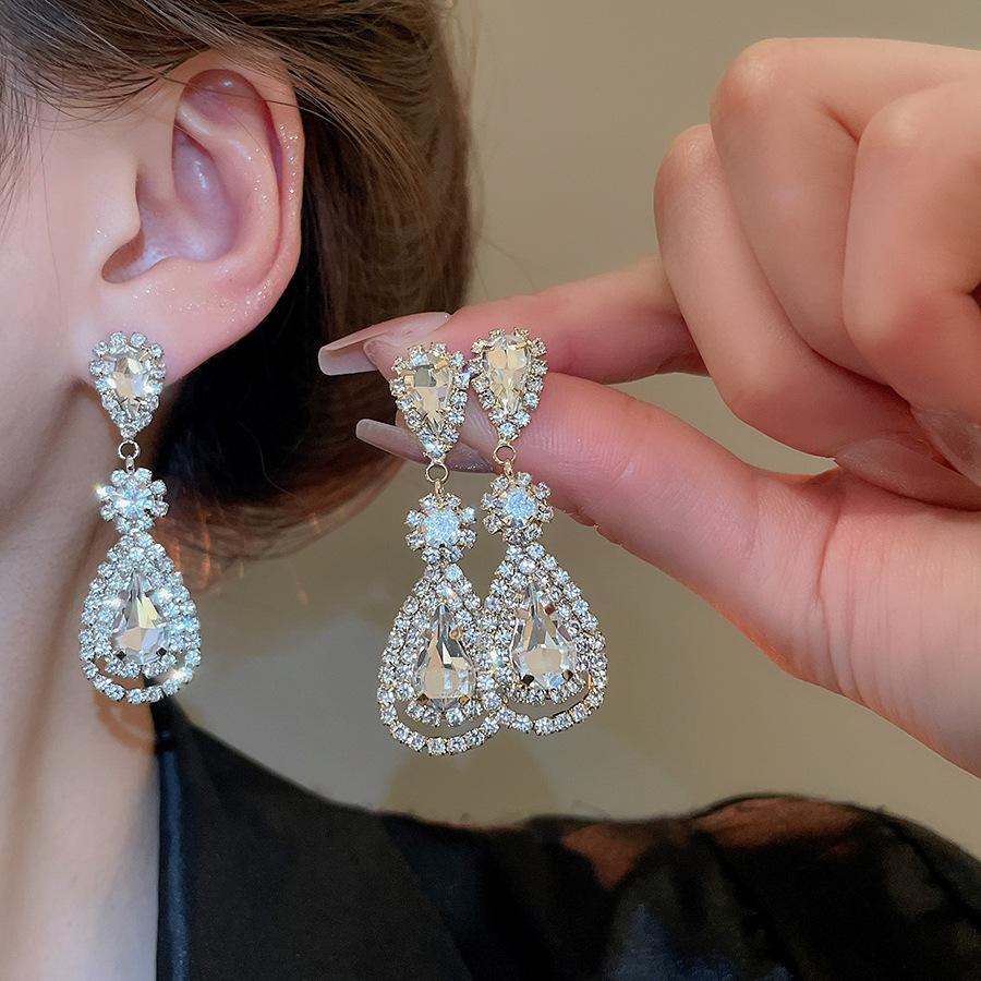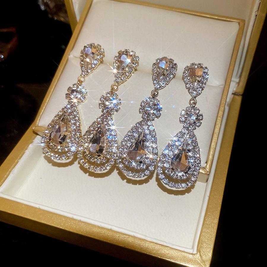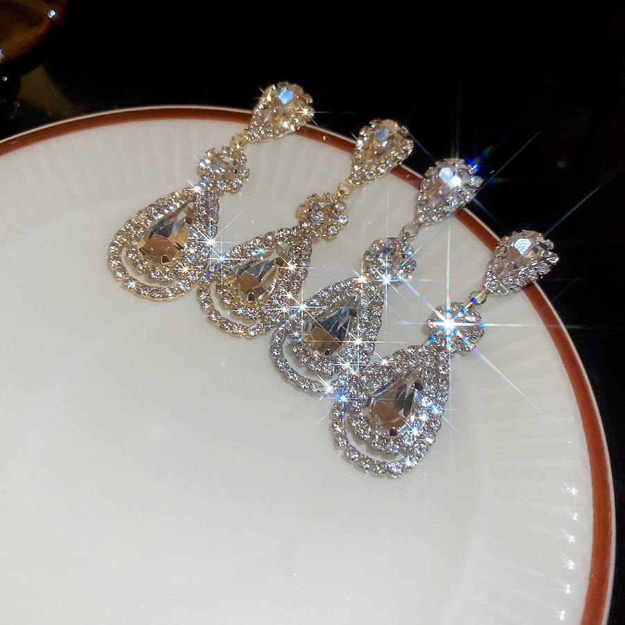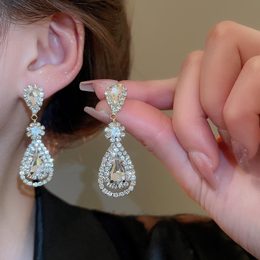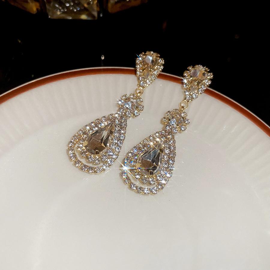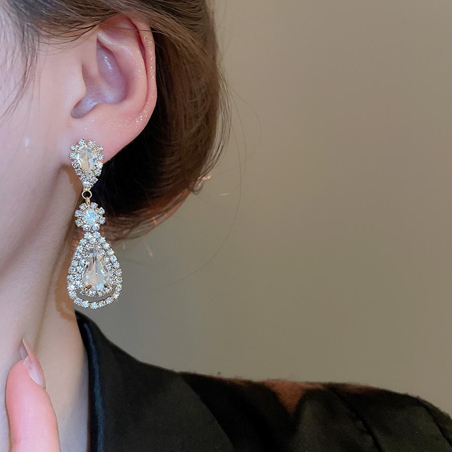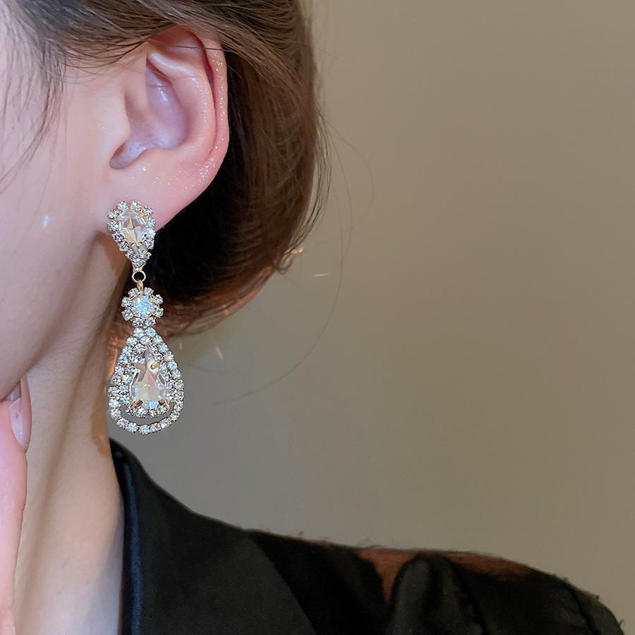 Pendientes de borla con forma de gota de agua y diamante con aguja de plata, estilo retro, de lujo, ligeros, elegantes y de alta gama, con diseño de nicho.