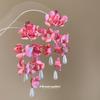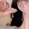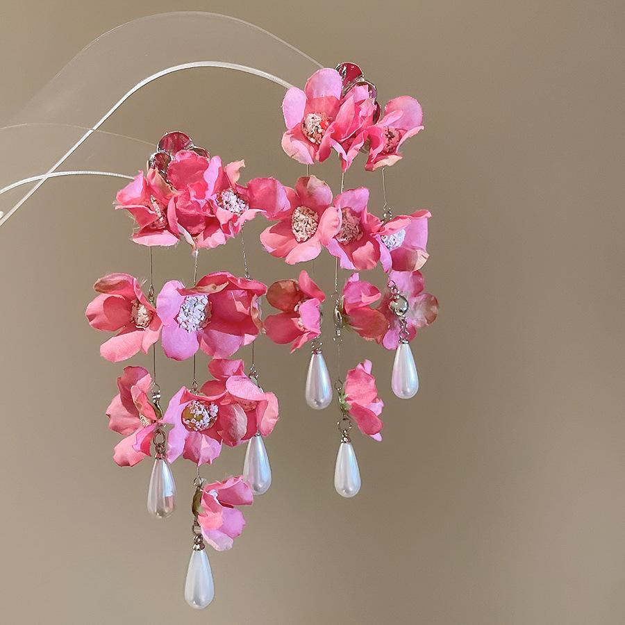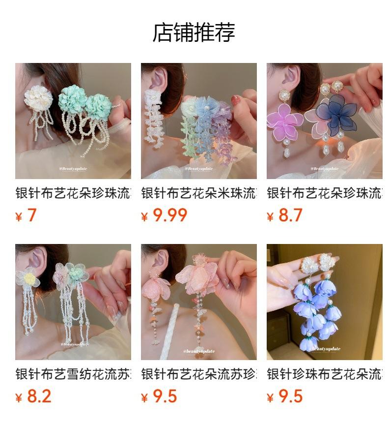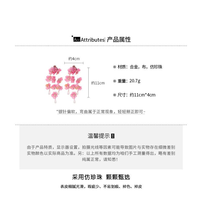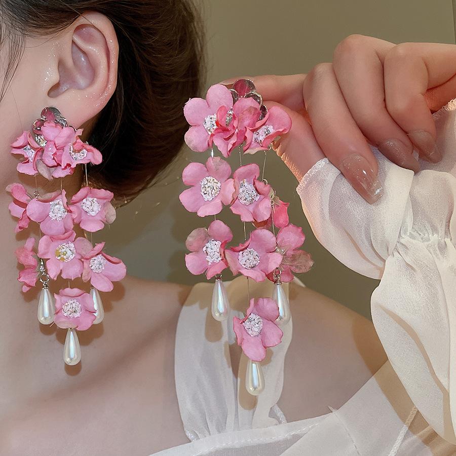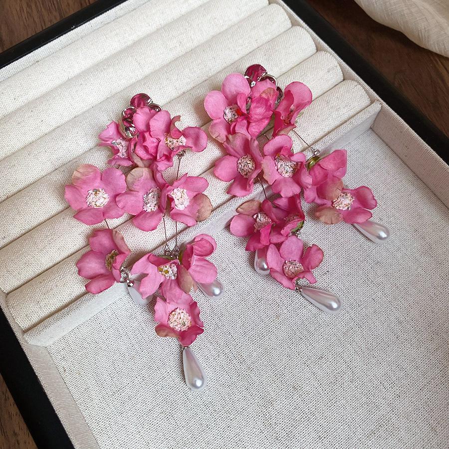 Pendientes de Borla de Flor de Tela Aguja de Plata Perla Pendientes de Temperamento Dulce y Suave Pendientes de Sentido Avanzado Sentido del Diseño Nicho