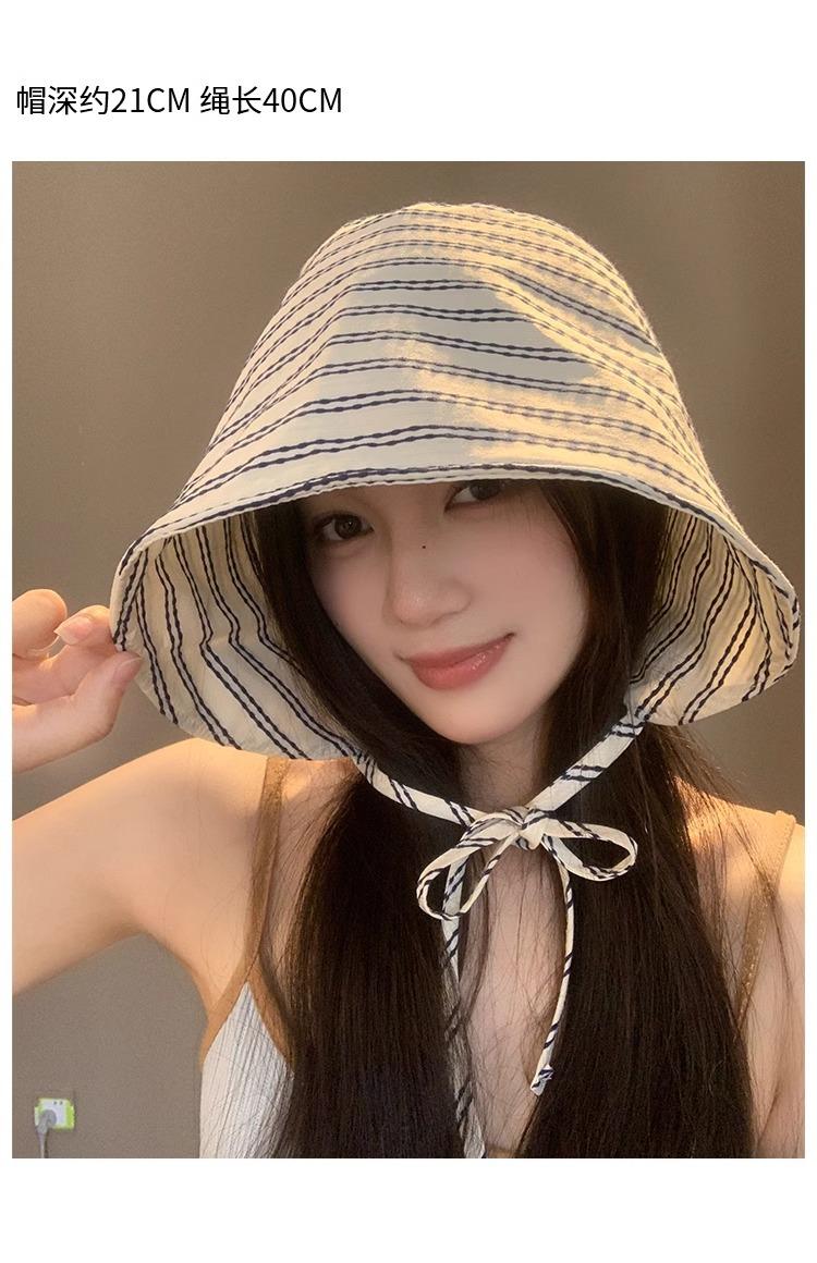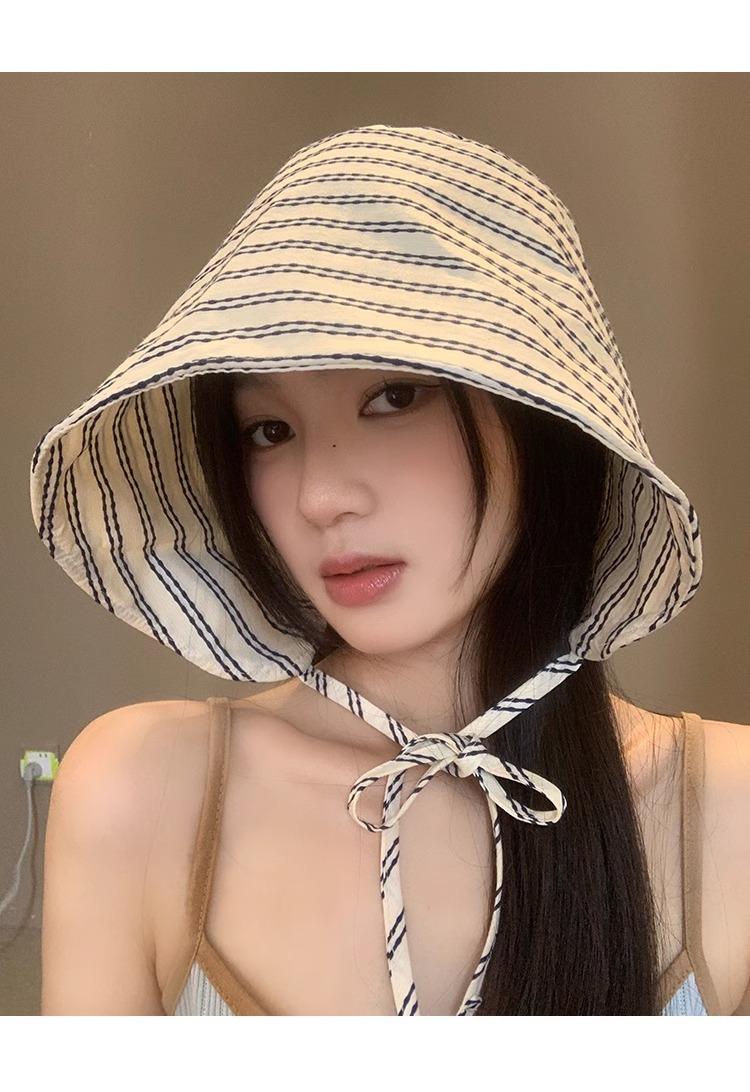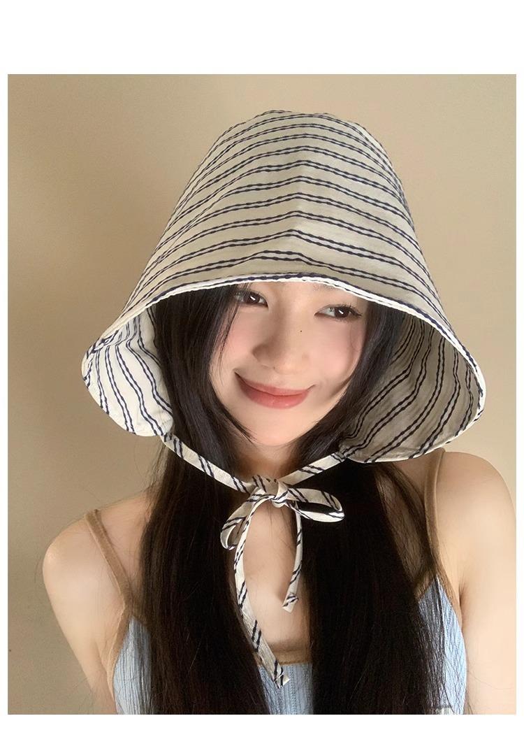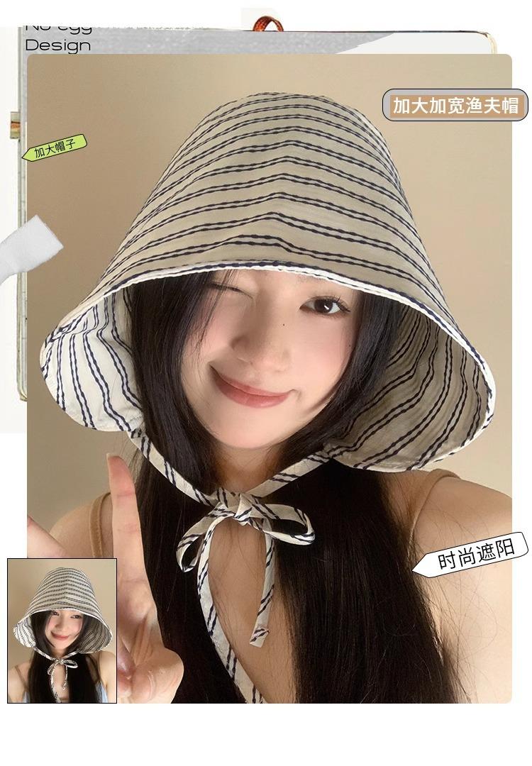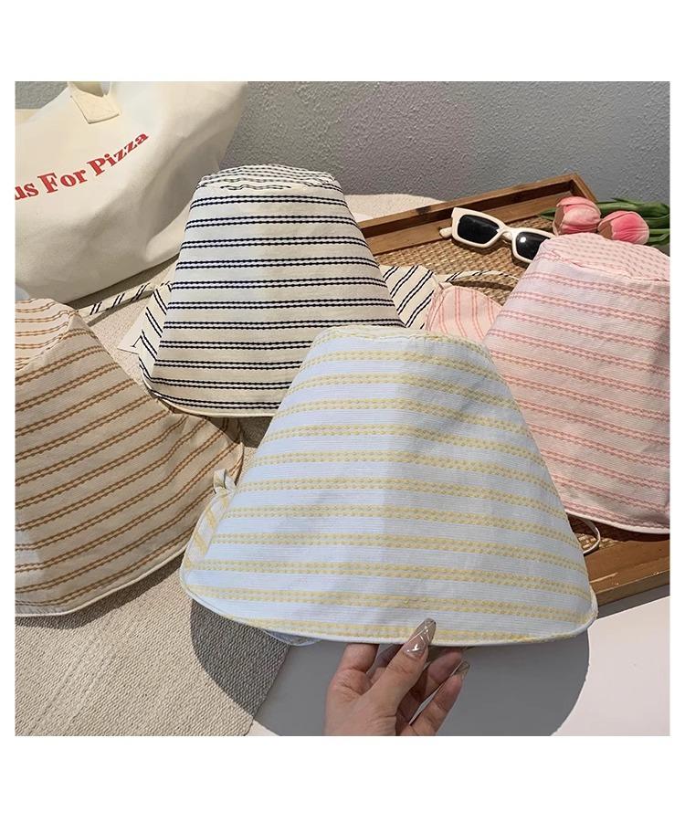 Sombrero de Pescador Envolvente de Ala Ancha a Rayas Sombrero de Mujer Verano Protección UV Moda Sombrilla Versátil Sombrero de Protección Solar