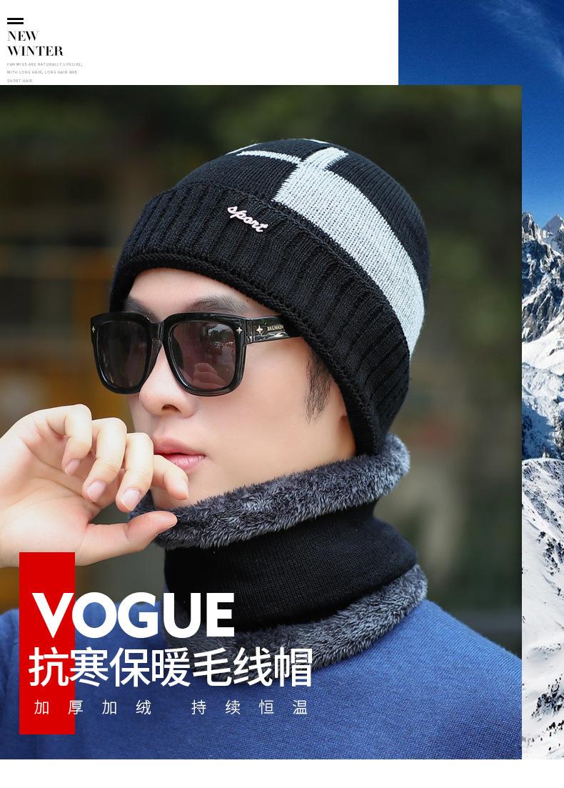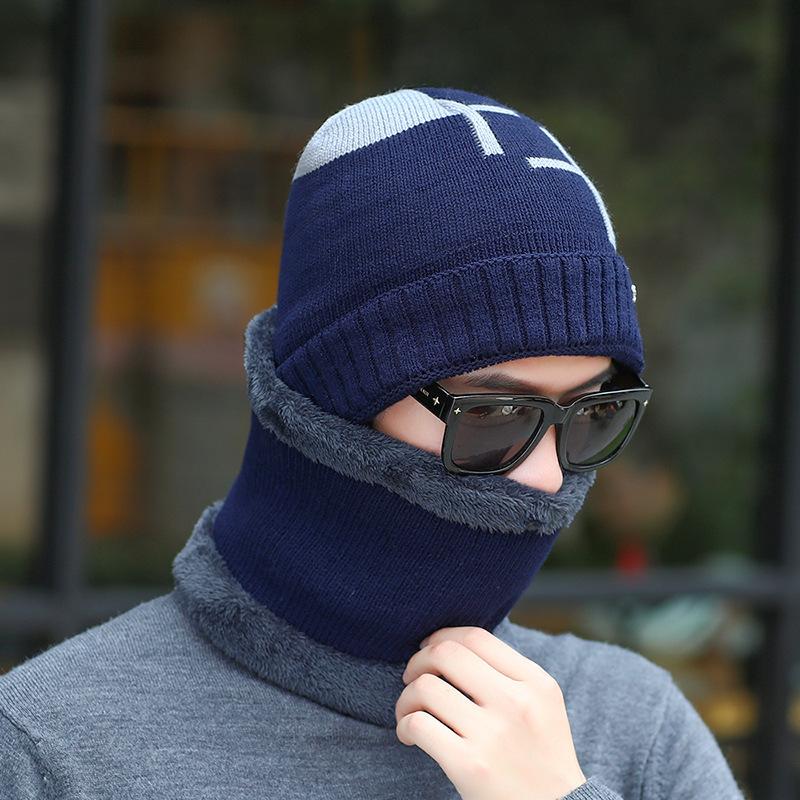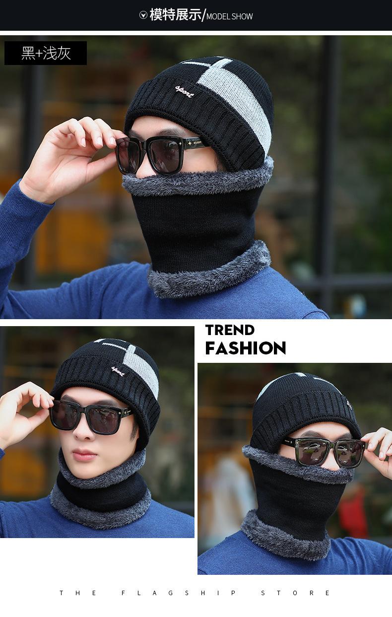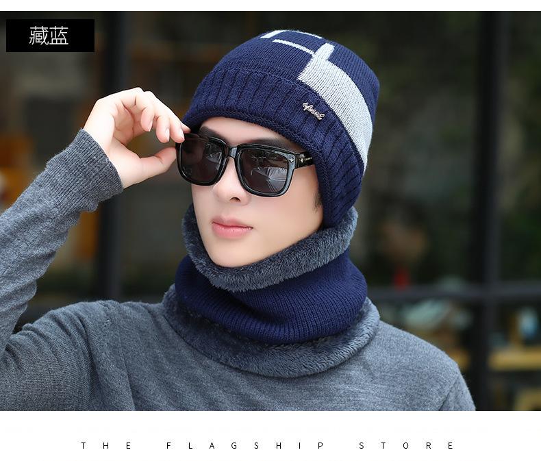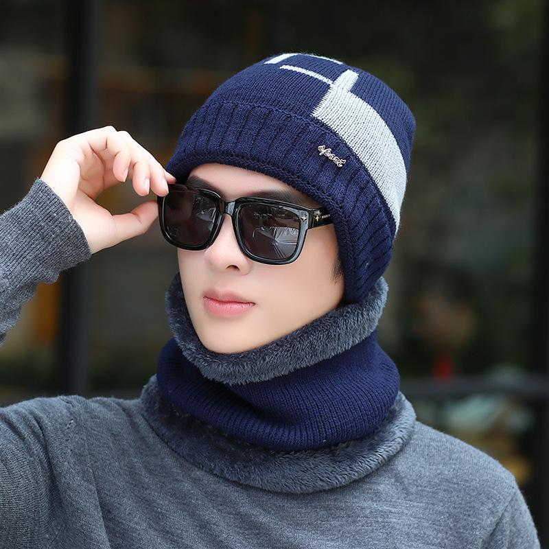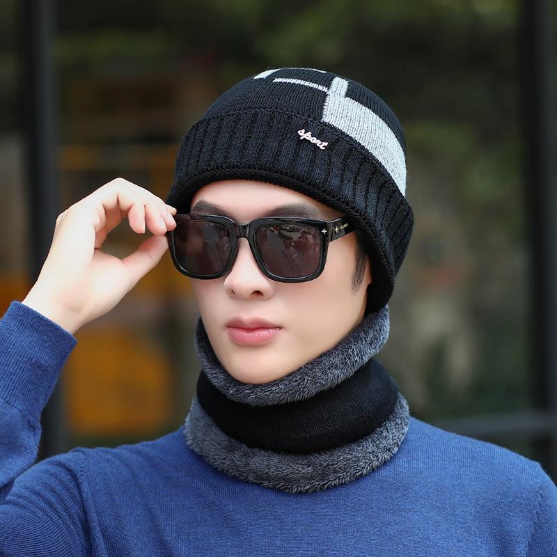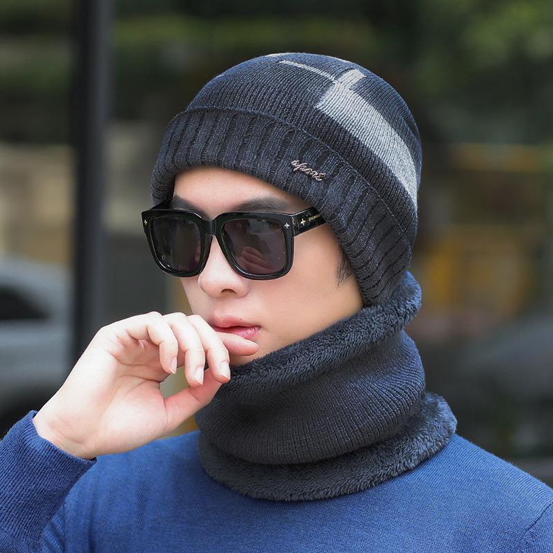 Conjunto de dos piezas de gorro de invierno para hombre, cálido gorro de punto con forro polar, de lana gruesa resistente al frío, estilo jersey de moda.