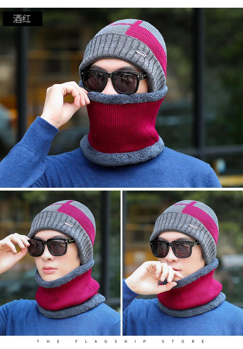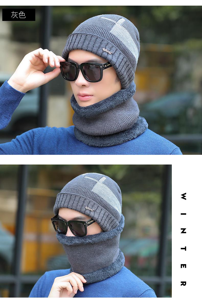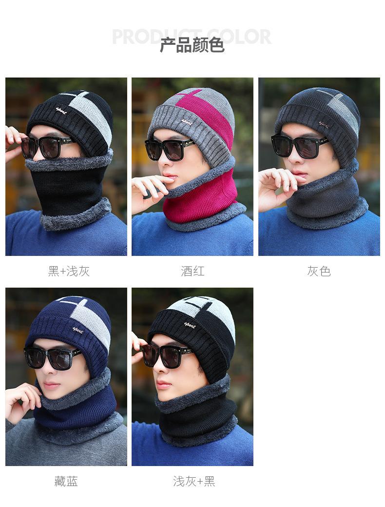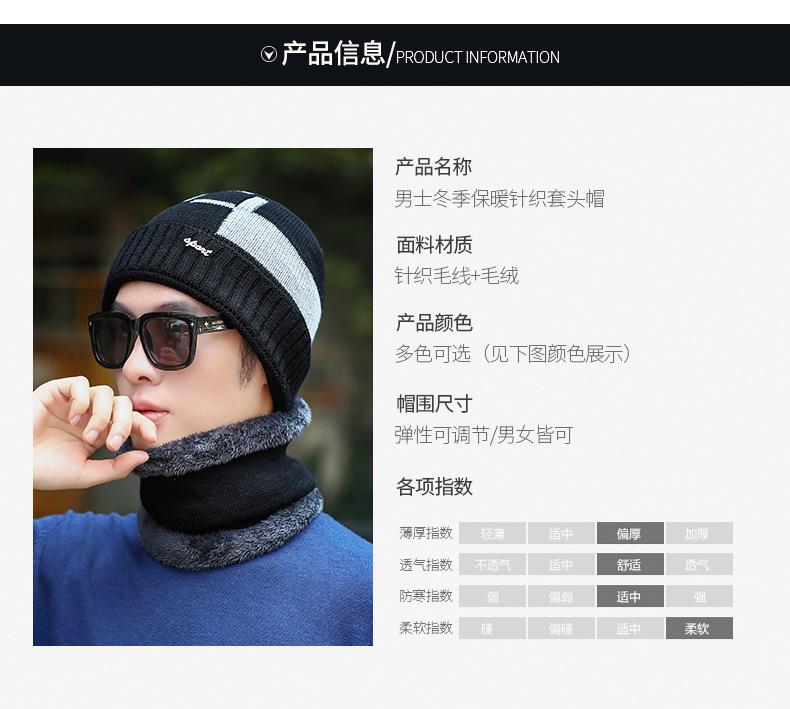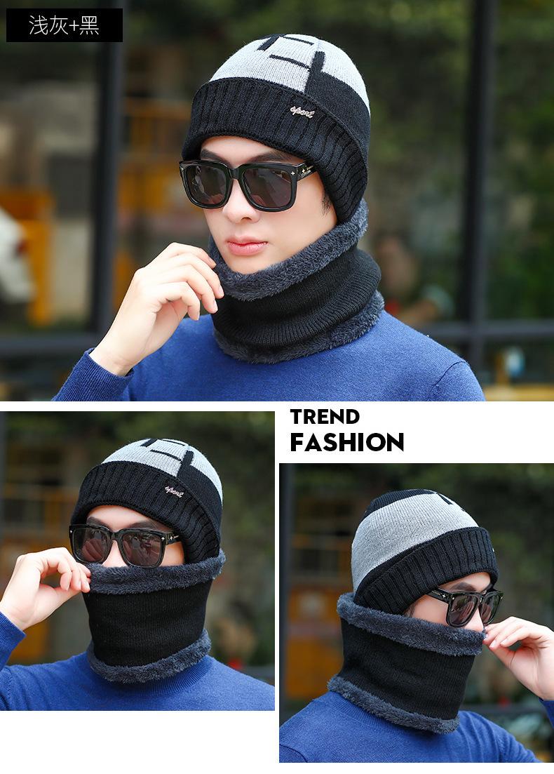 Conjunto de dos piezas de gorro de invierno para hombre, cálido gorro de punto con forro polar, de lana gruesa resistente al frío, estilo jersey de moda.