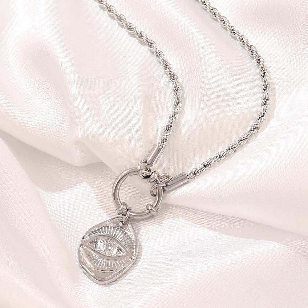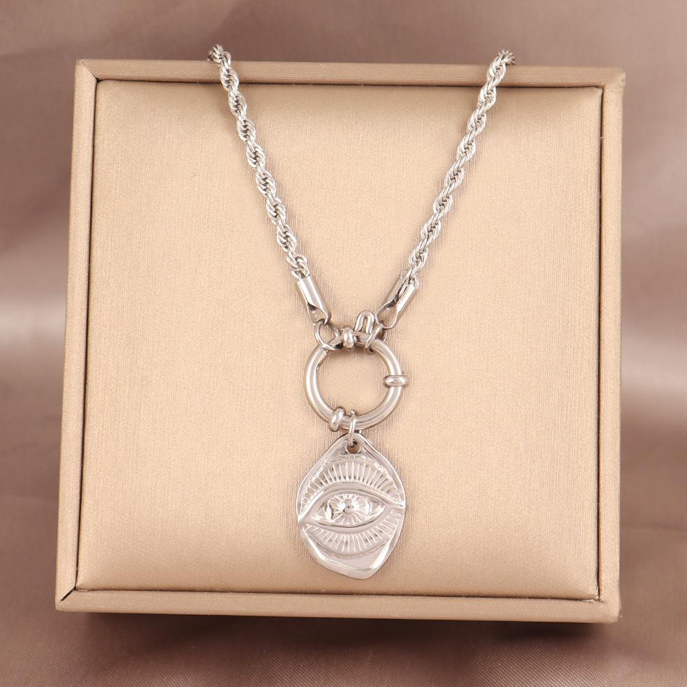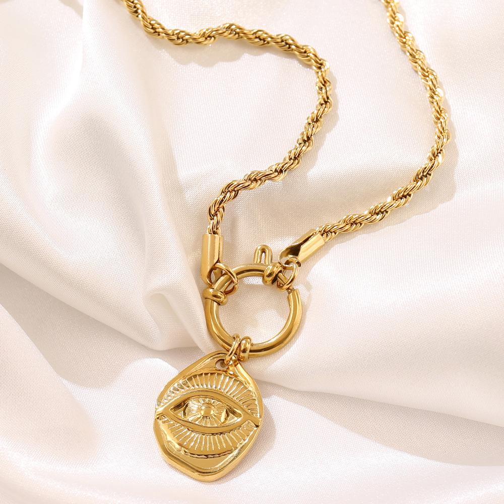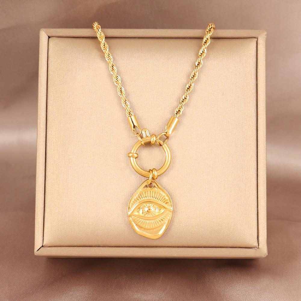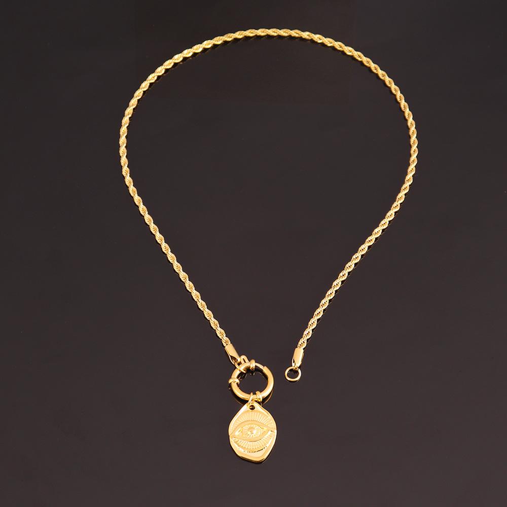 Collar con colgante de ojo de nicho europeo y americano, estilo retro, chapado en oro de 18 quilates, de acero inoxidable, con cadena torcida, joyería para mujer.
