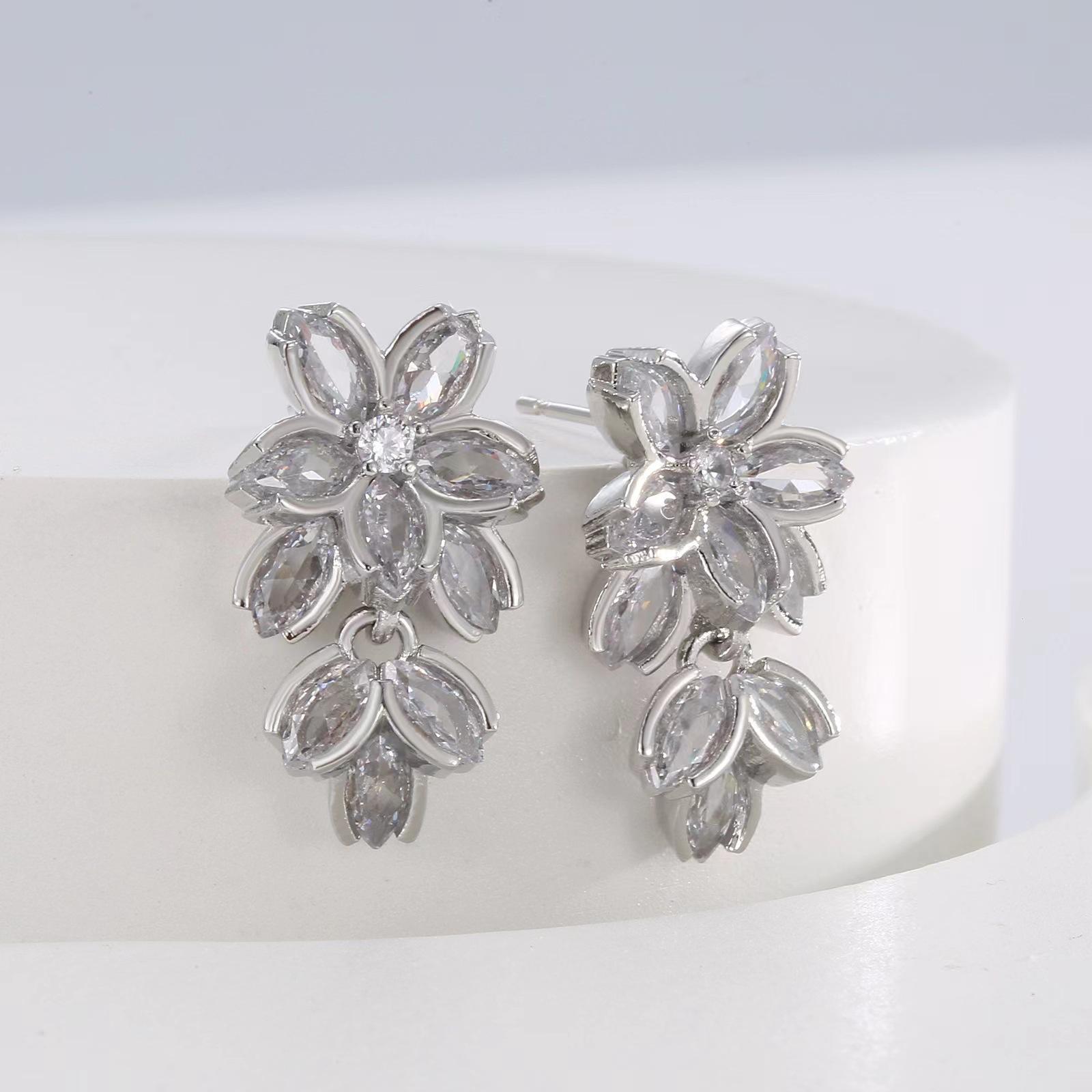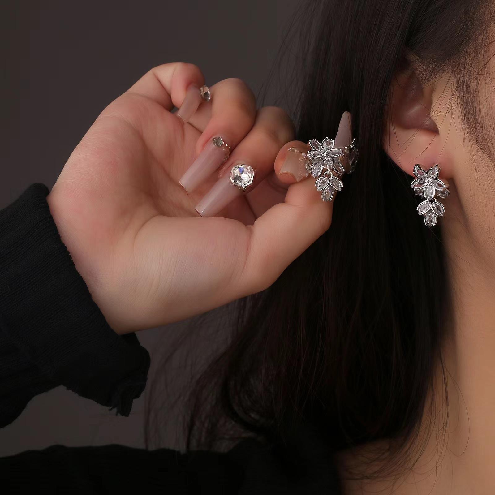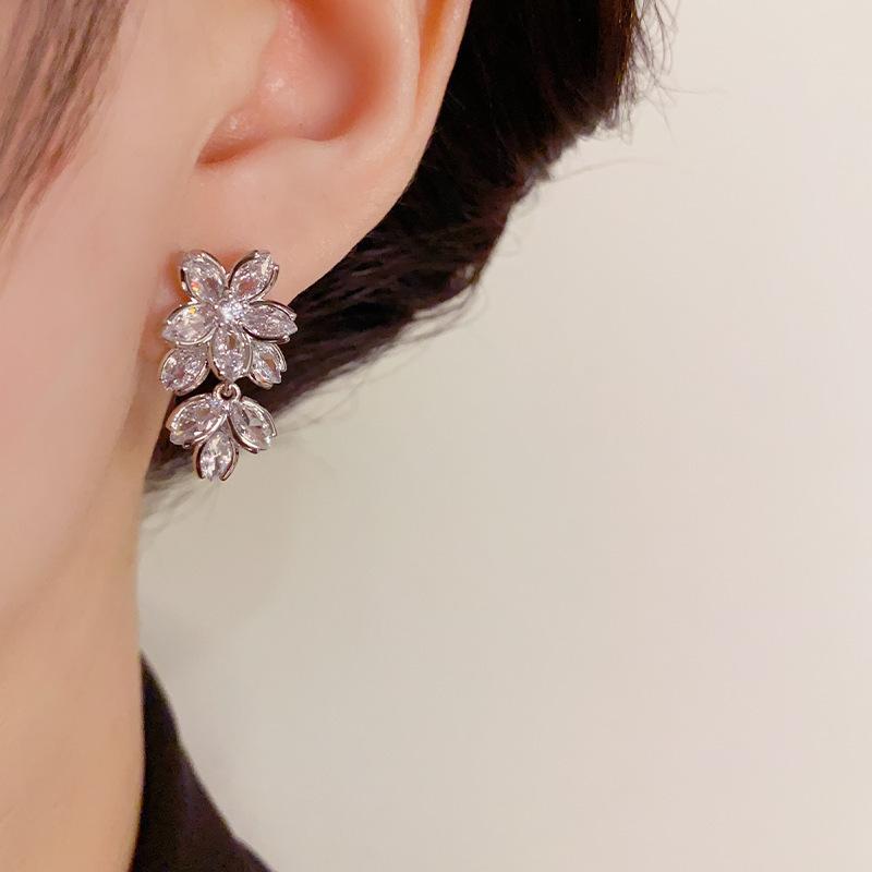 Pendientes con borlas de flores de circonita superbrillantes para mujer, ligeros, de lujo, de alta gama, refinados, frescos, elegantes, con personalidad, a la moda, combinables con todo.